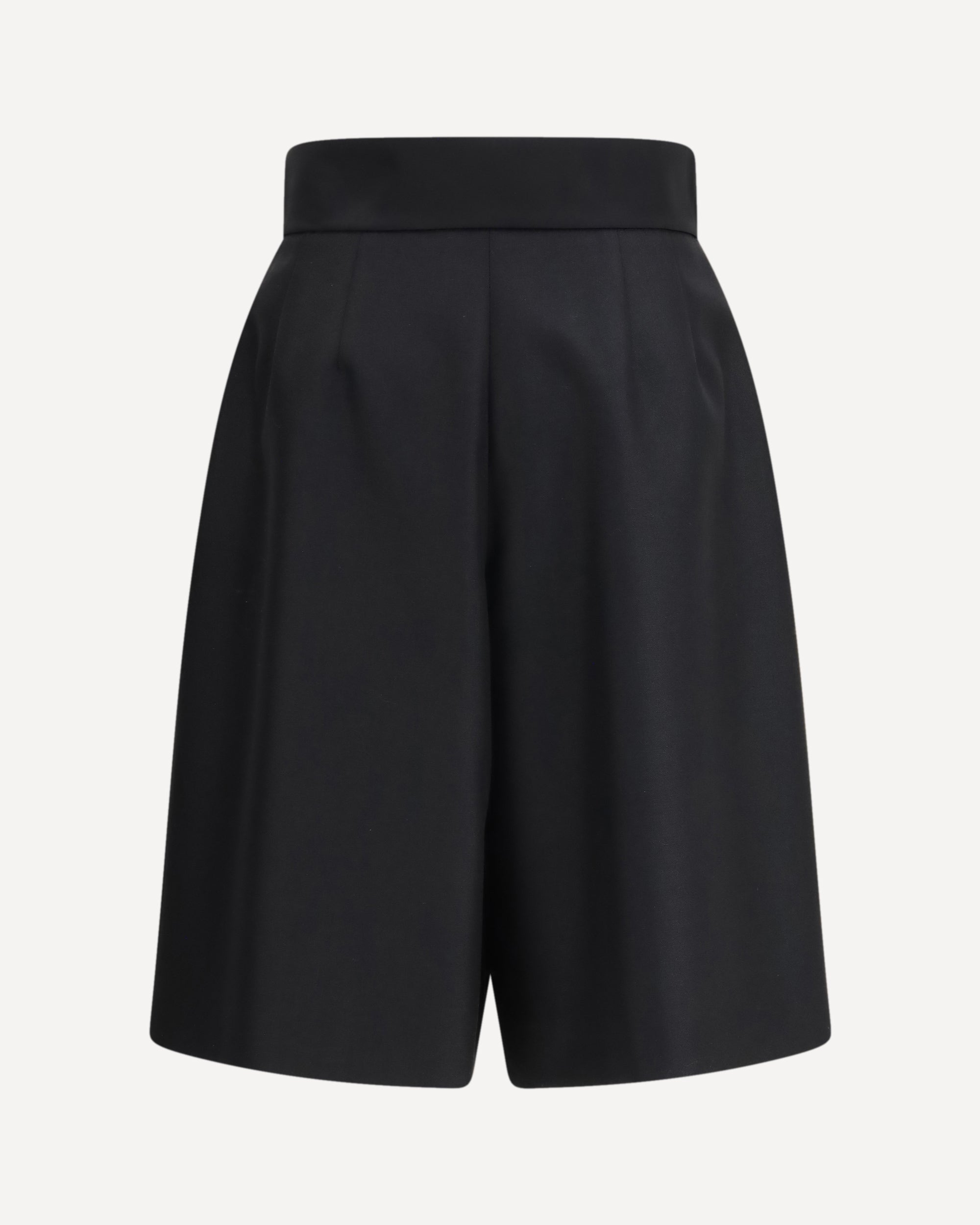 The bow-detail Bermuda Shorts by Valentino Garavani offer a refined take on tailoring with a distinctly feminine twist. Crafted from mohair wool, they feature a wide leg and front pleats that shape a soft yet structured silhouette. The oversized silk bow at the waistband stands out as the signature accent, while the side zip-and-hook closure and side pockets complete this modern, elevated design.