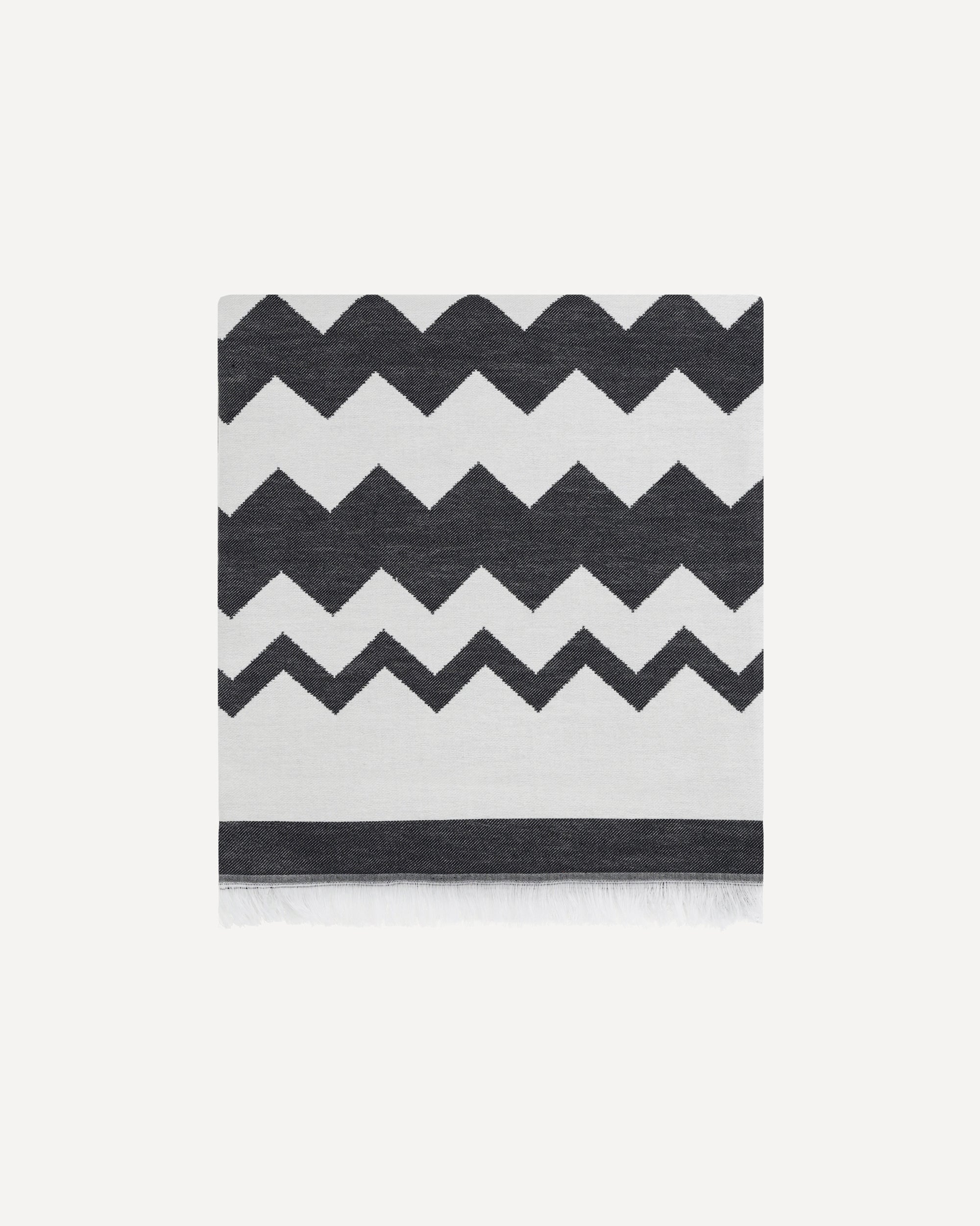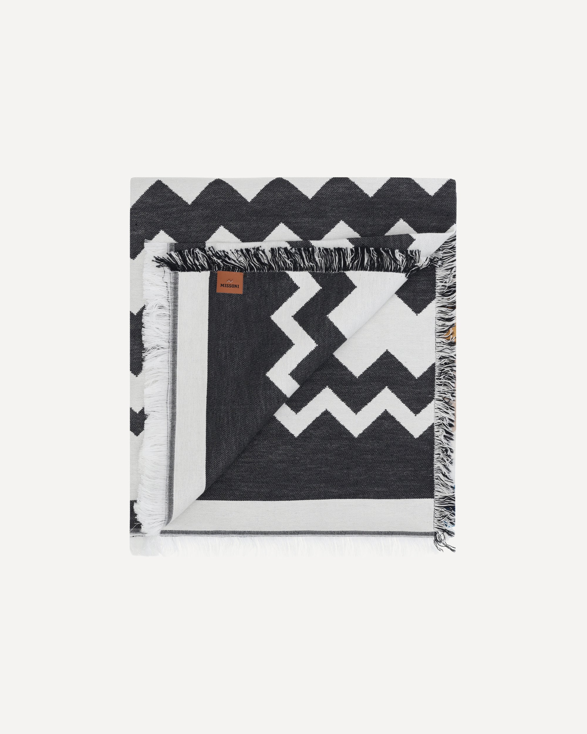 Missoni's Best Fouta Beach Towel is made of high-quality cotton and features a geometric terry-effect design with the iconic multicolored zig-zag pattern repeated across the surface, creating a vibrant and distinctive look. Measuring 140x180 cm, it is perfect for covering and comfortably lying on the sand, offering both style and comfort.