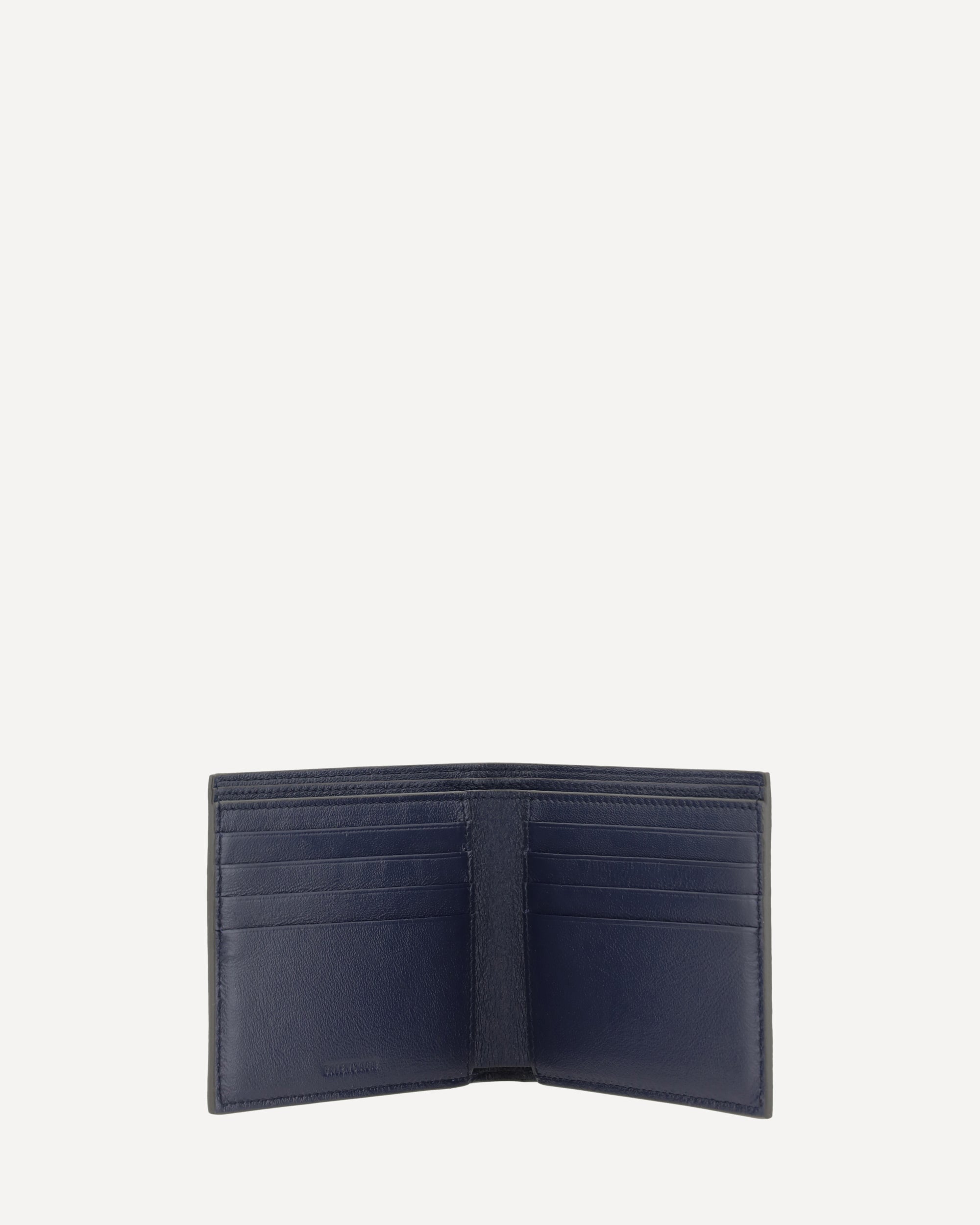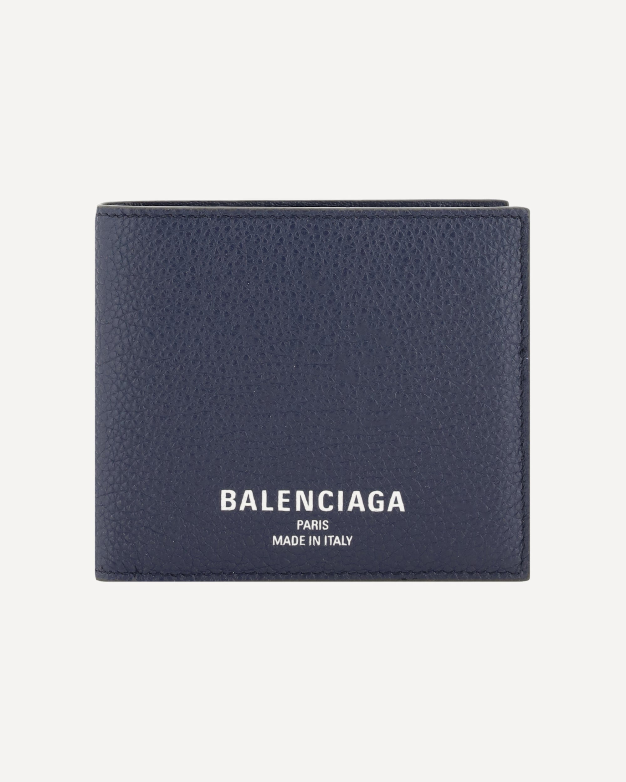 Balenciaga's leather bifold Wallet features interior card slots and a bill compartment. On the front, the brand's iconic monogram is embossed in contrast, adding a distinctive and modern touch to the sleek design.