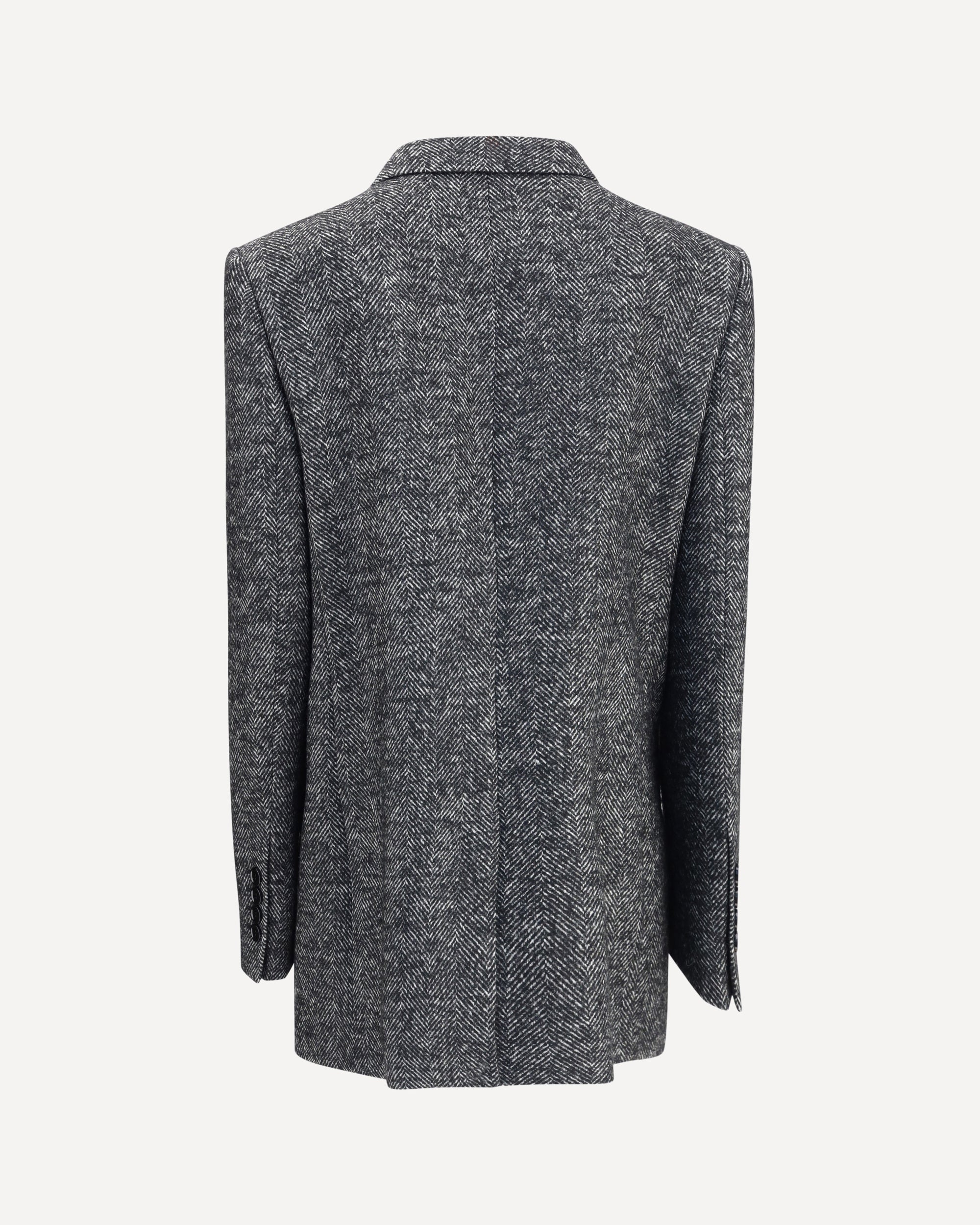 The Double-breasted Chevron Blazer by Dolce&Gabbana is a tailored garment with a classic and sophisticated style. Featuring peaked lapels and a double-breasted button closure, it has long sleeves with slits that enhance its elegant silhouette. Semi-fitted and lined, it combines structure and comfort, making it ideal for completing formal looks with a distinctive touch.