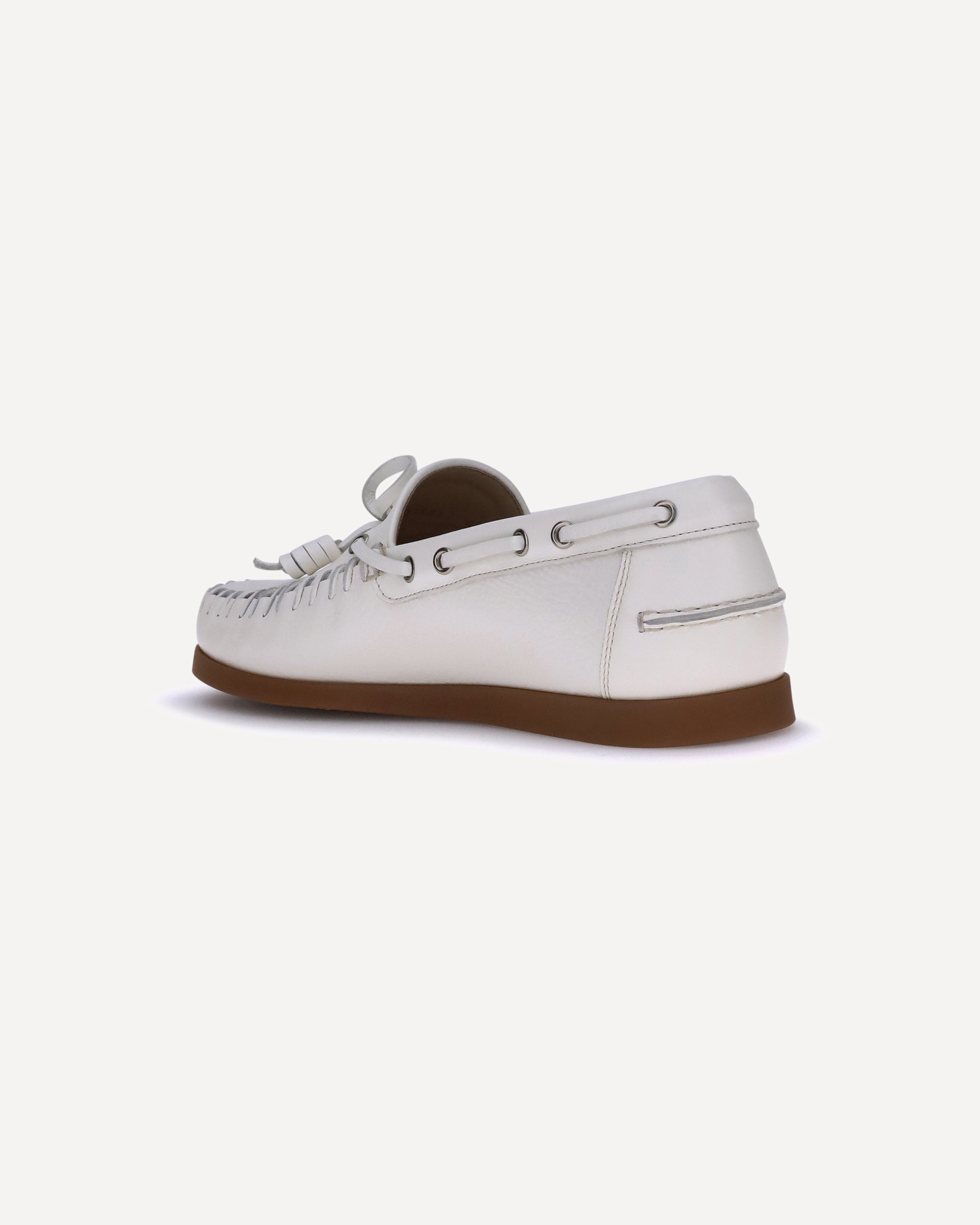 Valentino Garavani's Palm Avenue Boat Loafers, crafted from fine buffalo leather, feature leather tassels and an antiqued-finish brass Signature VLogo patch. A model that combines craftsmanship and iconic style with casual elegance.
