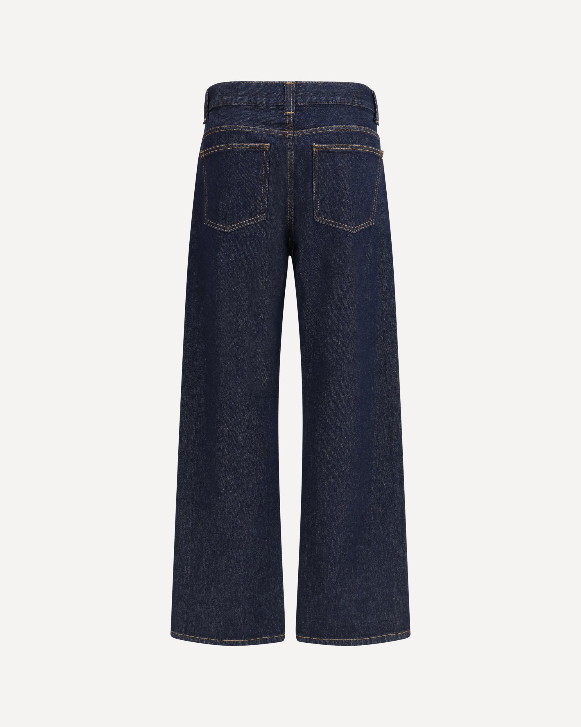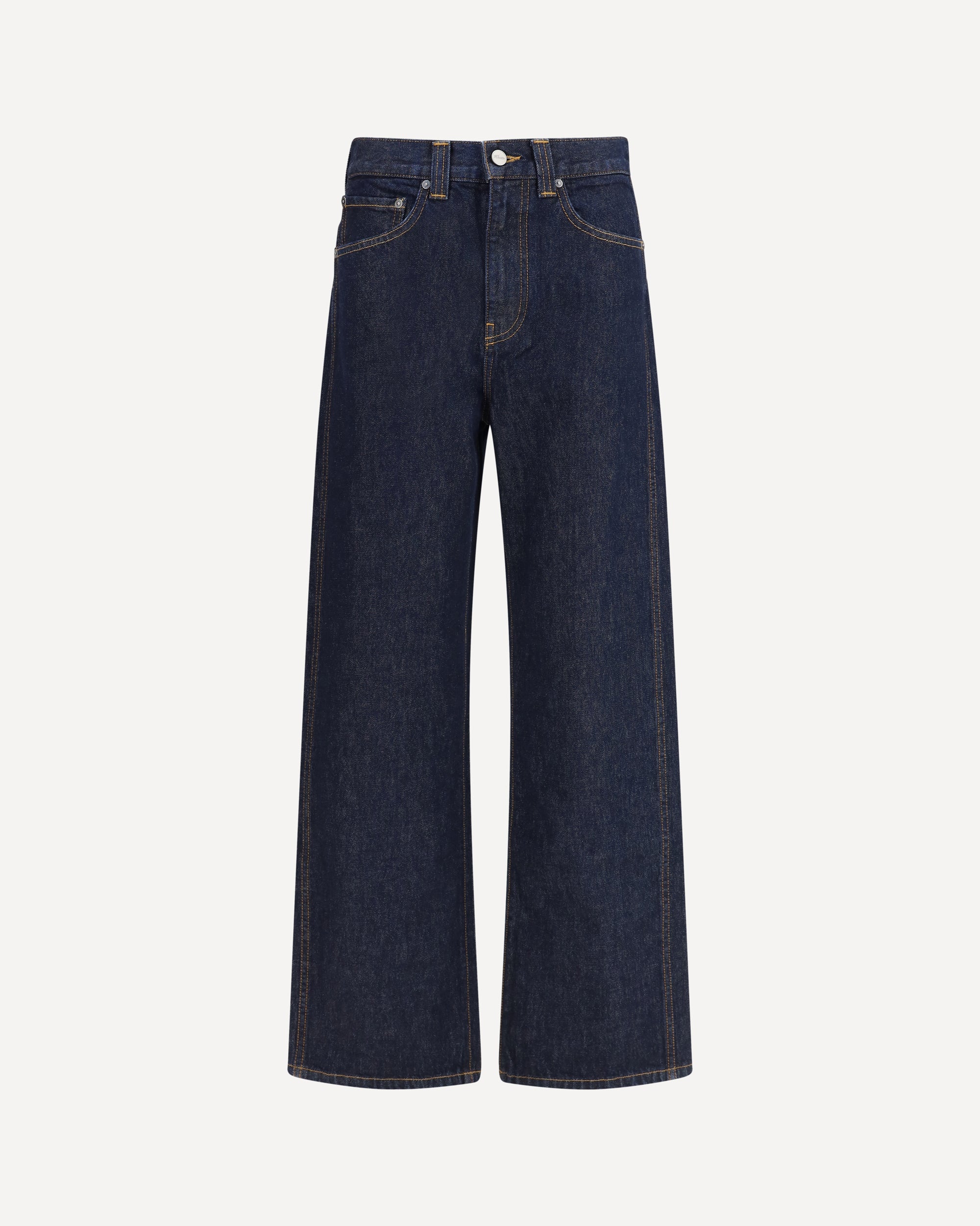 The Bonnie high-waisted wide-leg jeans by Khaite are an iconic piece that combines comfort with contemporary style. Crafted in denim, they feature the classic five-pocket design, zip and button closure, belt loops, and a wide-leg fit for a relaxed yet versatile elegance.