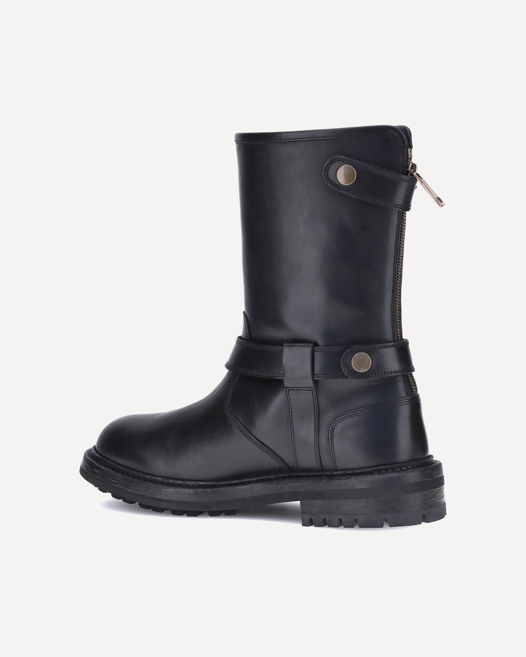 Dolce&Gabbana's signature leather Ankle Boots, perfect for adding a sharp and refined touch to any look. The essential design is enhanced by the round toe and practical zipper closure on the back, which ensures a comfortable and fast fit. The rubber lug sole offers stability and character, making them ideal for facing every day with style and confidence.