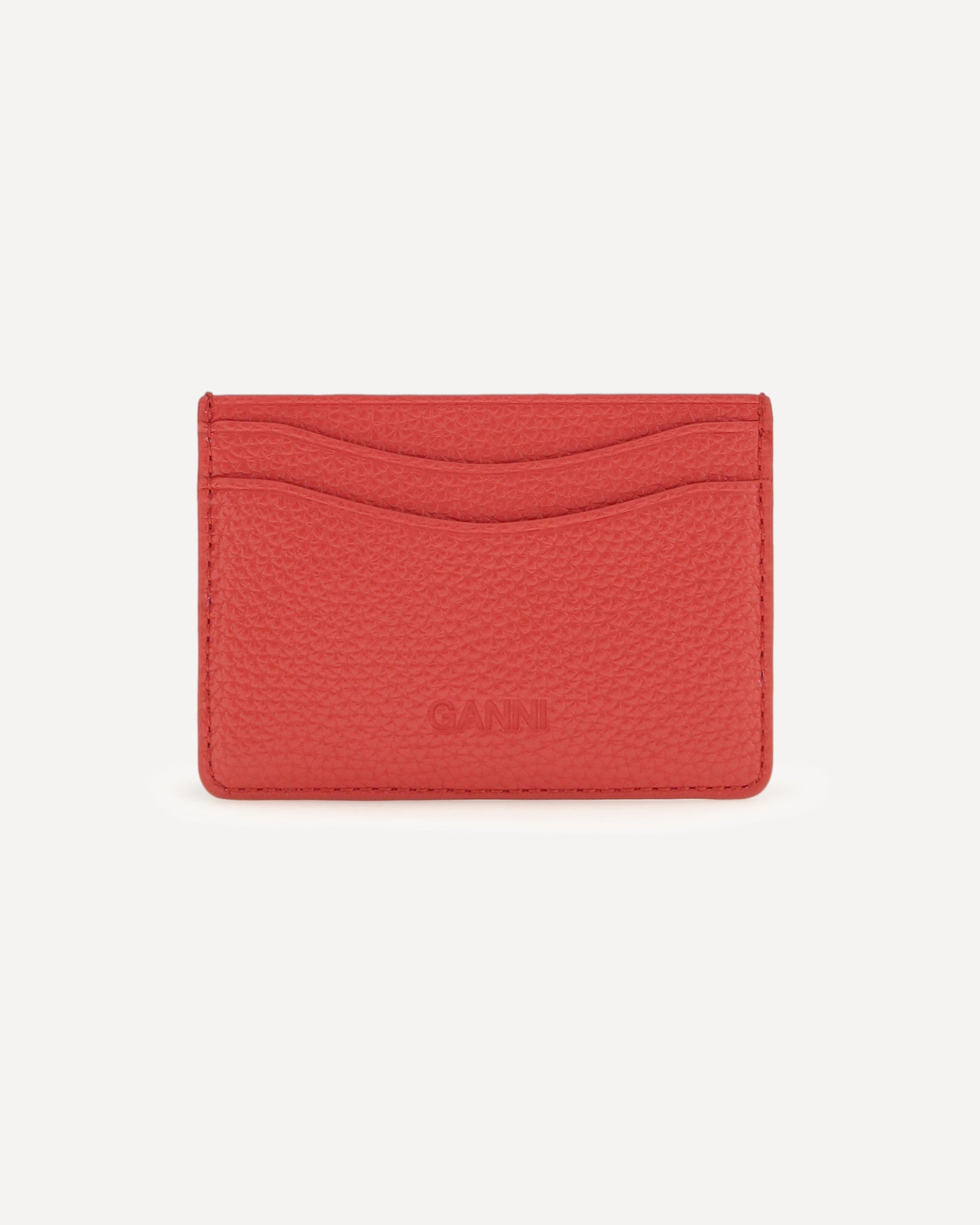 The Bou Cardholder by Ganni, with its grainy texture, combines elegance and functionality. Featuring multiple card slots, it is embellished with the Ganni logo and hardware with the Ganni Butterfly logo, making it a refined and practical accessory for organizing your essentials.