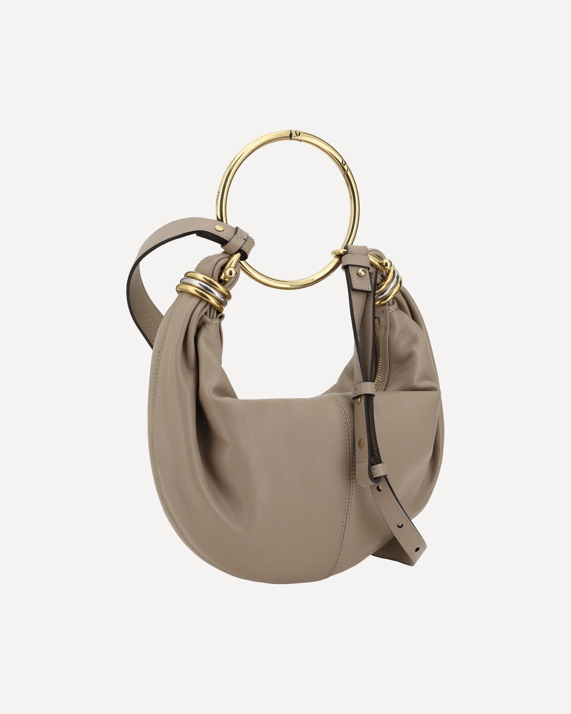 Leather Bracelet Handbag by Chloé, a round brass handle, an adjustable flat shoulder strap and removable top zipper closure, single interior compartment.