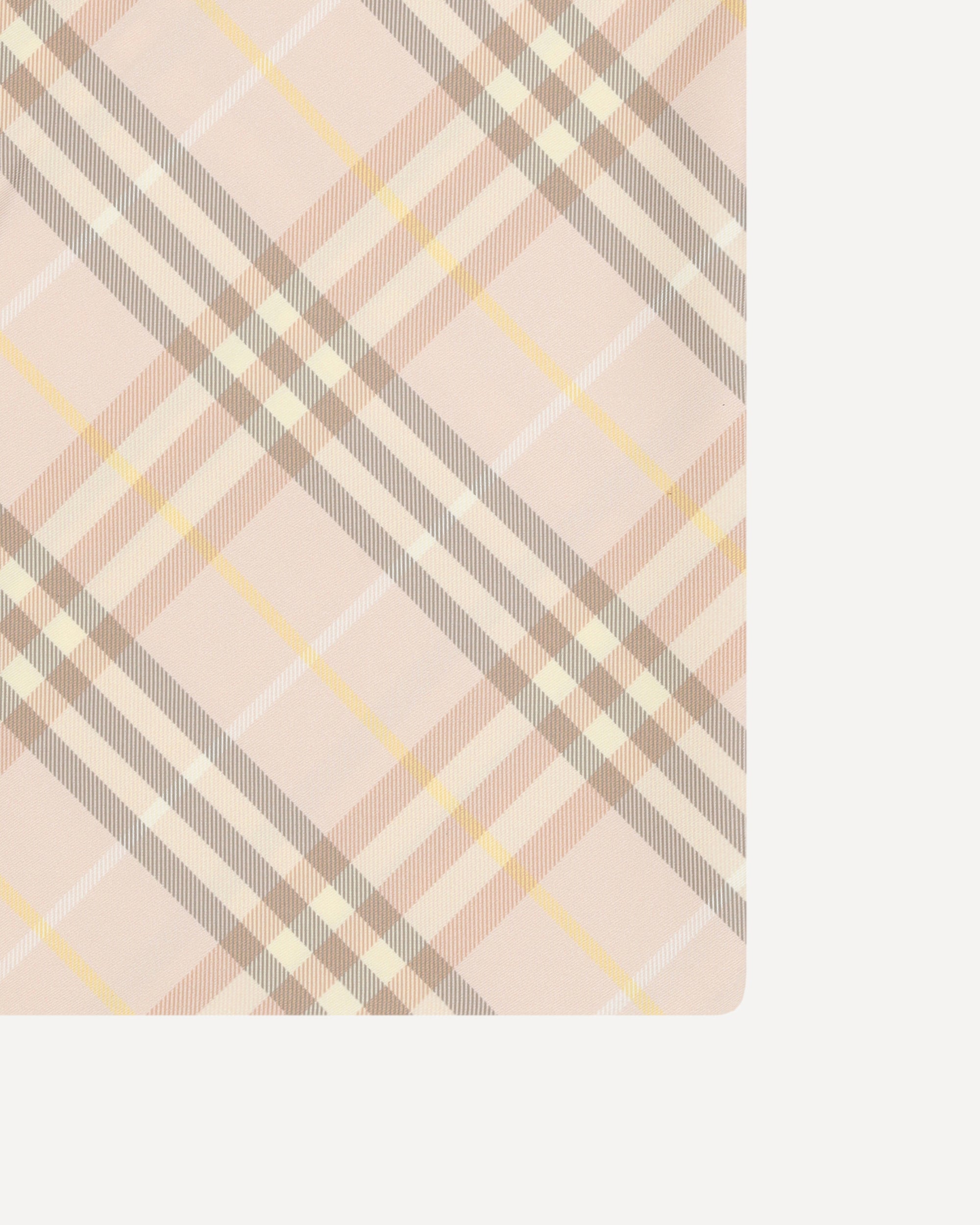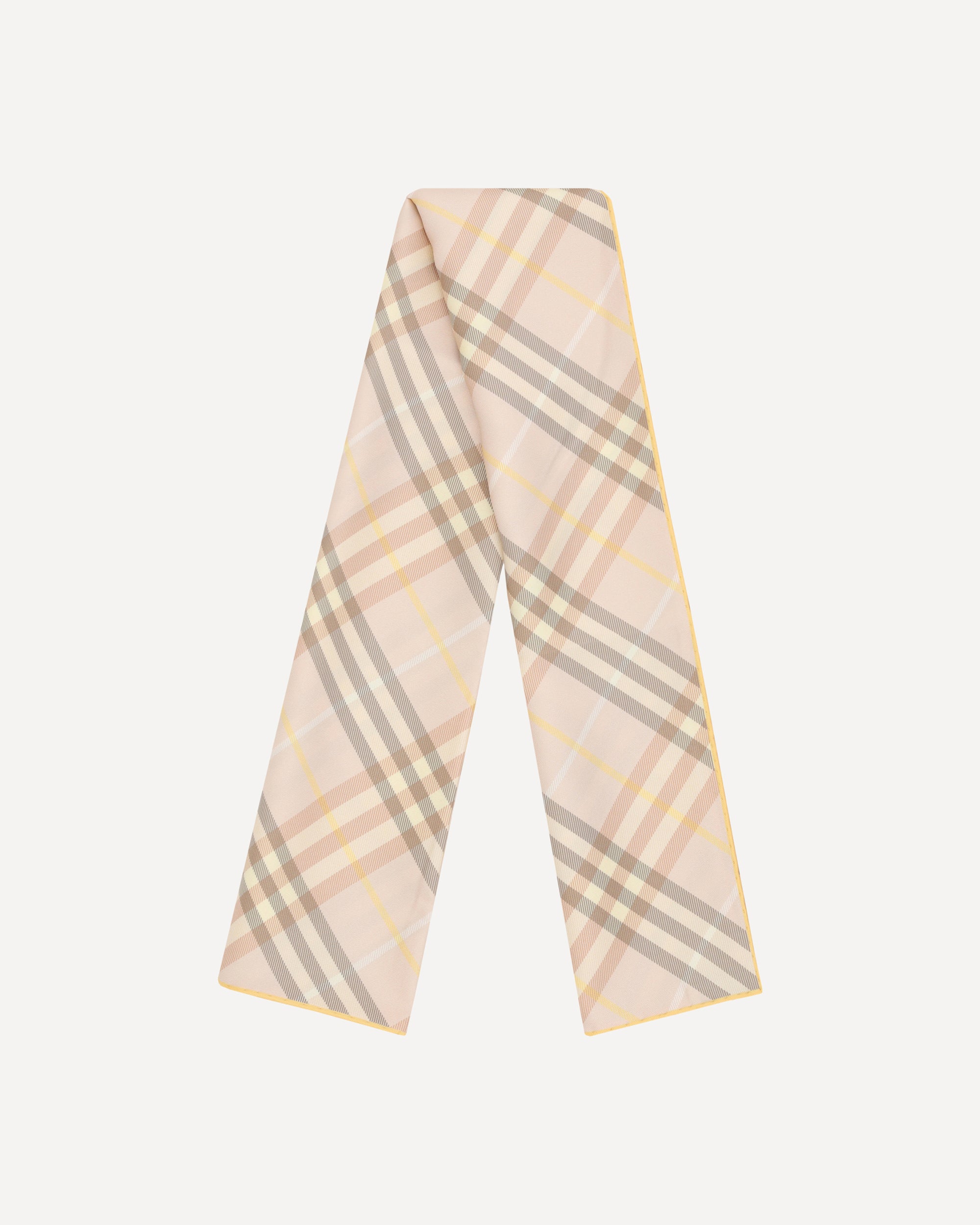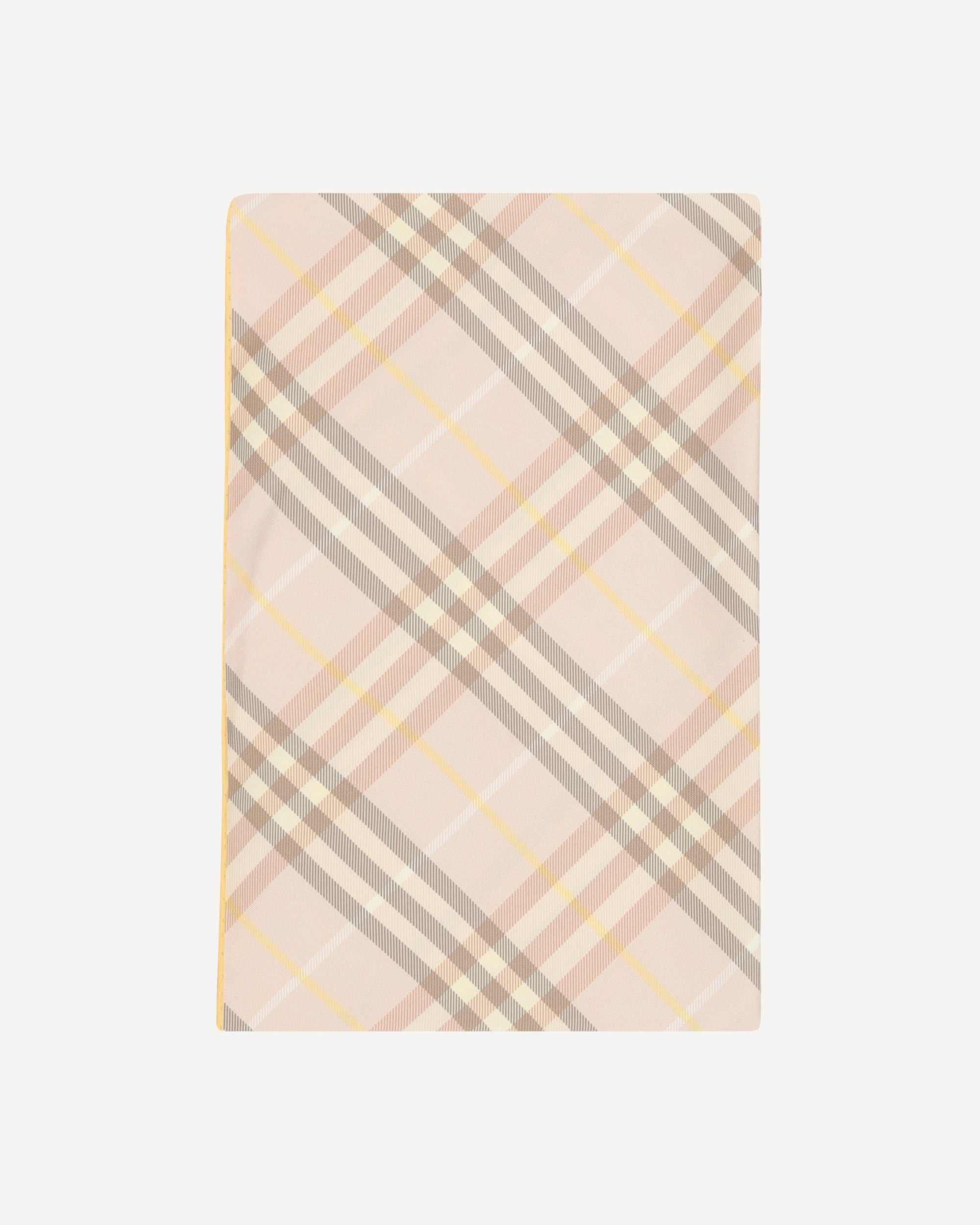 Burberry's silk scarf with the iconic Archivio Check pattern features a square print repeated across the surface, with frayed hems. An elegant and versatile design perfect for adding a touch of luxury to any outfit.