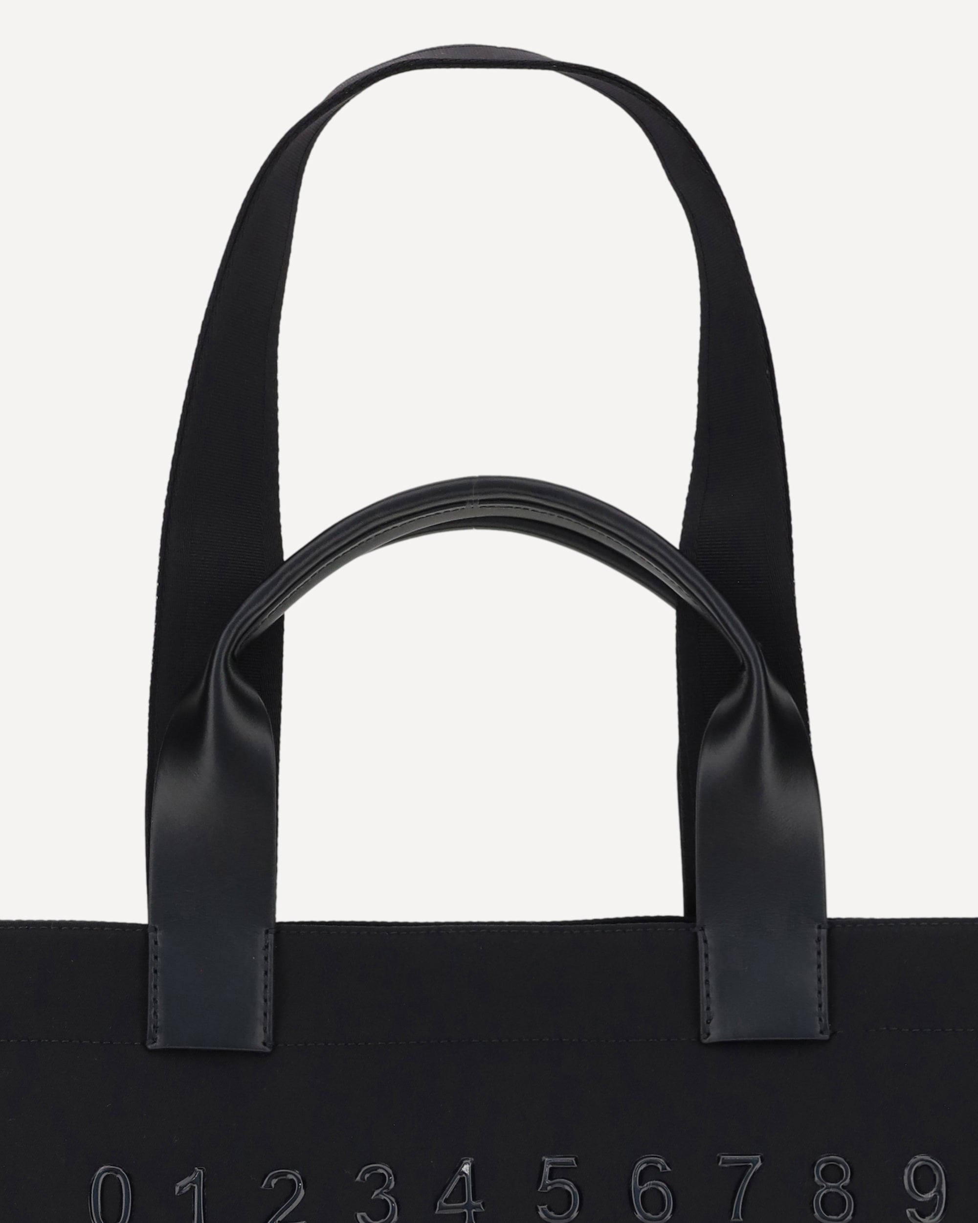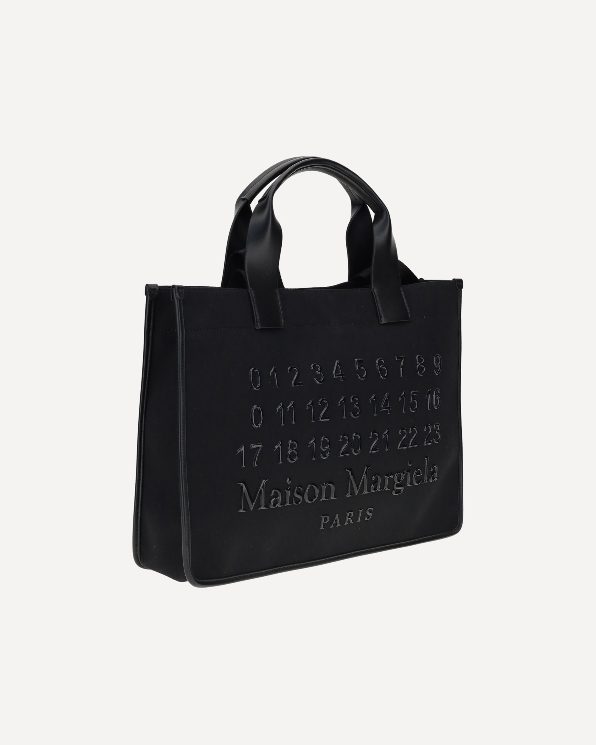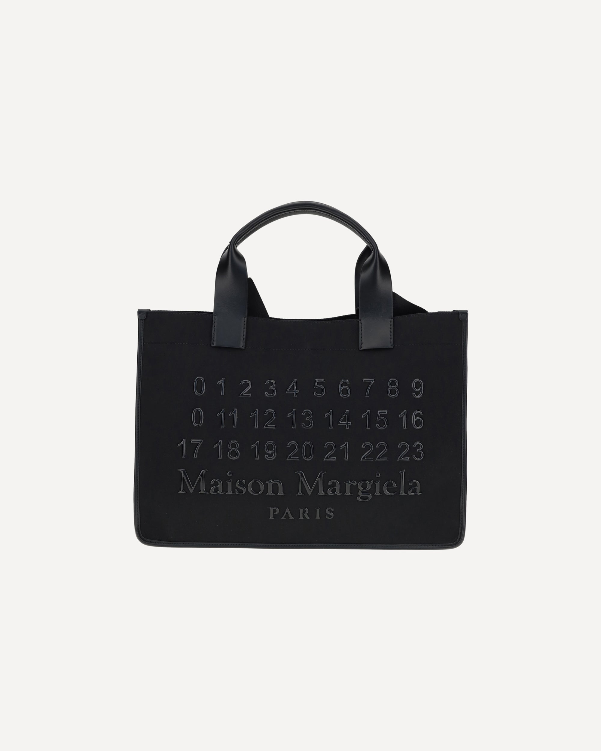 Margiela's fabric Tote Bag is the ideal accessory for a casual, refined look. Equipped with two leather top handles for optimal comfort, it features the iconic logo on the front to emphasize its authenticity. With a single internal compartment, this bag combines functionality and minimalist design, perfect for everyday use.