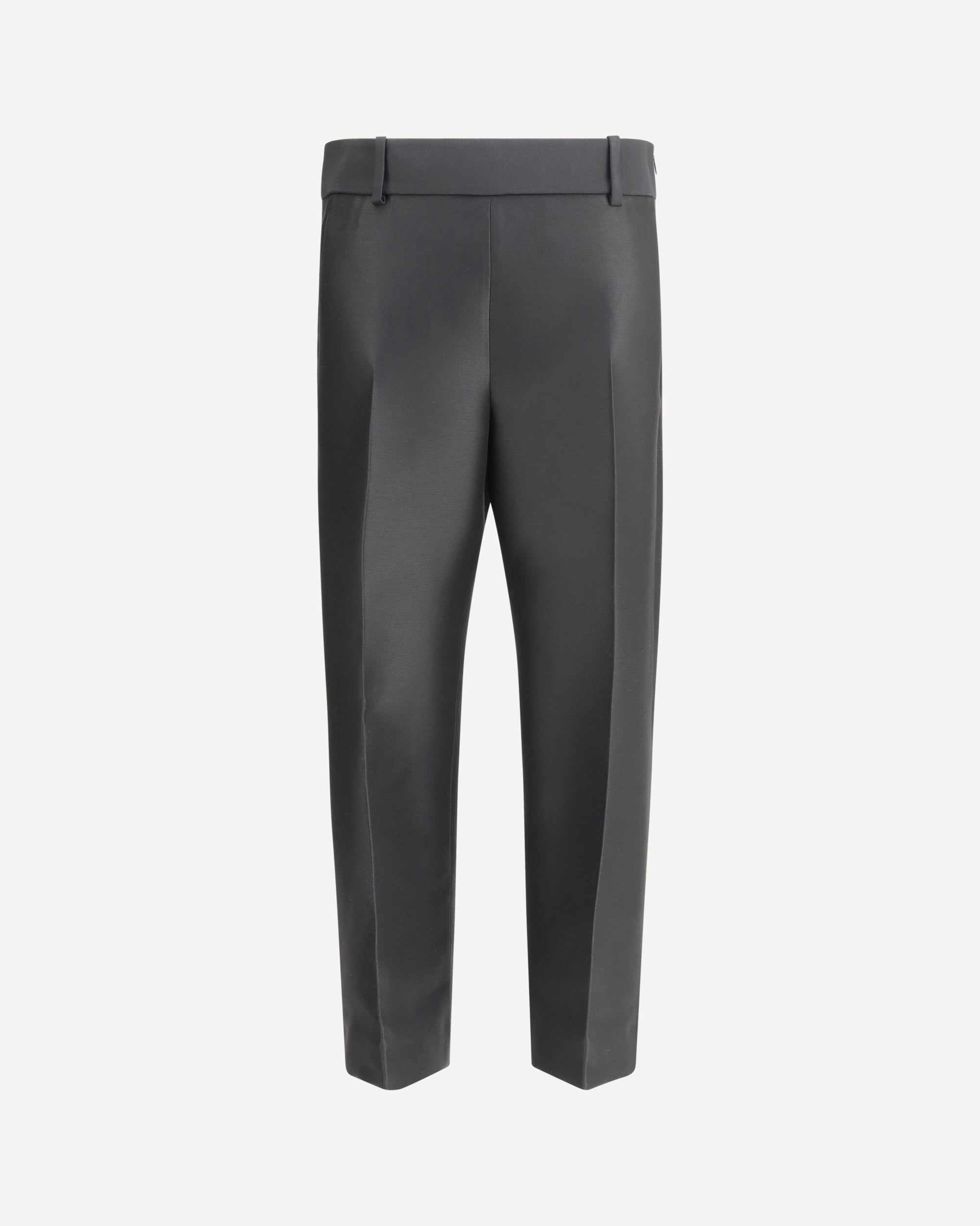Khaite's Cam Pants are a sophisticated, modern garment made of tightly woven faille that gives them an elegant texture and understated sheen. The sharp design, with well-defined pleats, slims the figure, while the low hip fit adds a contemporary touch. The side zipper completes the design with a functional and elegant detail. Perfect for those seeking a sophisticated and versatile look, these pants are ideal for formal occasions or a chic daytime outfit.