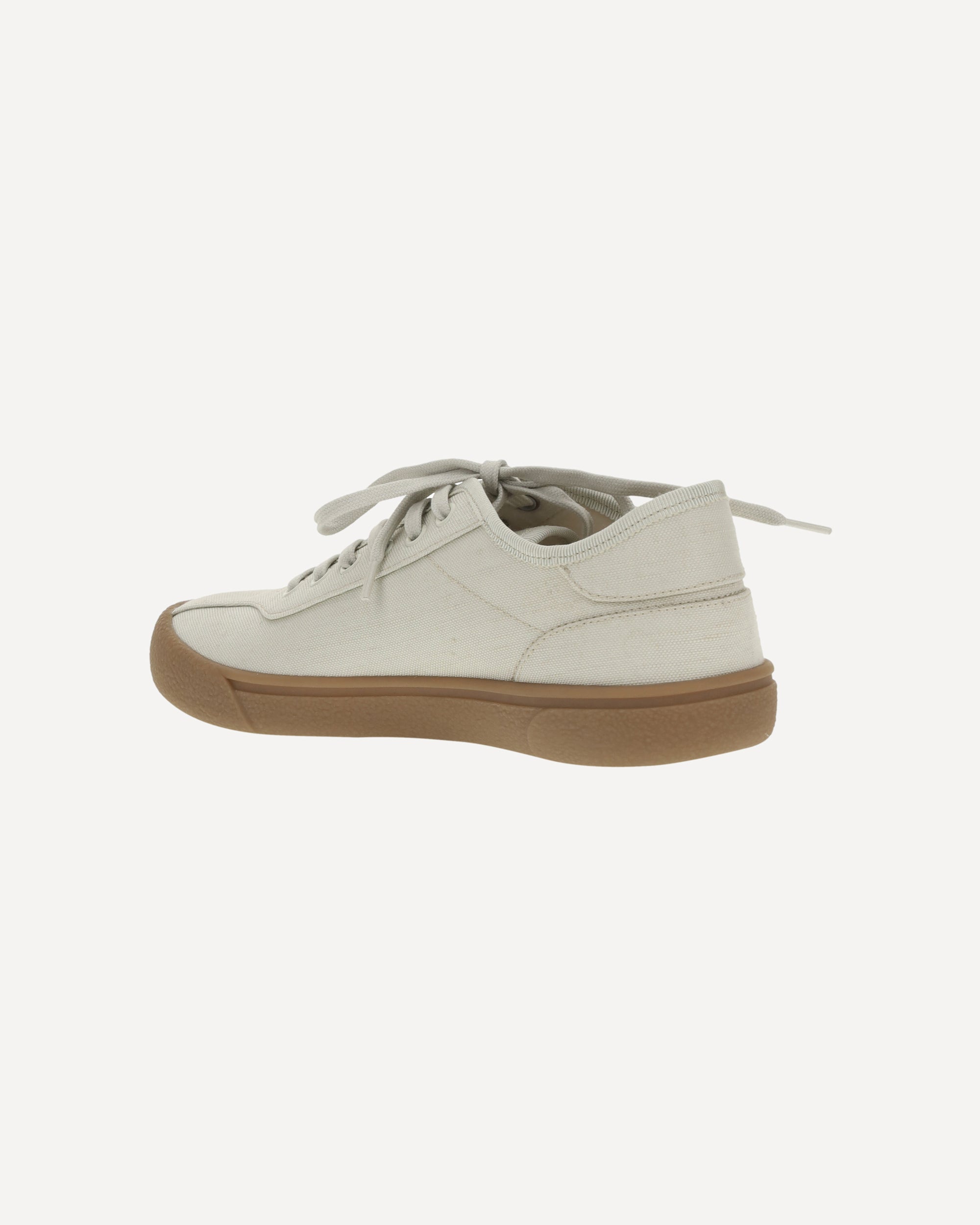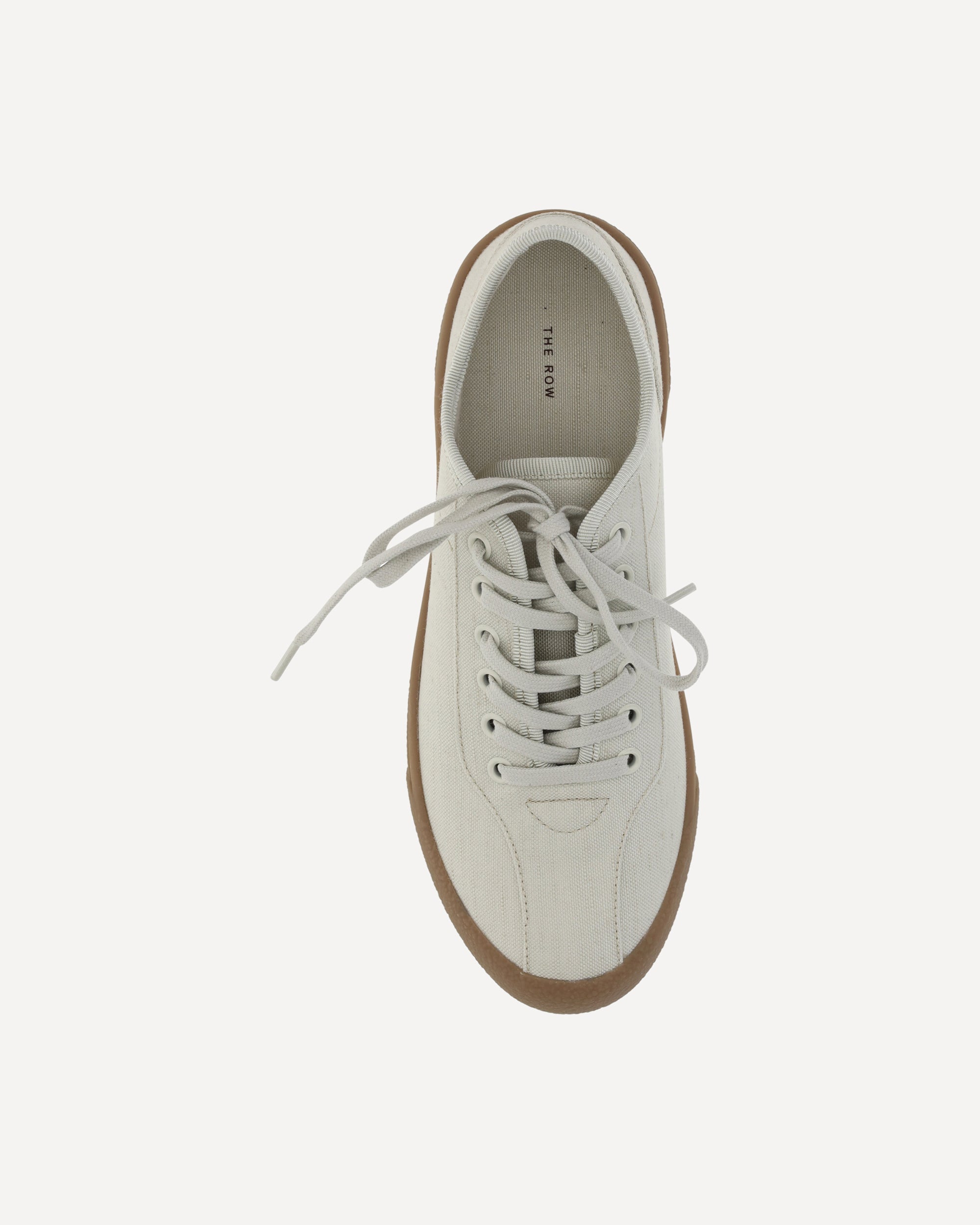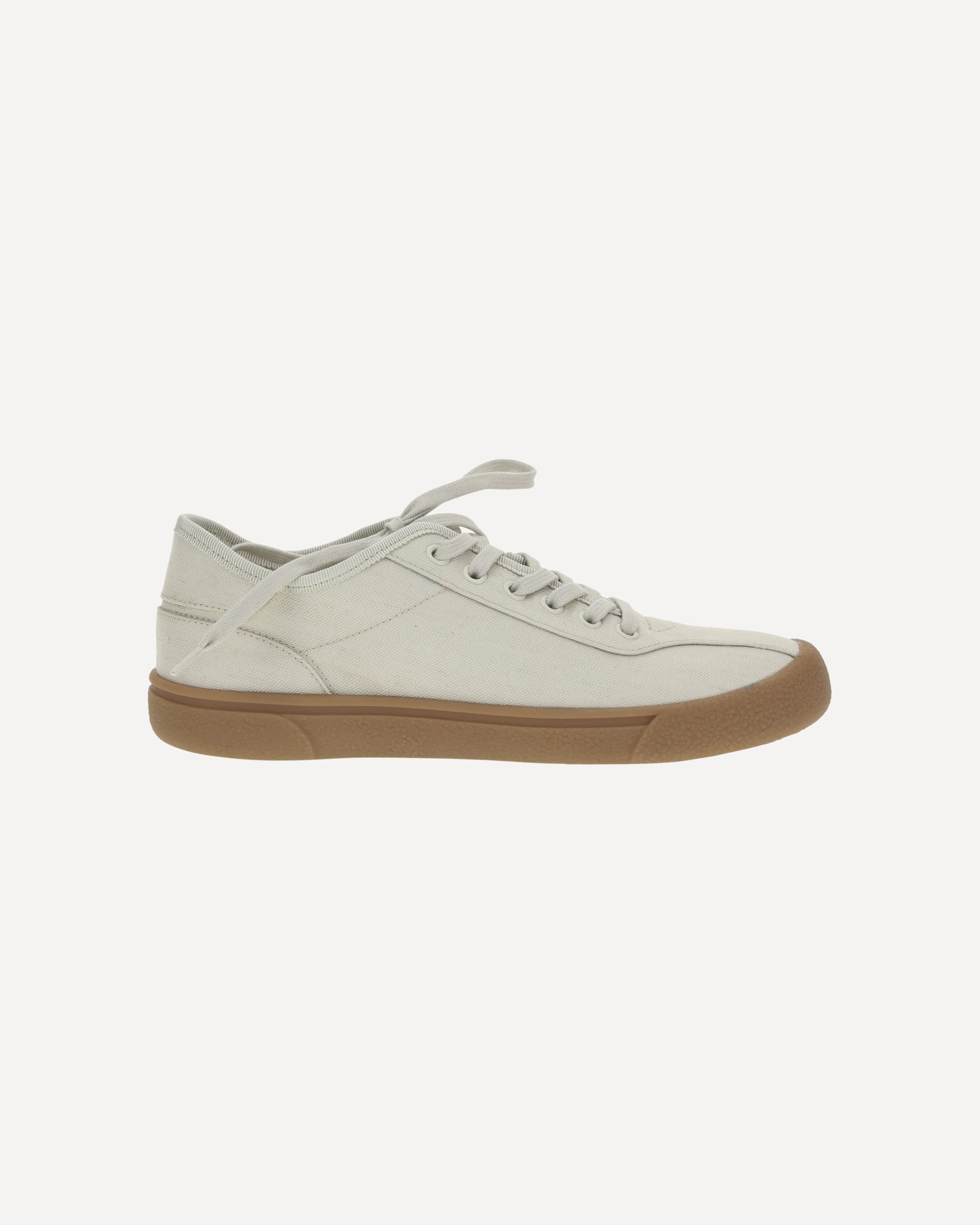 The Row's Canvas Sneakers combine a minimalist and refined design. The lace-up closure ensures a secure fit, while the printed logo on the inside adds an understated yet distinctive detail. The flat rubber sole offers comfort and stability, while the rounded toe completes the look with a touch of elegant simplicity. Perfect for a casual and sophisticated look, these sneakers are a versatile addition to any wardrobe.