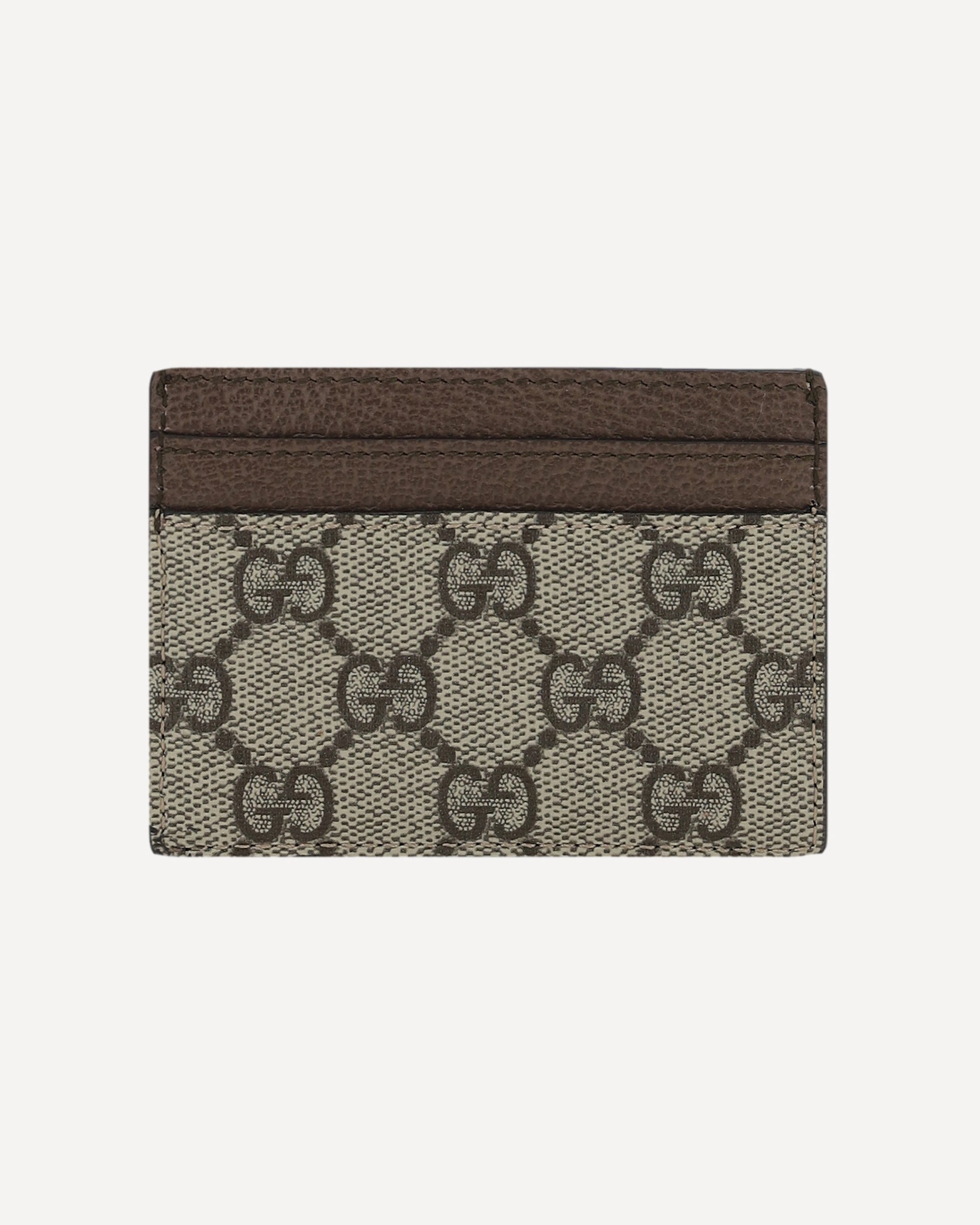 Gucci's Leather Card Holder combines functionality and style in an elegant and practical accessory. Featuring card slots on the front and back, it provides organized space for essential cards. On the front it features the iconic embossed GG plaque, while the jacquard print with GG Supreme motif adds a distinctive and recognizable touch of the famous brand.