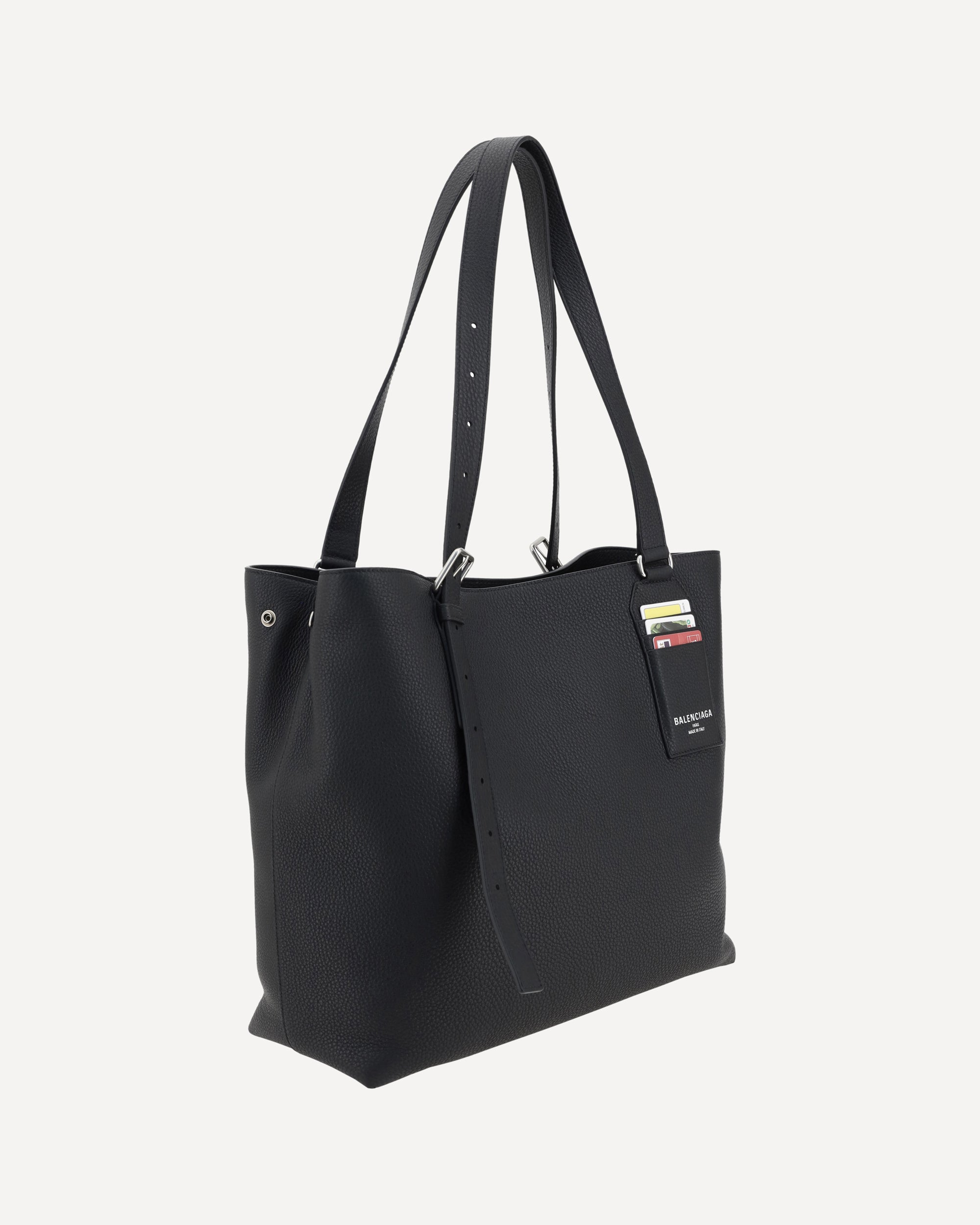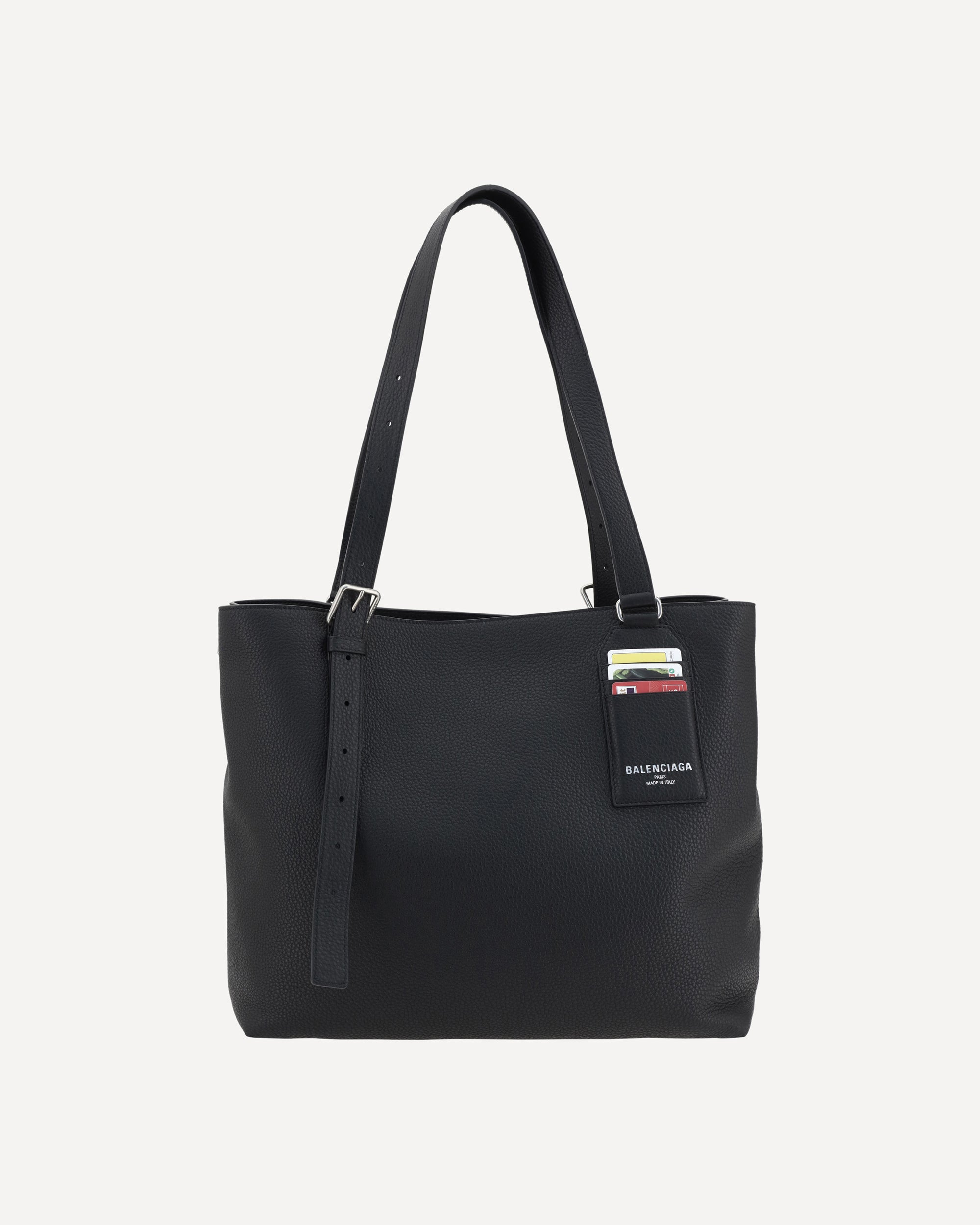 Balenciaga's Shoulder Bag features a sophisticated grained leather design with an open top for quick and easy access. Adjustable shoulder straps offer comfort, while the interior features a zippered pocket to keep your belongings safe. An elegant external, logo-embossed card holder detail completes the accessory with a distinctive brand touch.