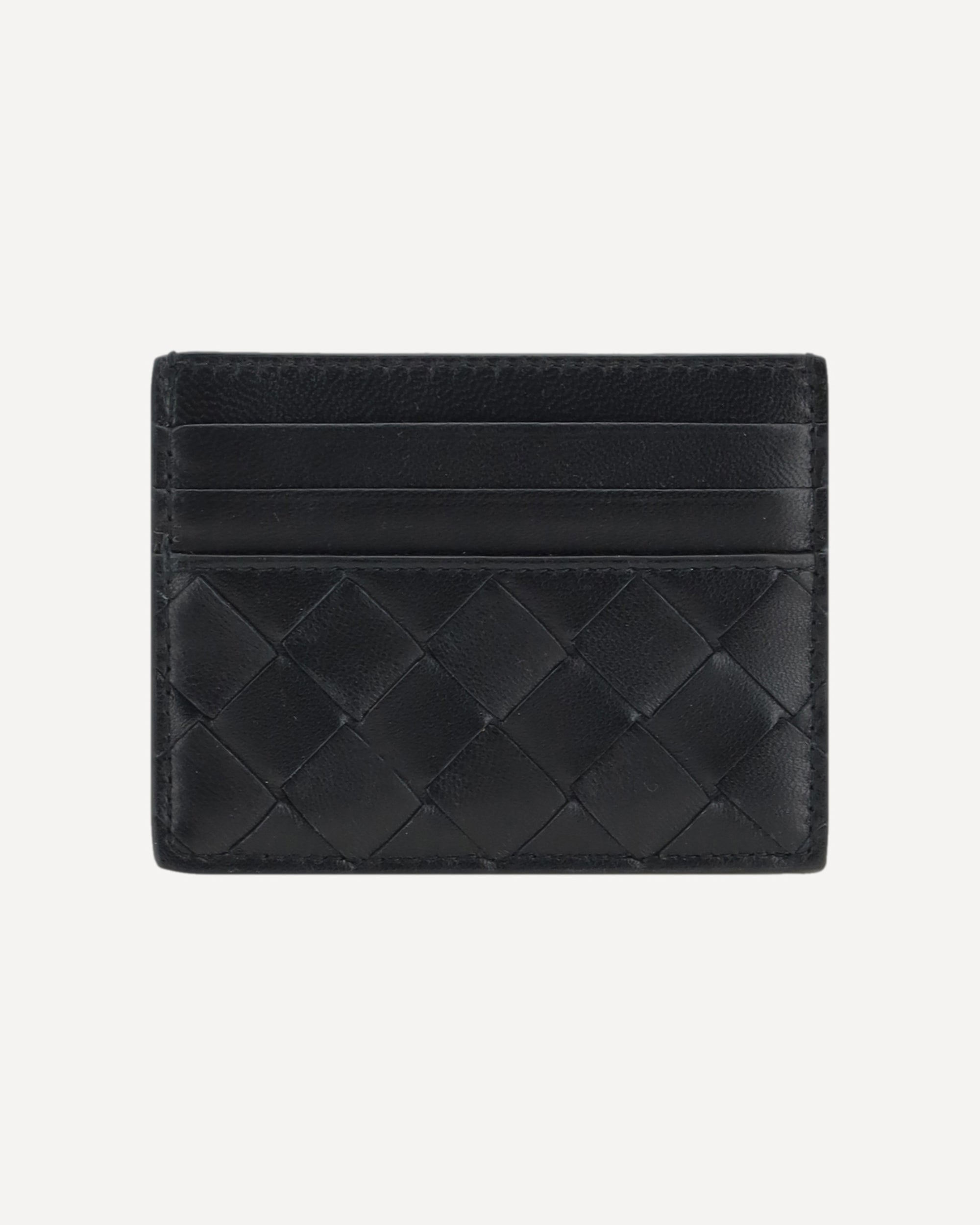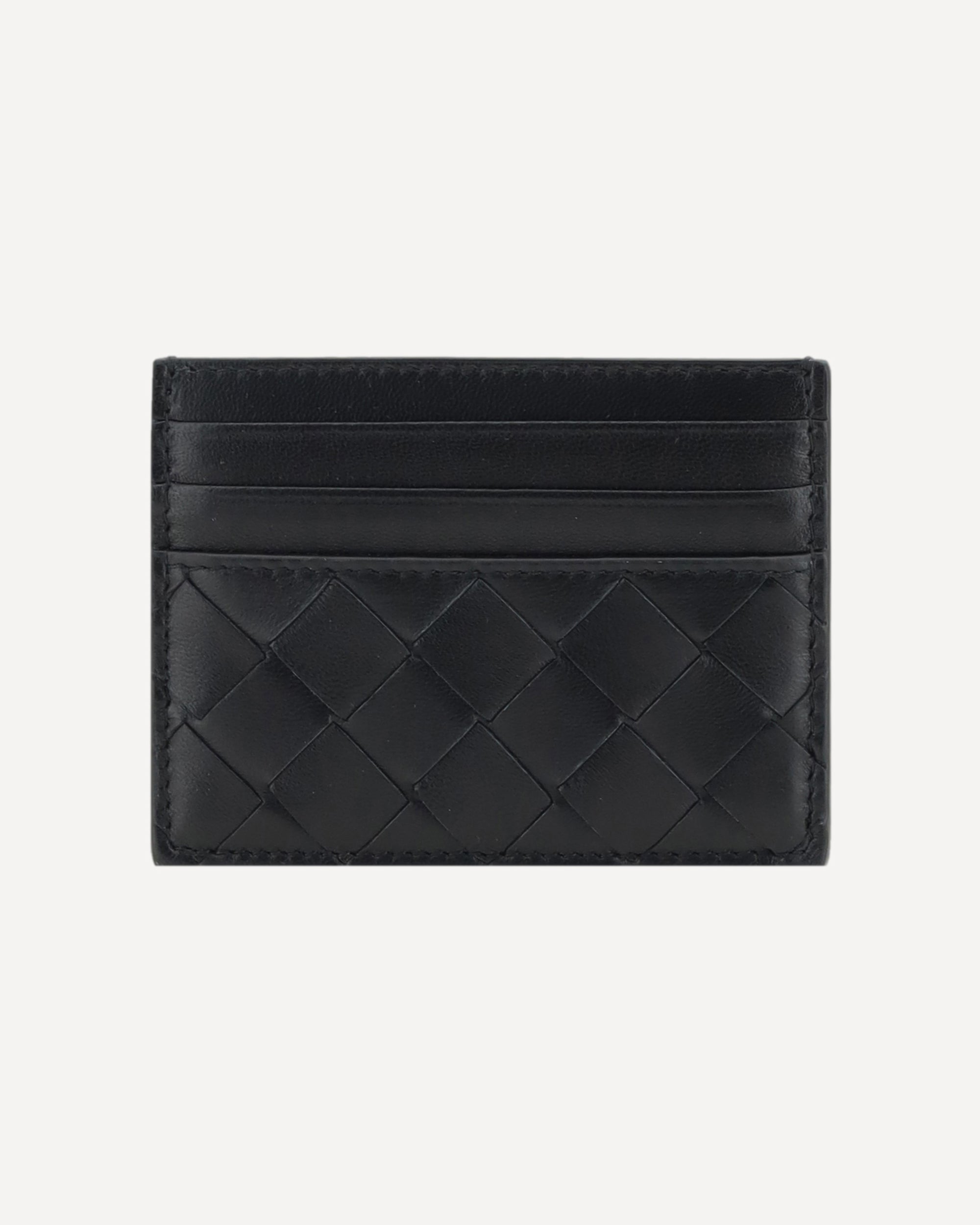 The Bottega Veneta Leather Card Holder is an elegant and functional accessory, designed for those seeking practicality without sacrificing style. Featuring slots on both the front and back, it offers optimal organization for credit cards, business cards or other small documents, making it perfect for everyday use. Its design is embellished with the iconic intrecciato motif, a distinctive symbol of the brand, which expresses impeccable craftsmanship and timeless sophistication. Crafted from high-quality leather, this card holder stands out for its understated elegance and attention to detail, representing a must-have for those who appreciate luxury and functionality.
