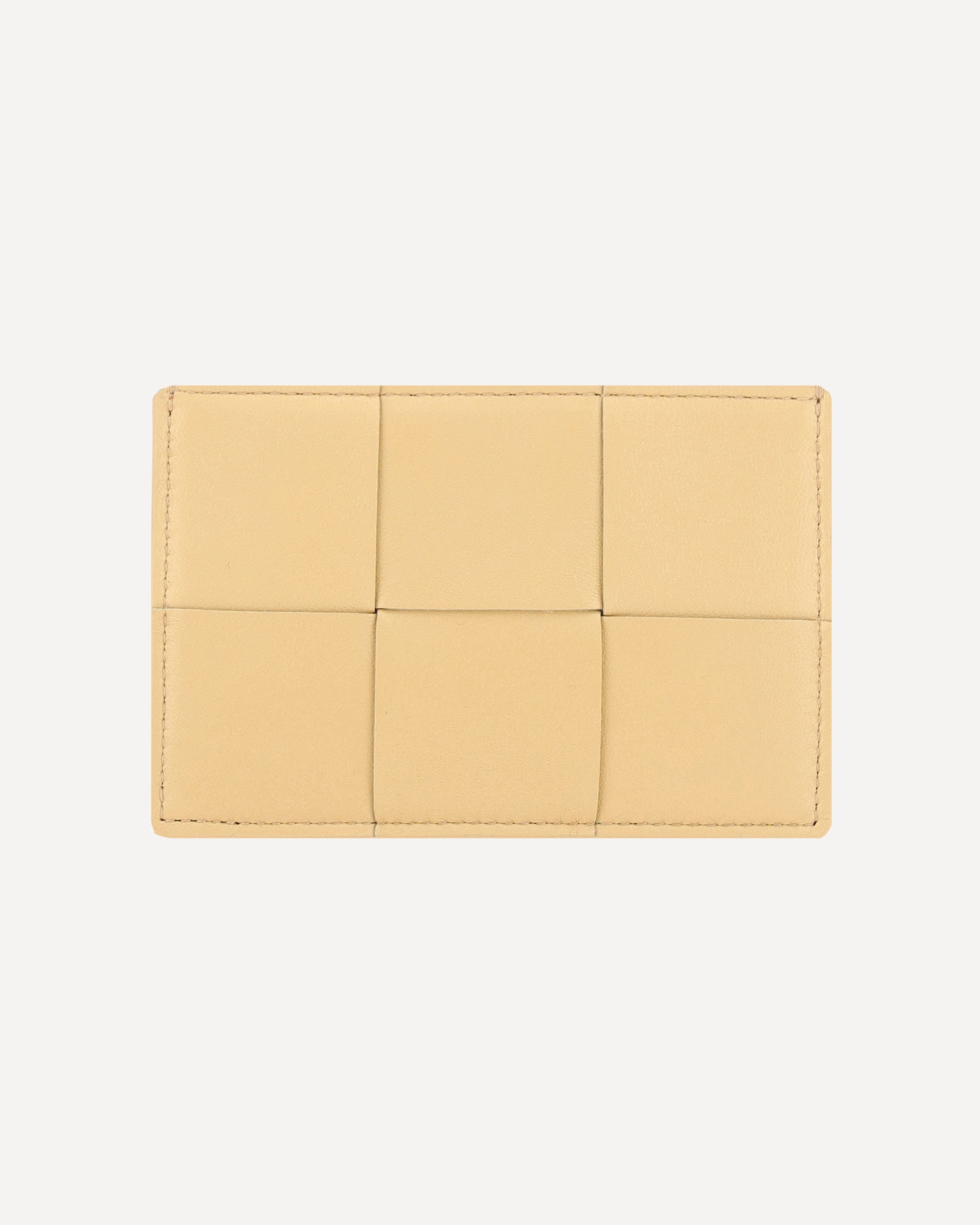 The leather Card Holder by Bottega Veneta is an essential accessory with a refined design, featuring the iconic repeating intrecciato motif on the front. The back features practical card slots, complemented by the brand's signature embossed in relief. A compact and distinctive piece, perfect for everyday elegance.