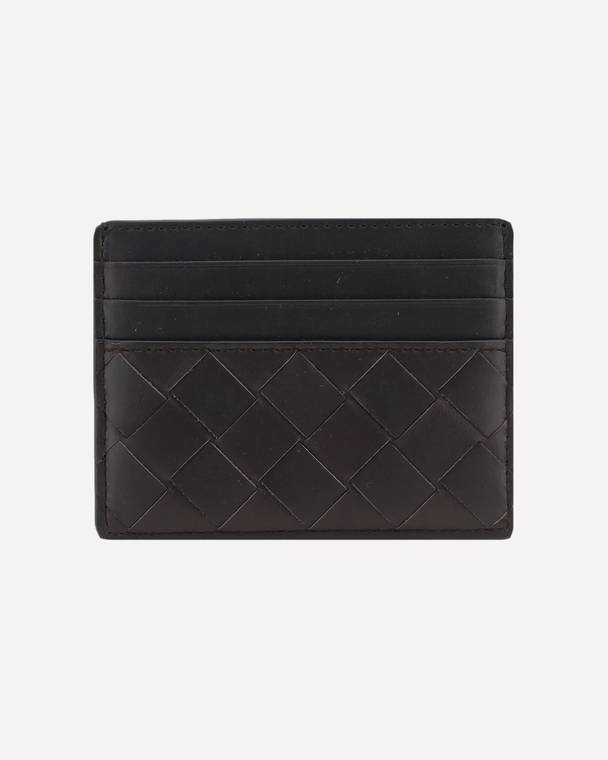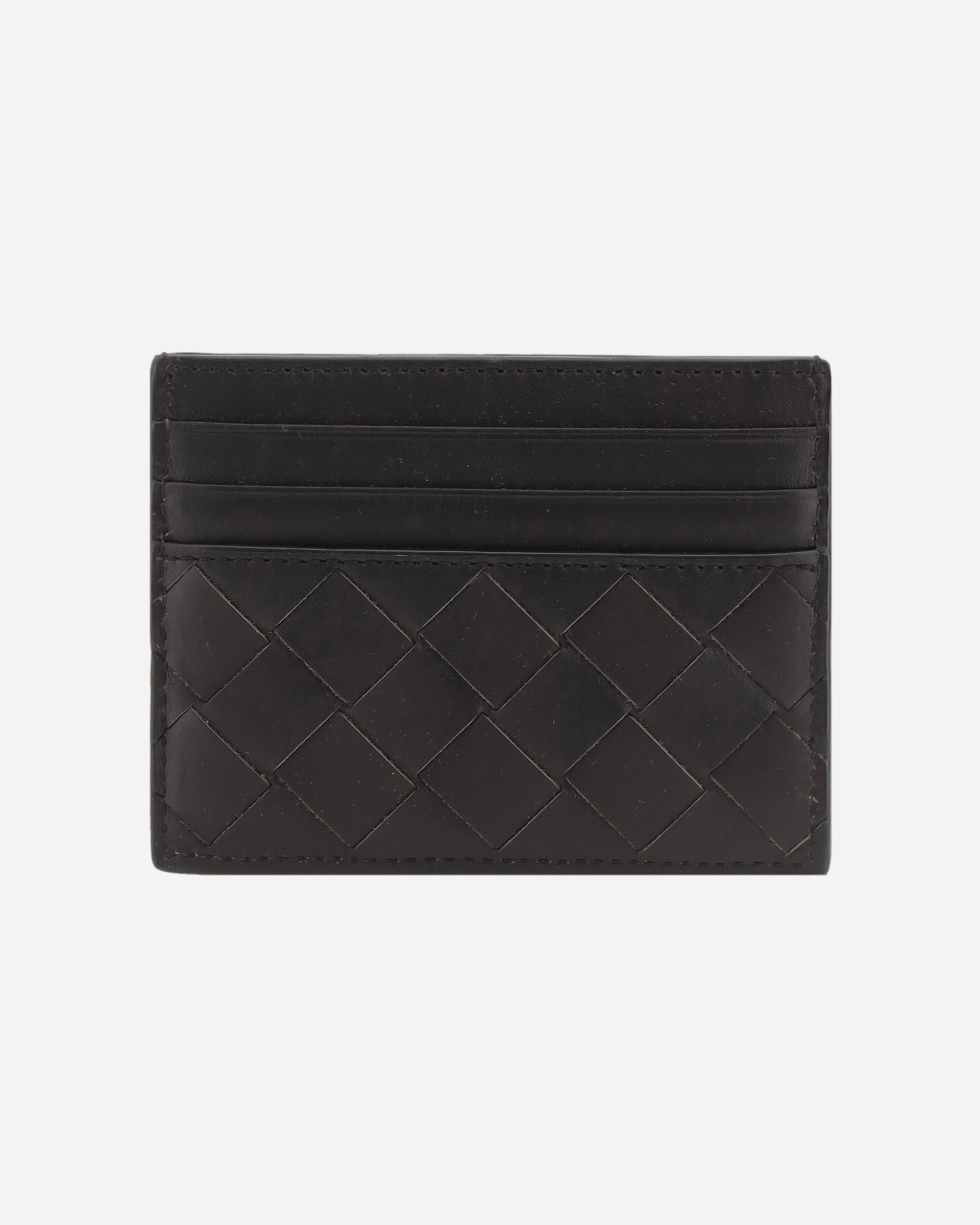Bottega Veneta's leather Card Holder is an elegant and compact accessory featuring the brand's iconic woven pattern, repeated across the surface in a sophisticated monochrome version. It features card slots on the front and back, perfect for organizing cards and bills in a practical and elegant way.