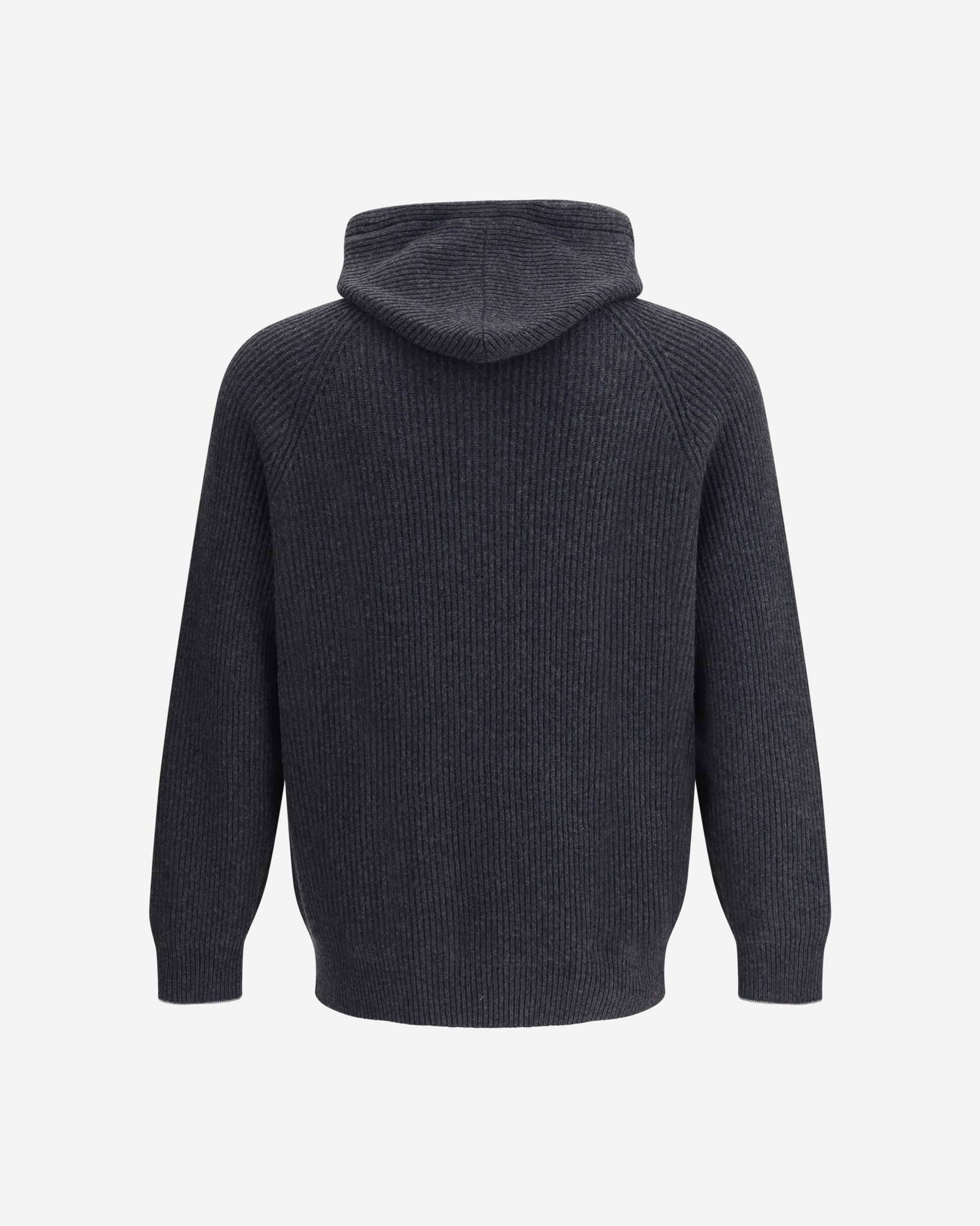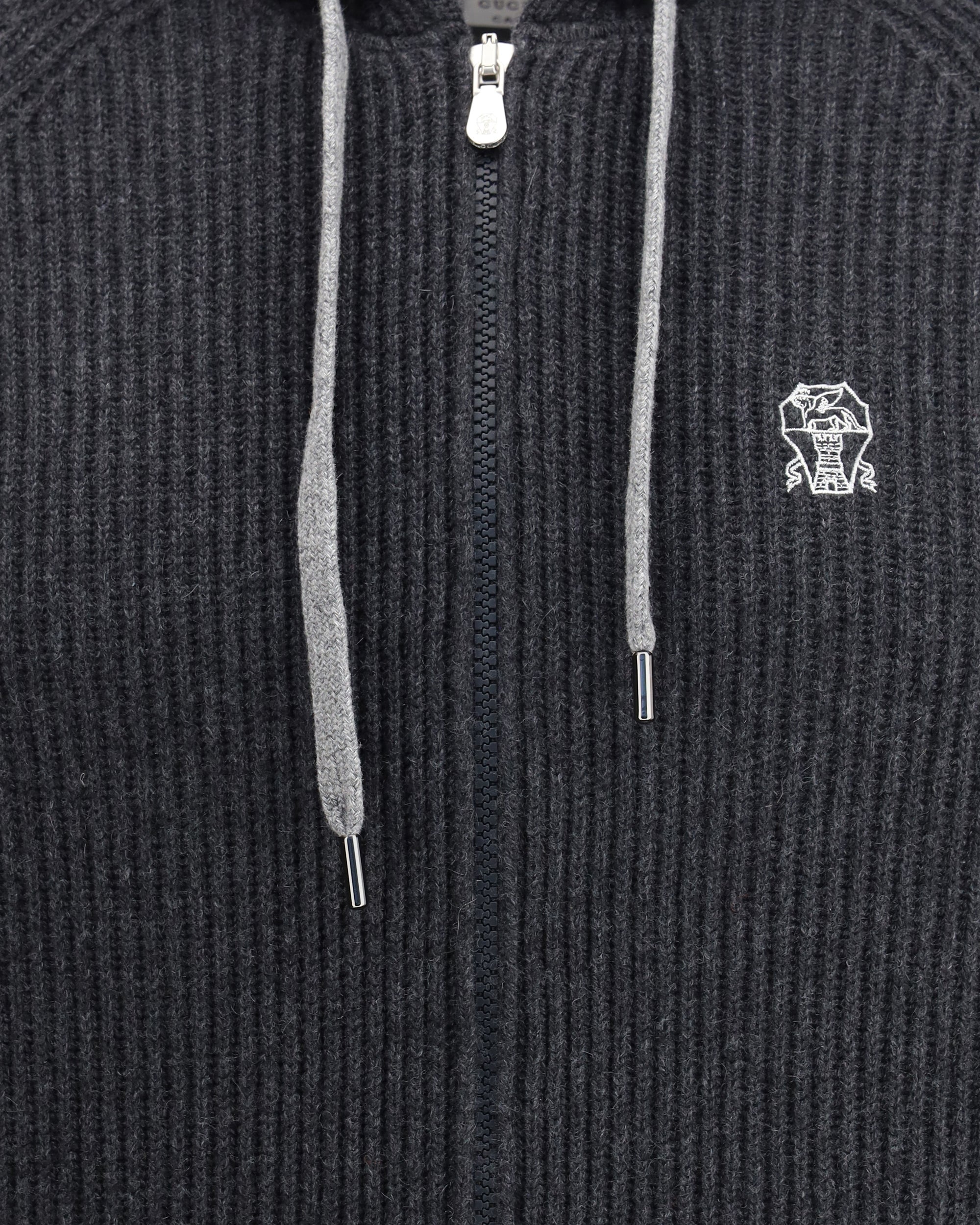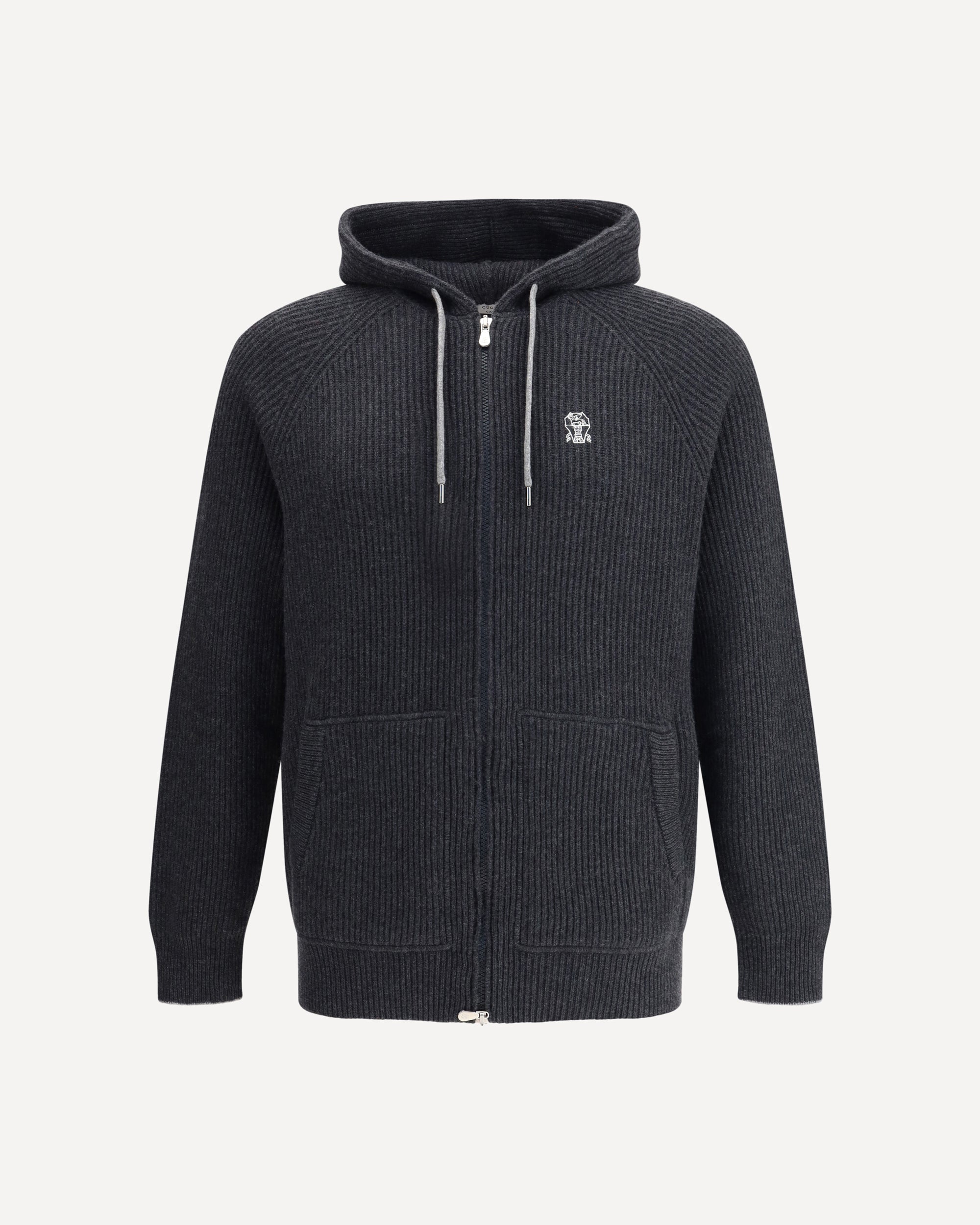Cashmere Hoodie by Brunello Cucinelli combines elegance and comfort with fine ribbing. Featuring a drawstring hood, welt pockets and ribbed trim, it is distinguished by a contrasting embroidered logo on the chest. The monochrome pattern and regular fit complete a refined and versatile garment.