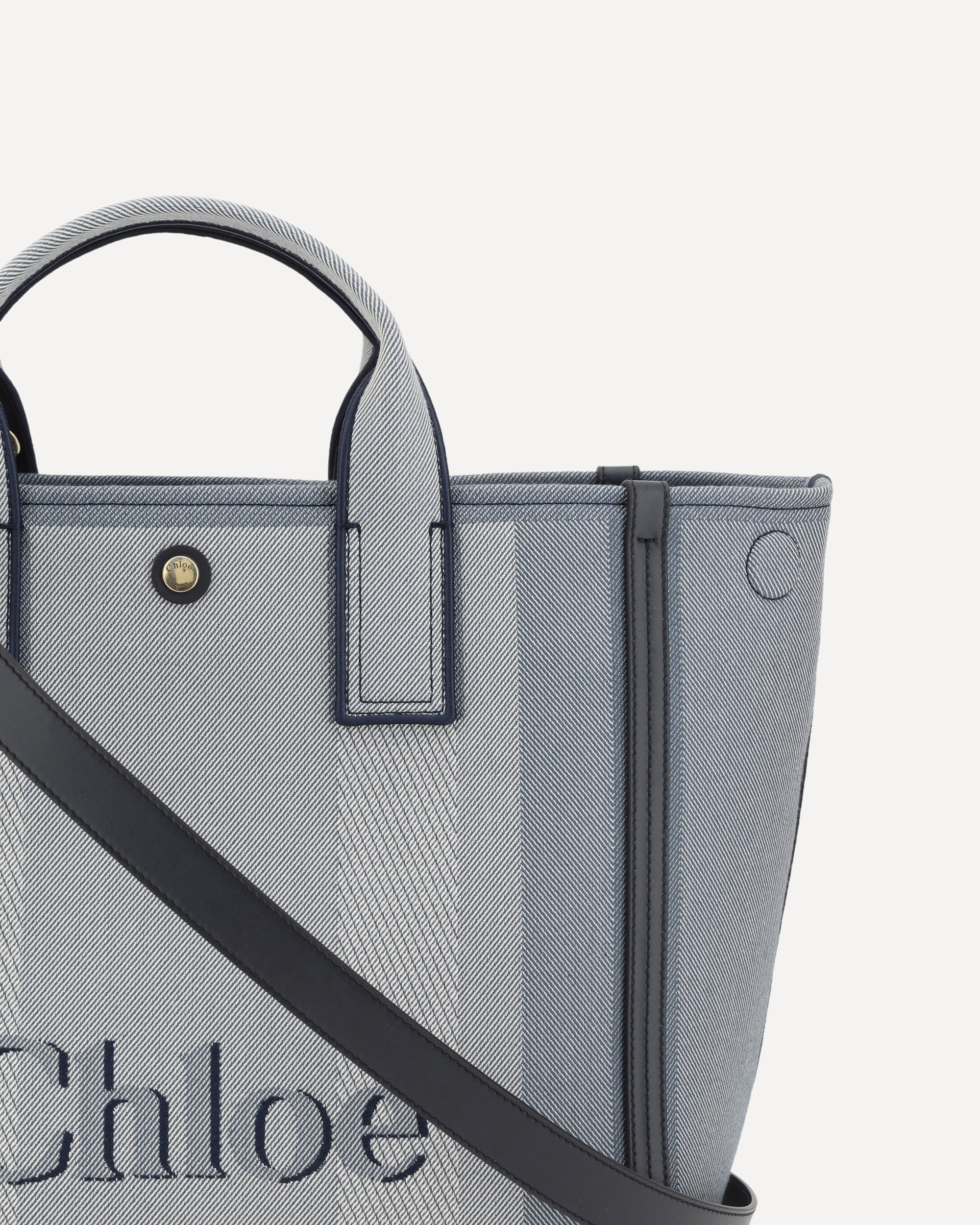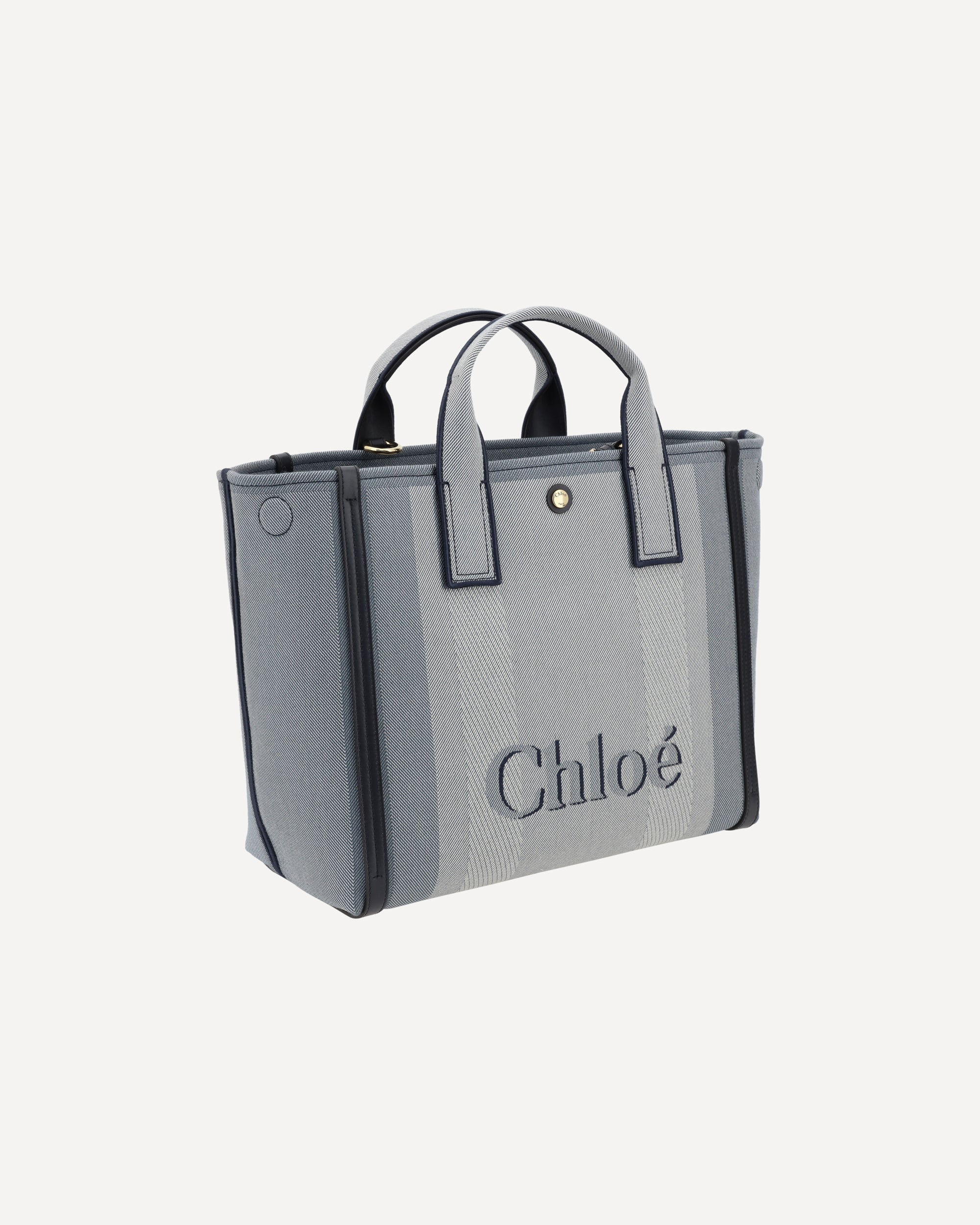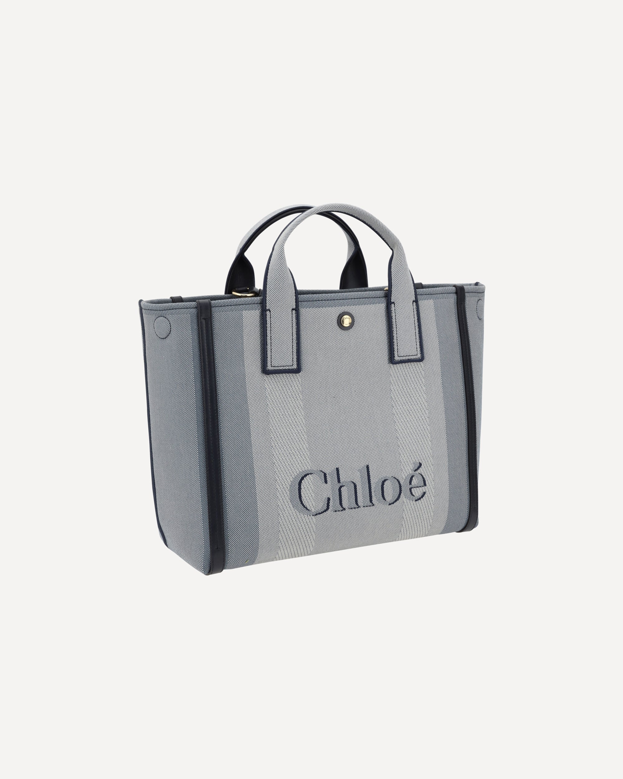 Chloé's Carry Handbag is a refined and versatile accessory made of cotton with contrasting leather details that accentuate its elegance. The snap top closure provides practicality, while the double flat handles and leather extension on the side panels add a sophisticated touch. The brand's iconic monogram is visible on the front and back, creating a distinctive appeal. The removable and adjustable leather shoulder strap also allows it to be carried on the shoulder, increasing versatility. Inside, a welt pocket helps keep smaller items tidy, while the brand's signature on the side panels completes the look with a classy detail.