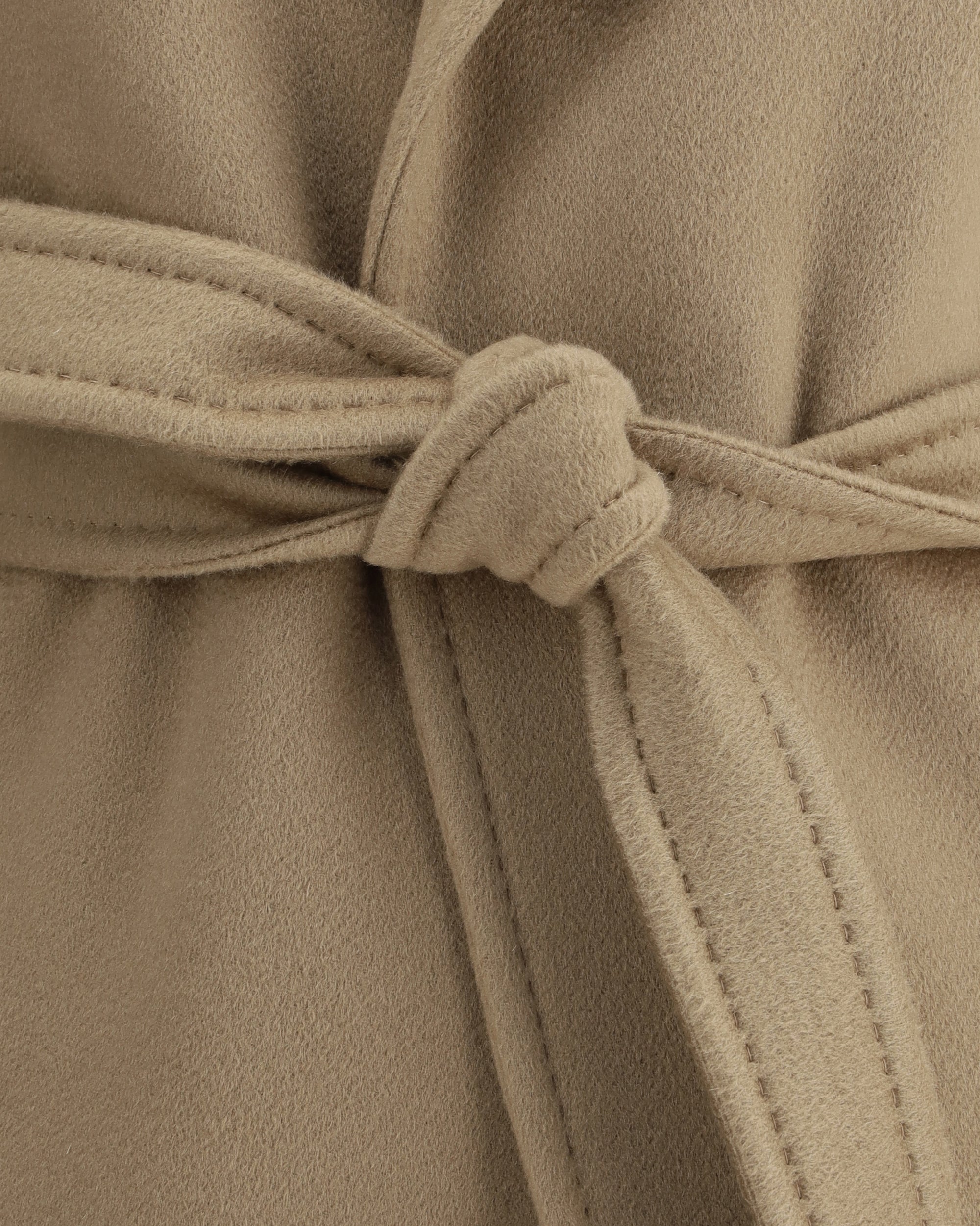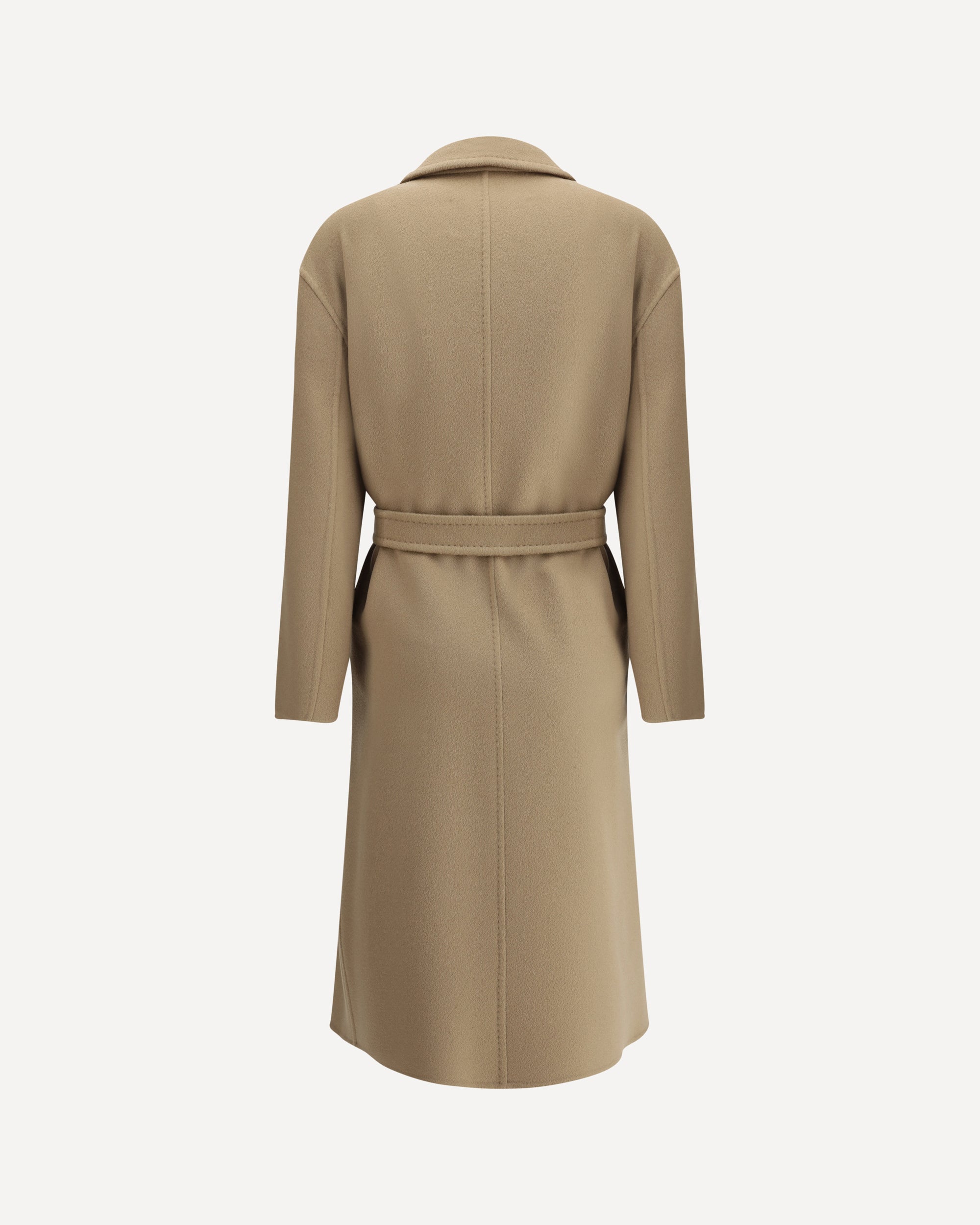 Max Mara's Melinda Coat is a luxurious garment made from soft cashmere that provides warmth and comfort without compromising style. The peaked lapels add a note of classic elegance, while the two side welt pockets offer functionality with discretion. The matching sash, which can be tied at the waist, emphasizes the silhouette and allows you to adjust the fit. A sophisticated coat, perfect for those seeking a refined and timeless look, ideal for formal occasions or to complete an everyday outfit with class.