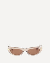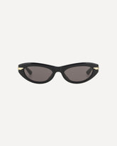 Bottega Veneta's Cat Eye Sunglasses are a chic and sophisticated accessory, with a bold design that evokes timeless elegance. The Cat Eye shape lends a vintage style, which marries perfectly with a modern touch, making them perfect for those seeking a refined and distinctive look. The thin contrasting temples add a further detail of elegance and originality, balancing the decisive shape of the frame.