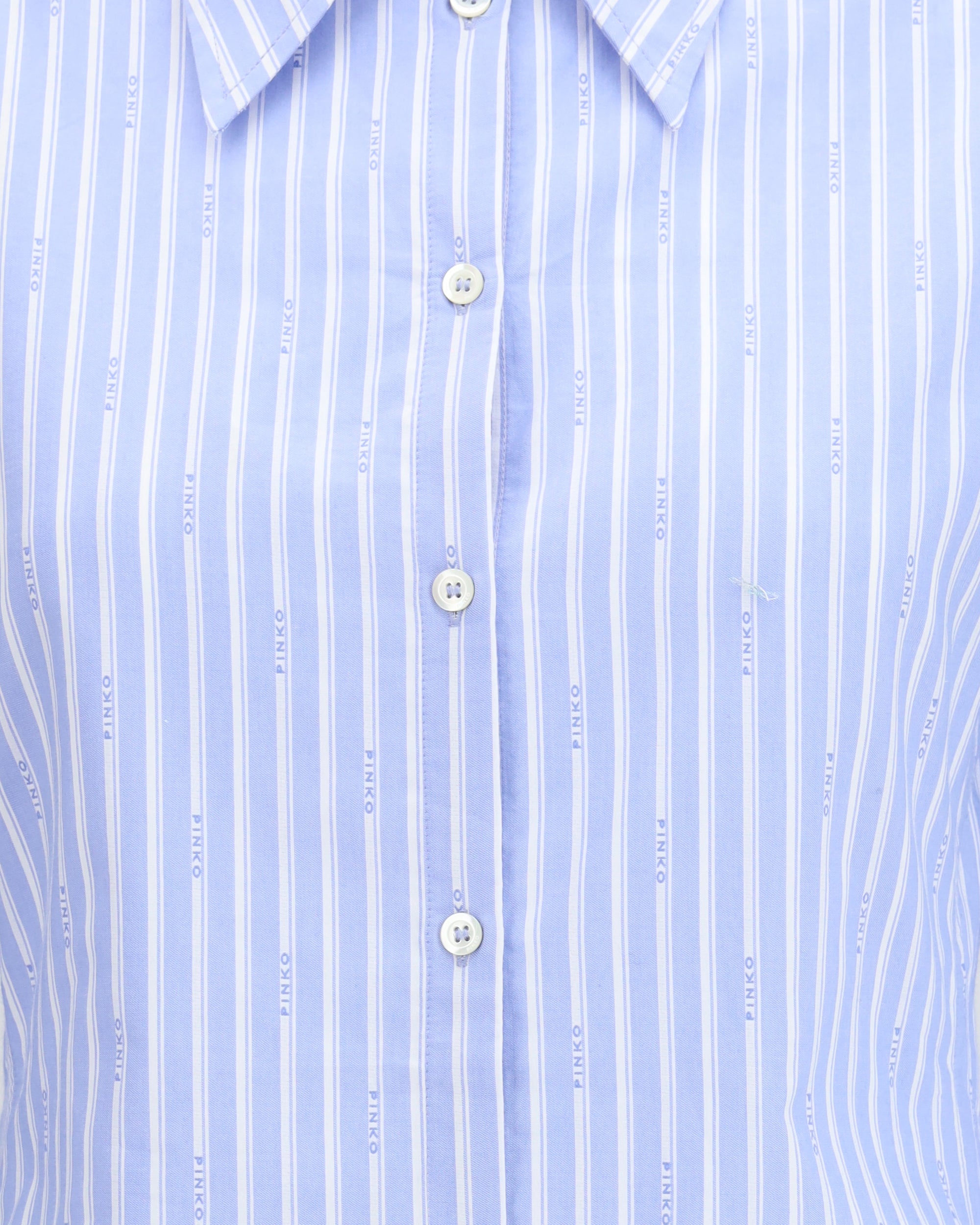 The Cathleen Shirt by Pinko, with its striped pattern, is a classic and sophisticated piece. Featuring a classic collar and button closure, it stands out for its all-over Pinko signature, which adds a distinctive and contemporary touch. Perfect for a casual-chic look, it is ideal to pair with jeans or elegant trousers.