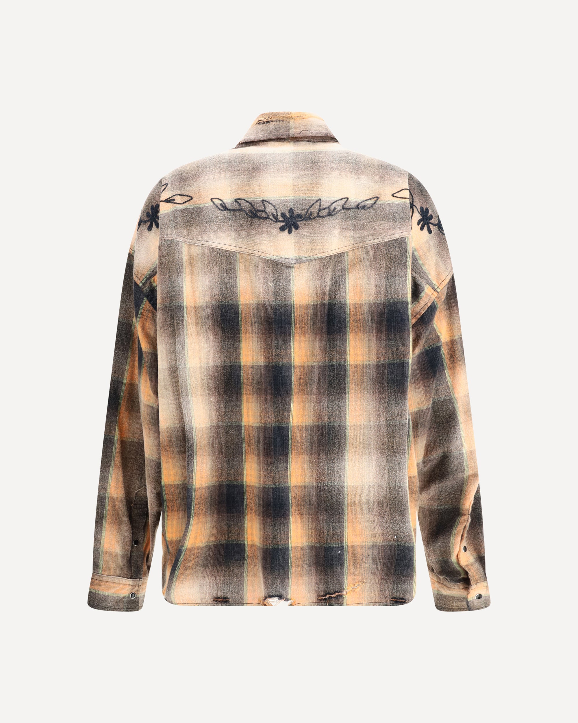 Maison Mihara's check Shirt reinterprets a classic with an original, lived-in twist. Featuring a front button closure, it has a buttoned chest pocket and cuffs that are also buttoned. The design is enriched with floral embroidery and a worn effect that gives character to the garment. Completing the look are two patch pockets on the front with a flap and snap button, for an edgy and sophisticated style.