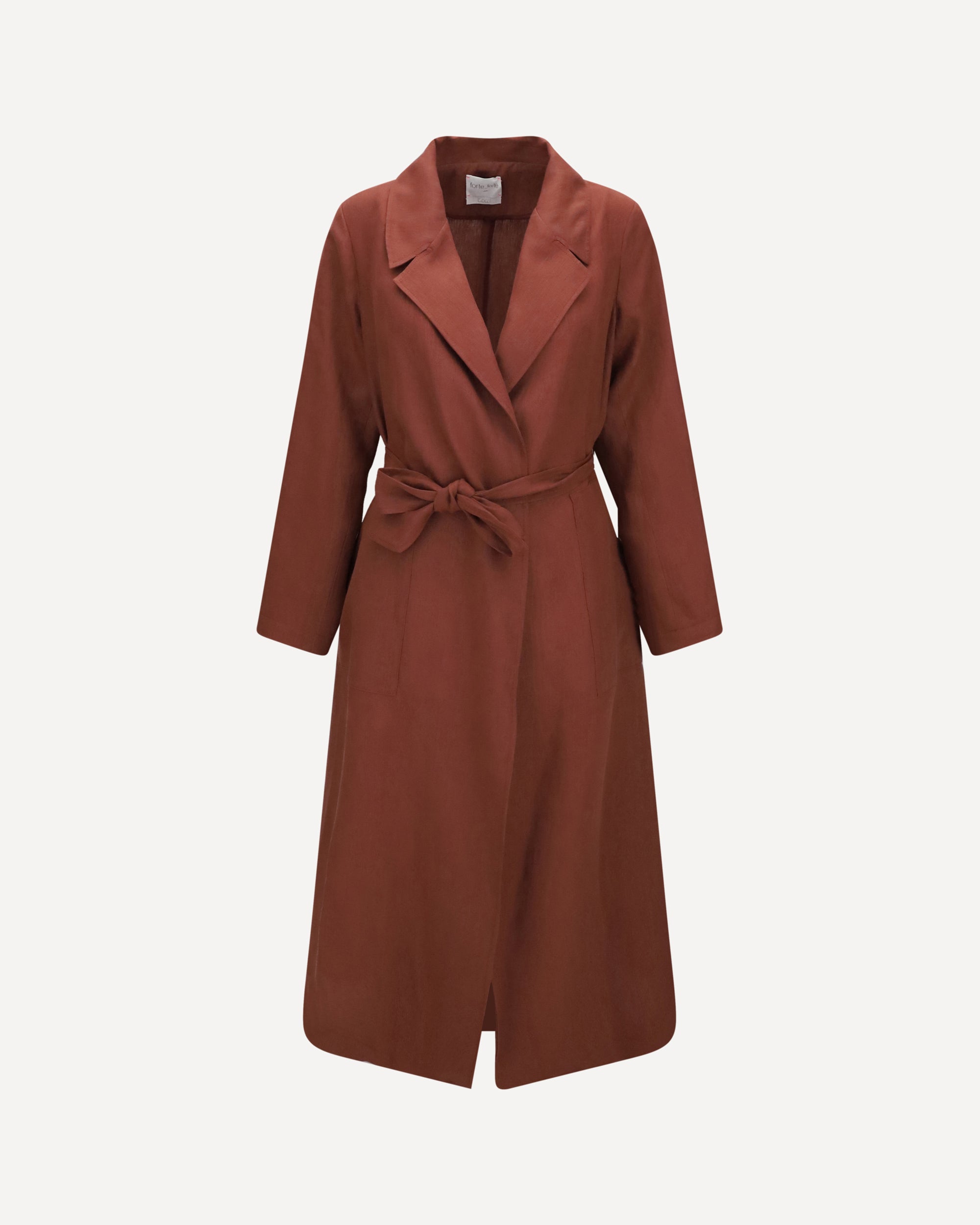 Forte_Forte's Linen Coat is a light and sophisticated reinterpretation of the classic belted style, designed for the summer season. Made of pure linen canvas, it is ideal for warmer days. Straight lines at the bust and a tailored lapel neckline give structure and character, while the belted waist softens the silhouette. Geometric patch pockets with exposed topstitching complete the design.