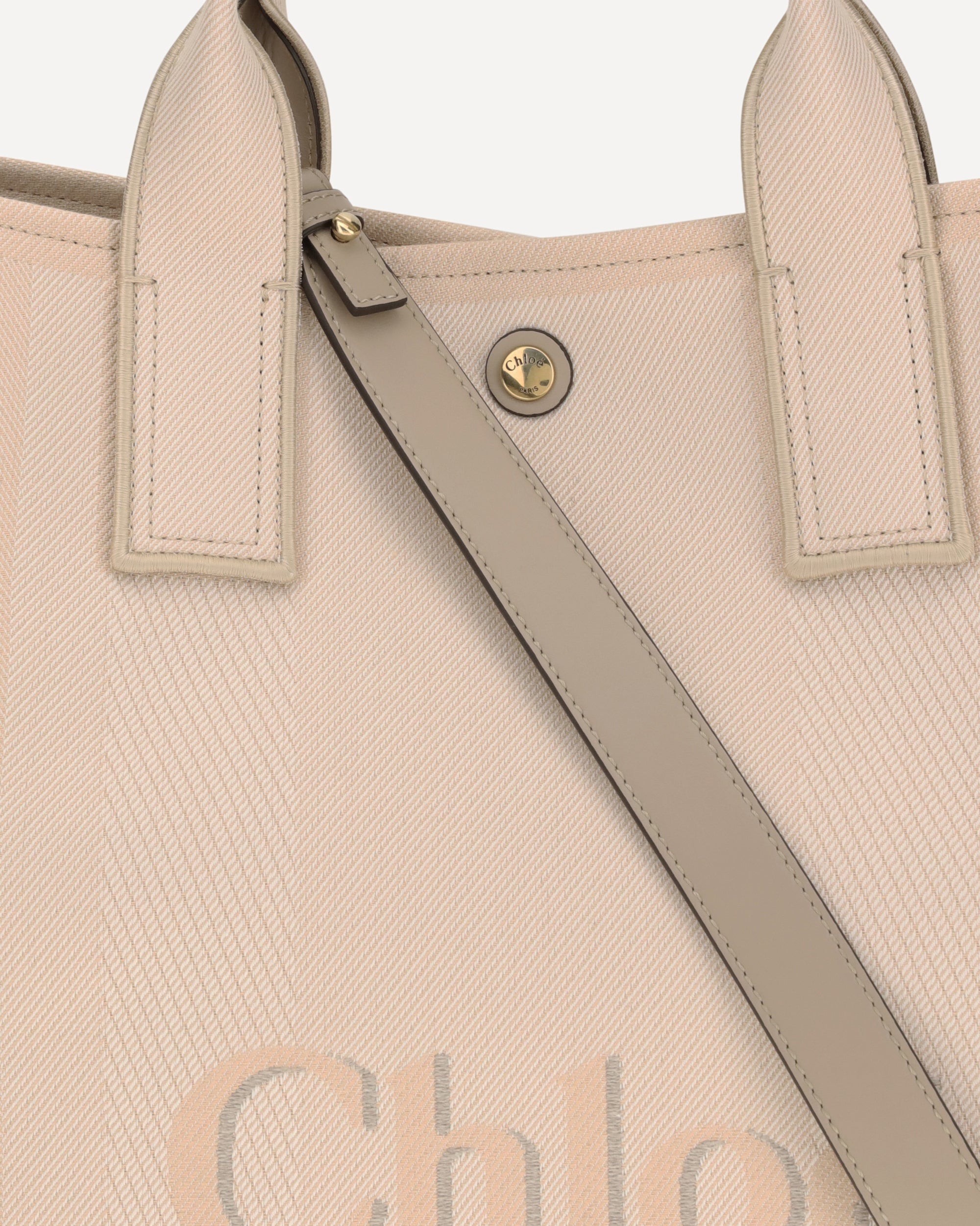 Chloé's Carry Handbag is a refined and versatile accessory made of cotton with contrasting leather details that accentuate its elegance. The snap top closure provides practicality, while the double flat handles and leather extension on the side panels add a sophisticated touch. The brand's iconic monogram is visible on the front and back, creating a distinctive appeal. The removable and adjustable leather shoulder strap also allows it to be carried on the shoulder, increasing versatility. Inside, a welt pocket helps keep smaller items tidy, while the brand's signature on the side panels completes the look with a classy detail.