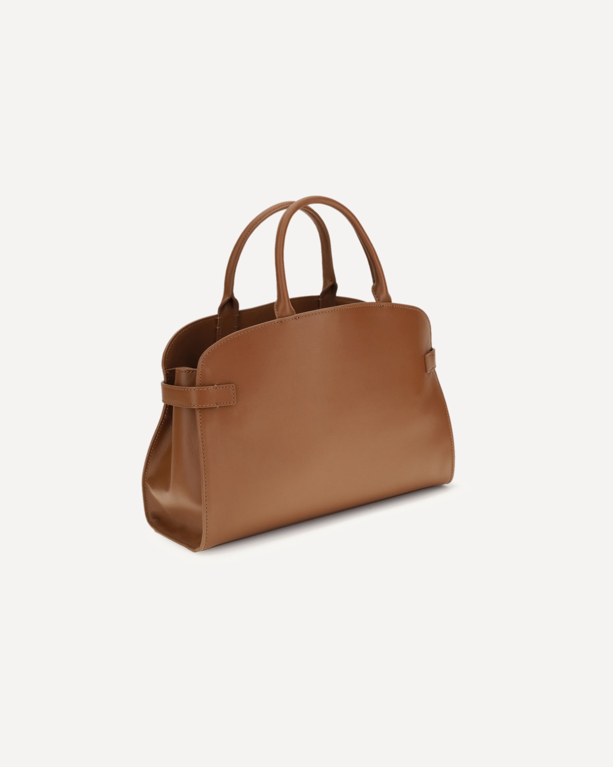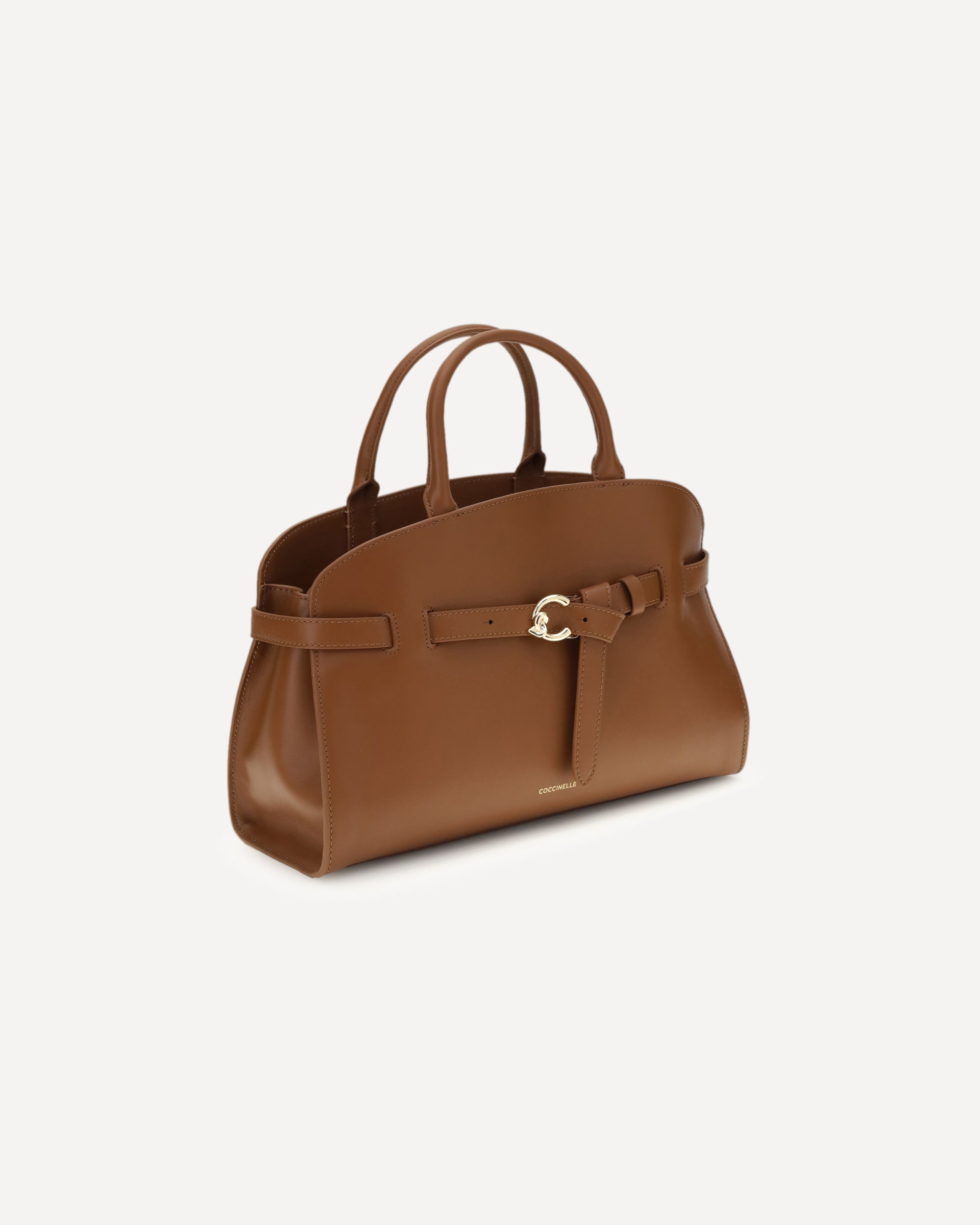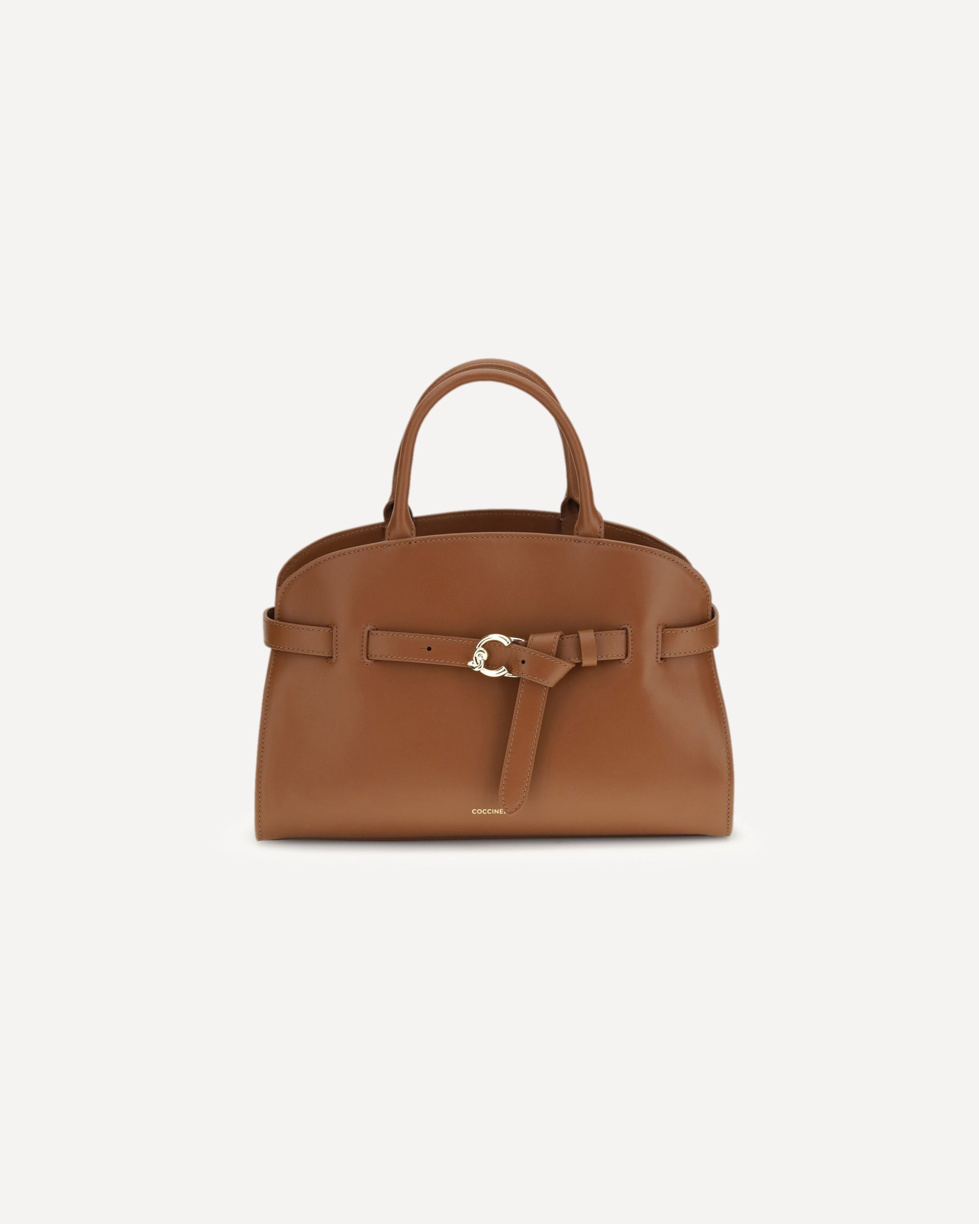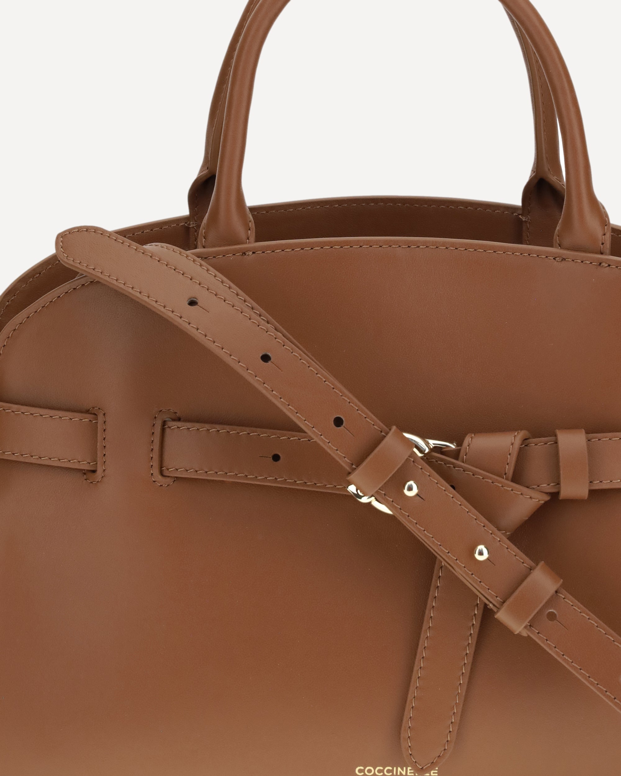 The medium Sabine Handbag by Coccinelle combines functionality and style in an essential and refined design. Made of smooth leather, it features dual portability thanks to leather handles and an adjustable, removable shoulder strap. The magnet closure ensures practicality, while the interior is organized with three pockets, one of which is zippered, and a closed center partition. A discreet but distinctive gold-stamped logo completes the design.