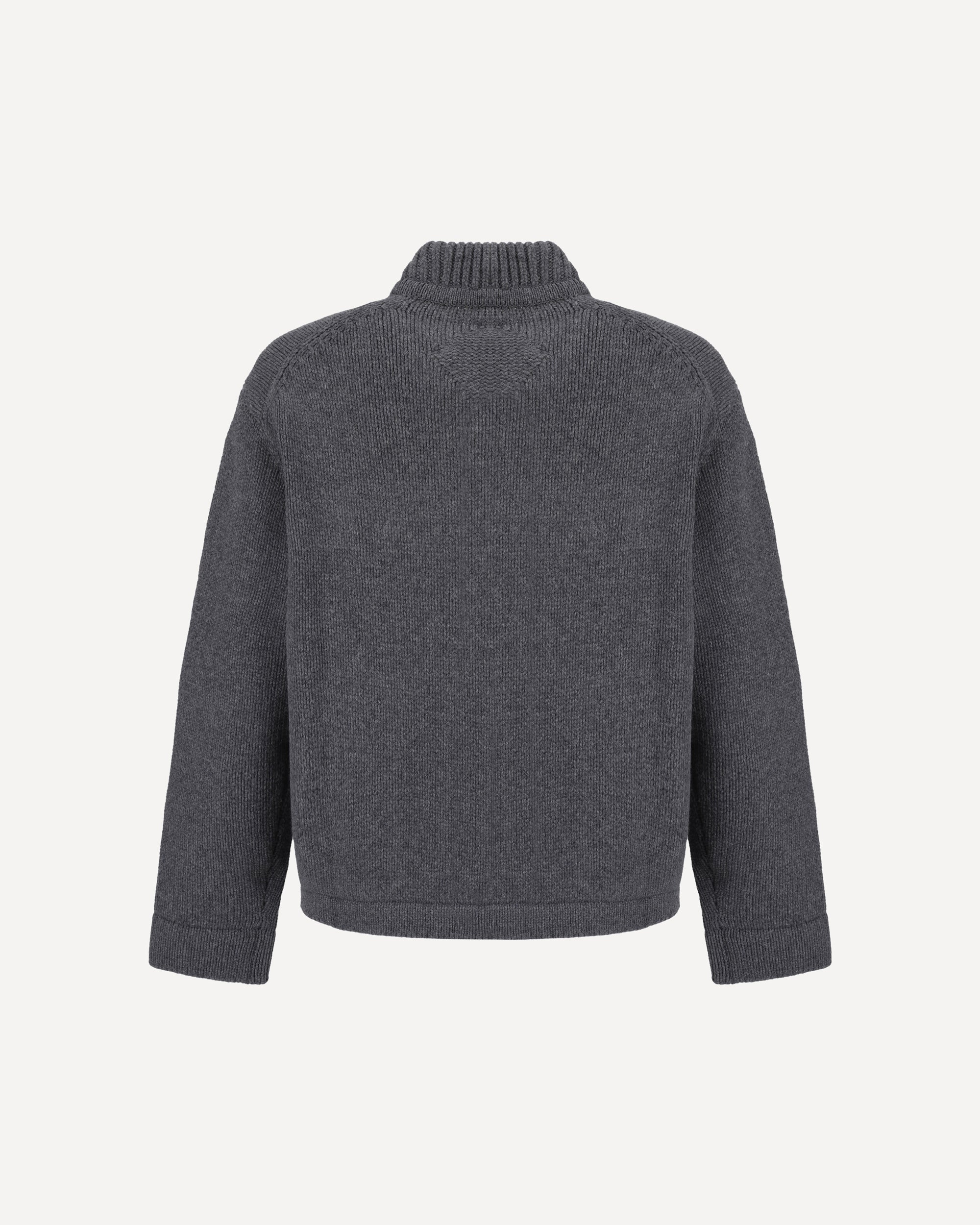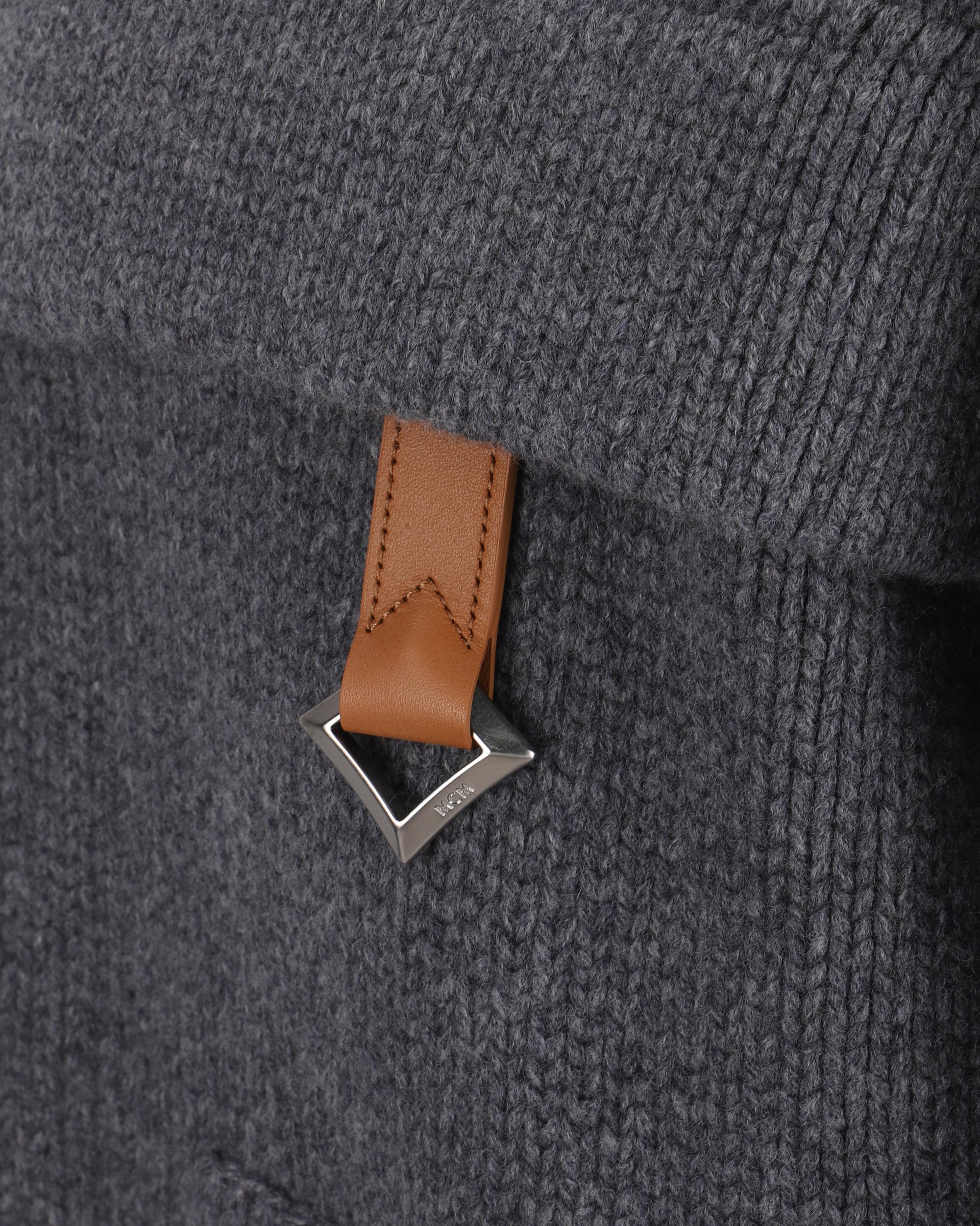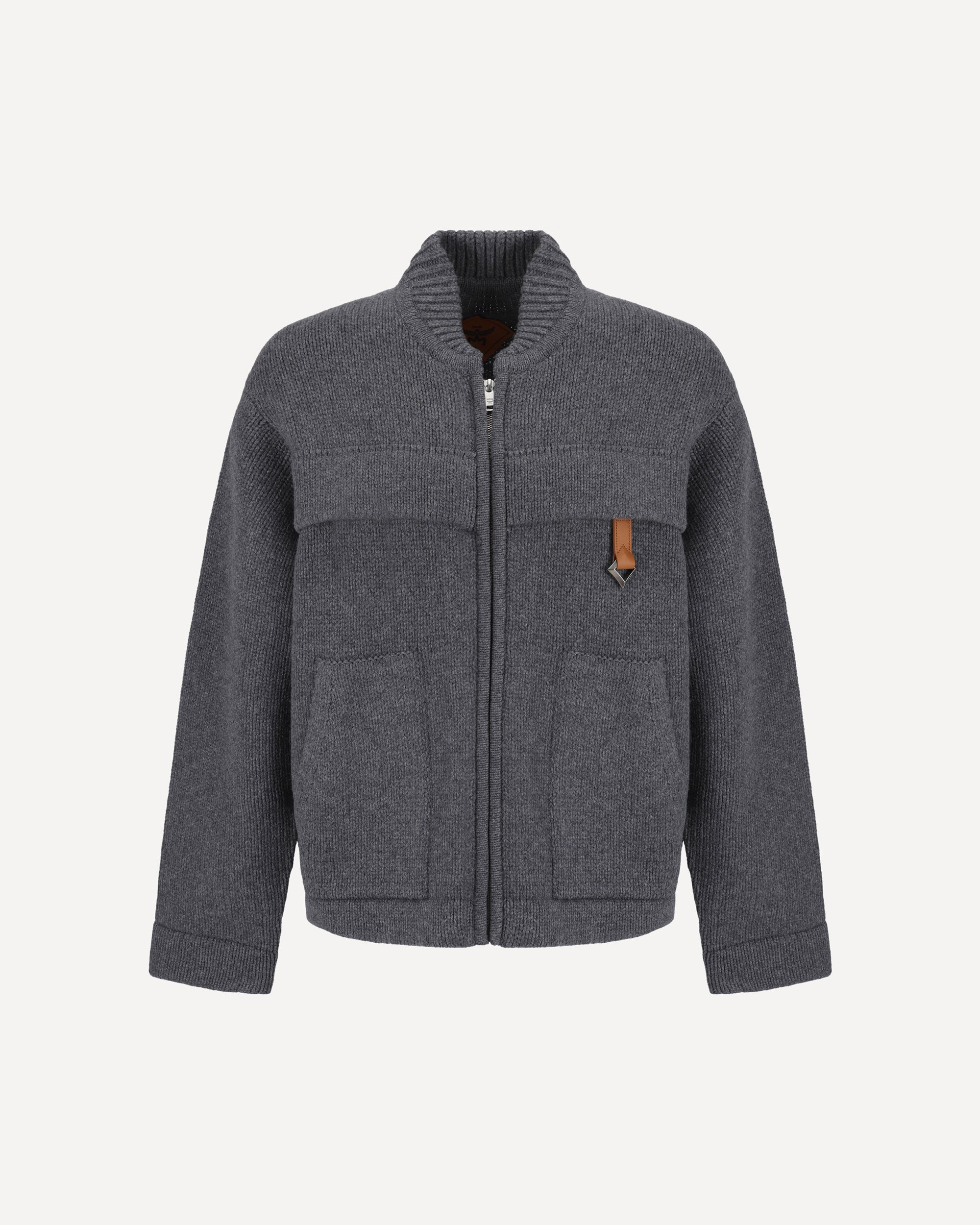 Wool Collection Cardigan by MCM, ribbed crew neck, front closure by double-slider zipper, two welt pockets on front, monochrome pattern, regular fit.