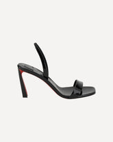 Christian Louboutin's leather Condora Sandals are a mix of elegance and originality. The squared toe and elasticized slingback at the ankle lap offer a comfortable and secure fit. The front strap adds sophisticated detail, while the geometric leather heel lends a modern, refined touch. The sole, with the brand's iconic red color, is the hallmark of Christian Louboutin, a detail that never goes unnoticed. Perfect for an elegant and bold look.