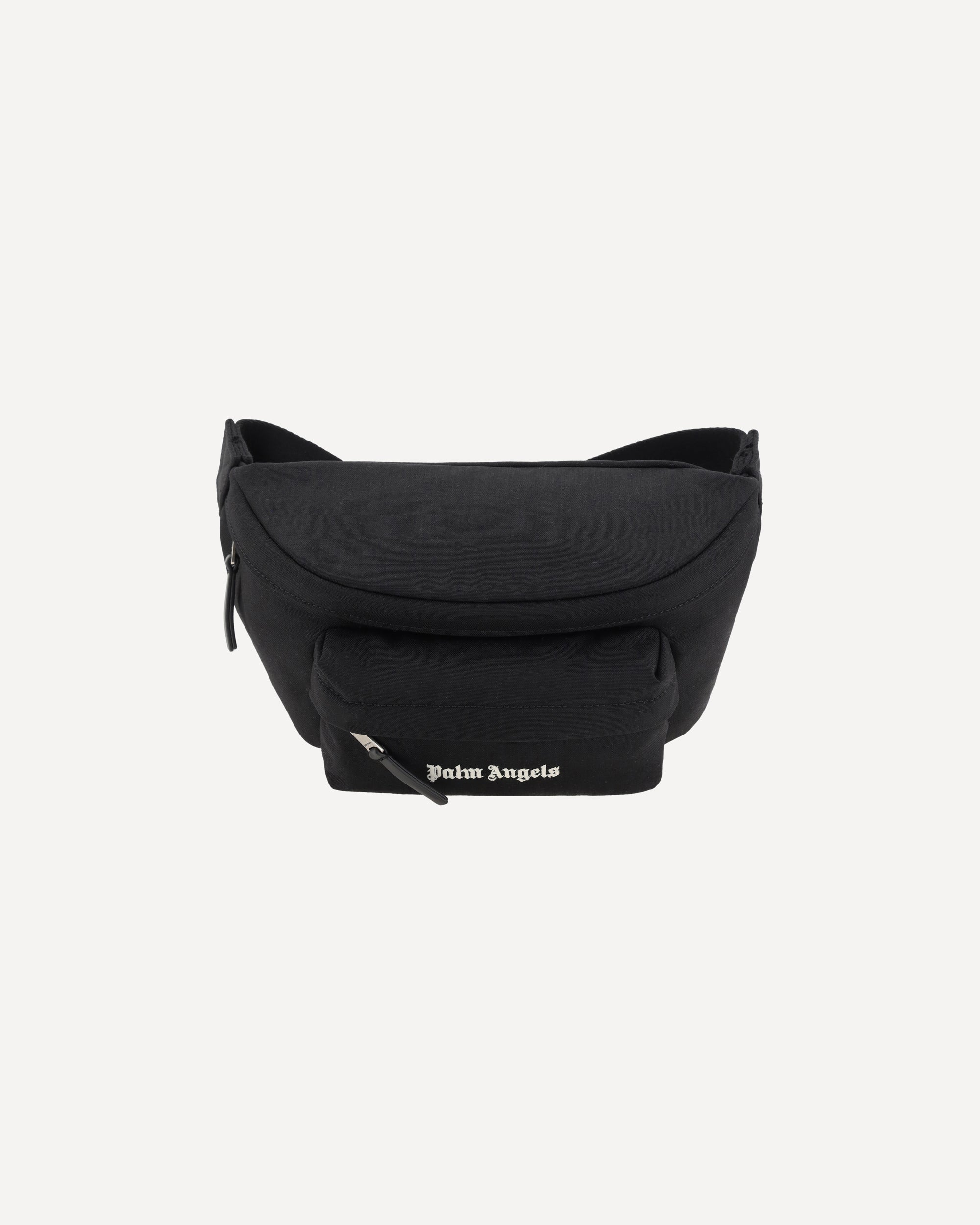 Cordura Classic Logo Fanny Pack by Palm Angels, adjustable belt, front zipper closure, iconic monogram printed in contrast on front, maxi zippered patch pocket on front.