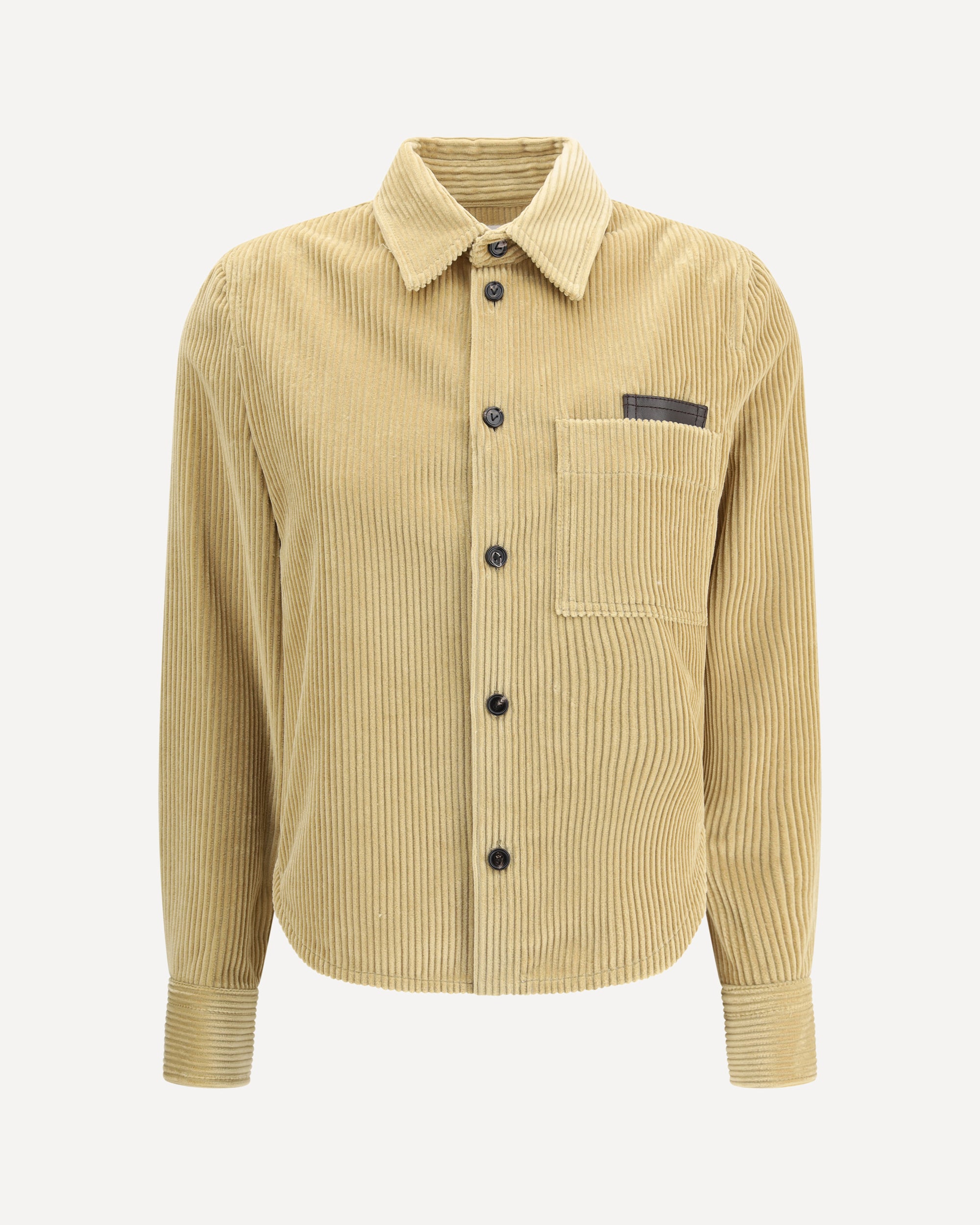 Bottega Veneta's corduroy Shirt combines elegance and comfort in a versatile garment. Featuring a classic collar and a front button closure, it has an asymmetrical hem that adds dynamism to the design. Completing the design is the presence of two patch pockets on the front for a functional and refined touch.