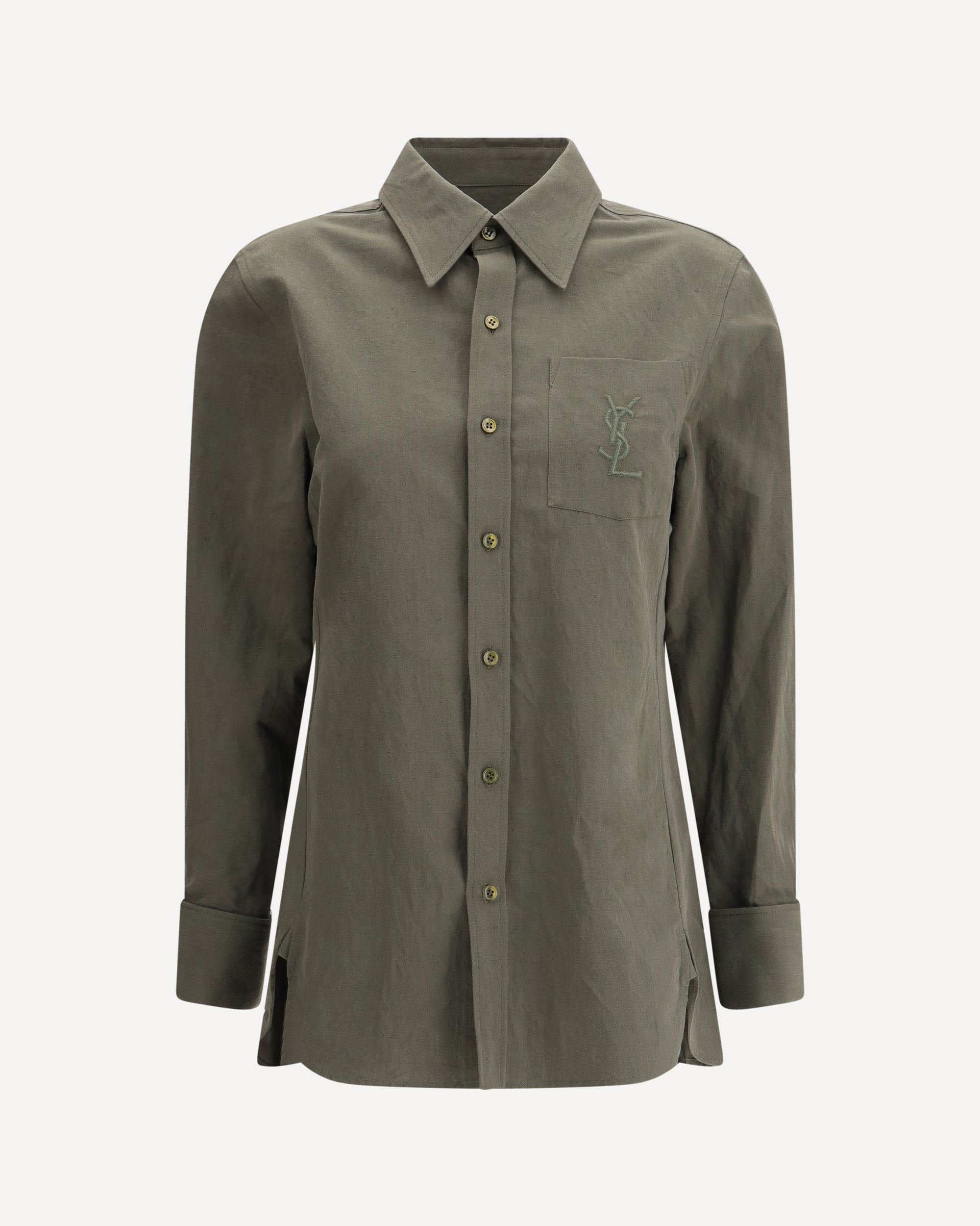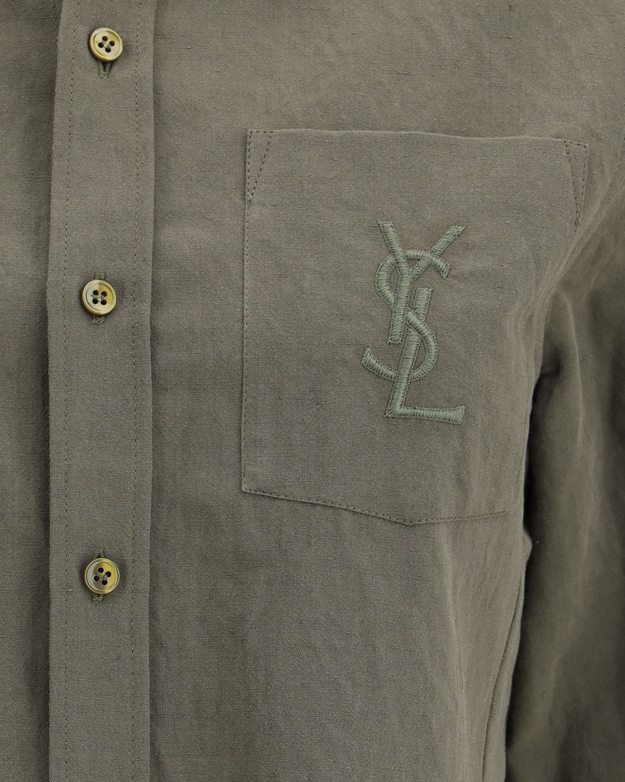 Saint Laurent's cotton linen Shirt is an elegant and sophisticated piece with a classic collar that lends a touch of sophistication. The front button closure adds practicality and style, while the welt pocket with iconic tone-on-tone YSL embroidery detail lends a distinctive and recognizable accent. Appliqué cufflinks complete the design, adding a touch of class and formality to the garment.