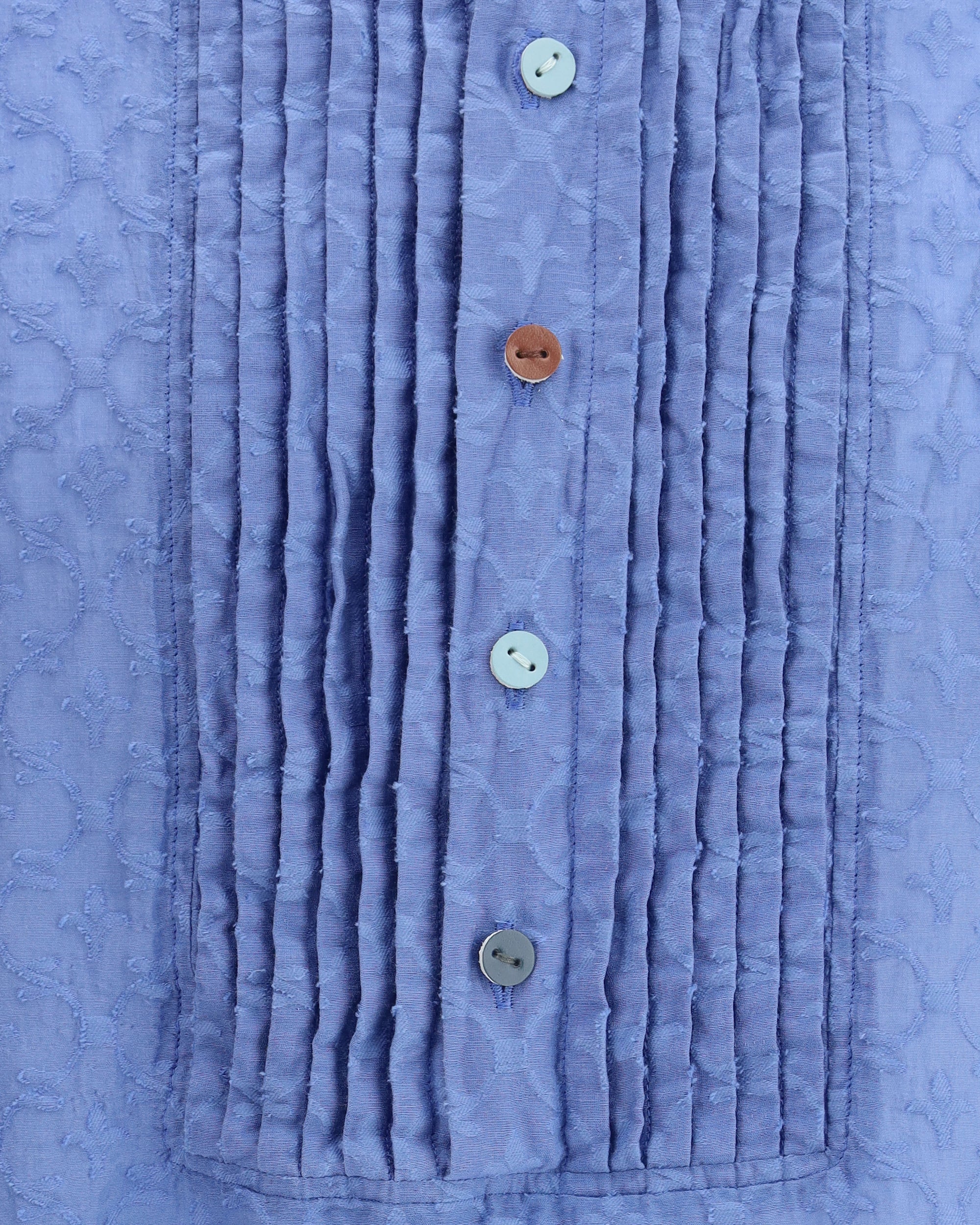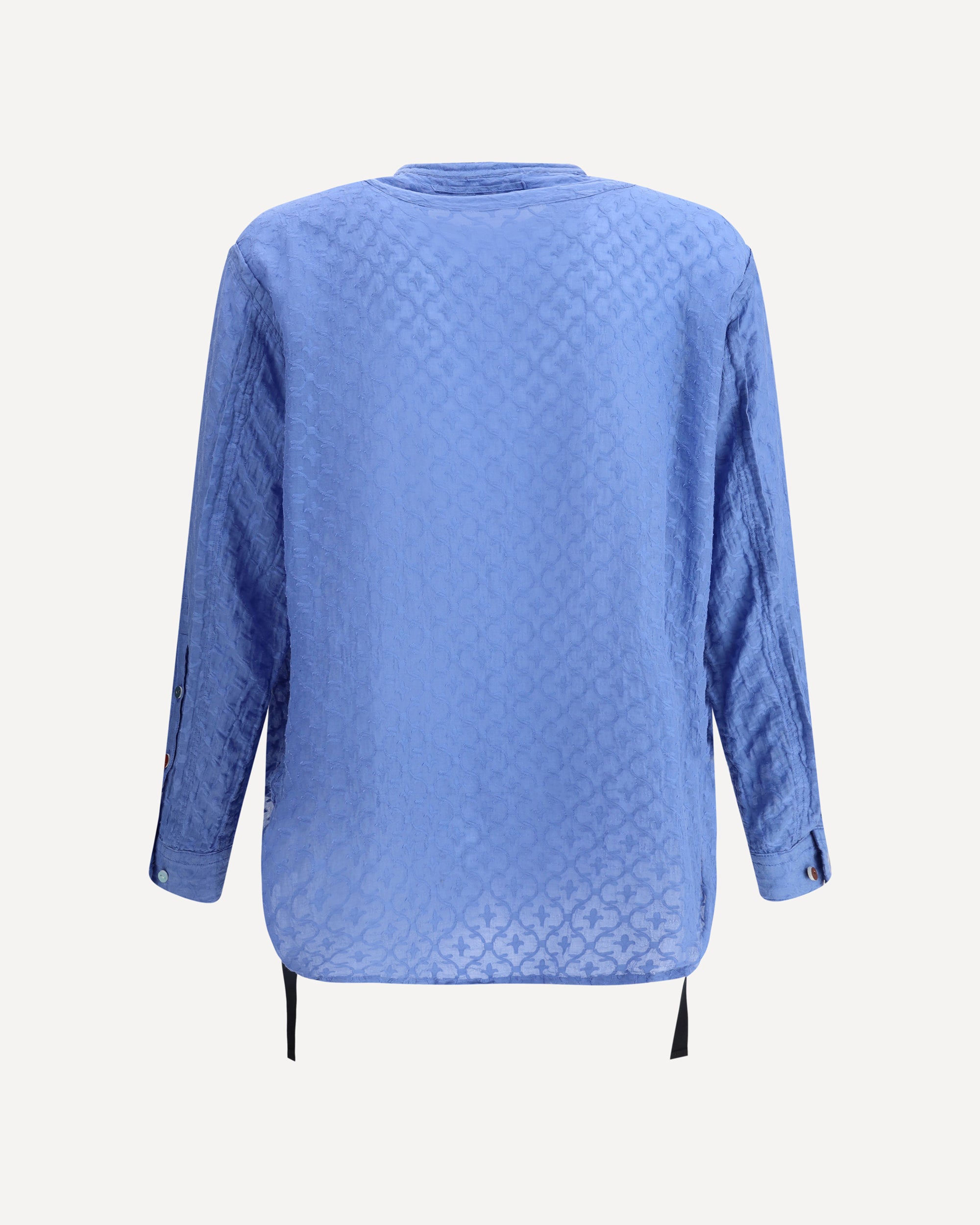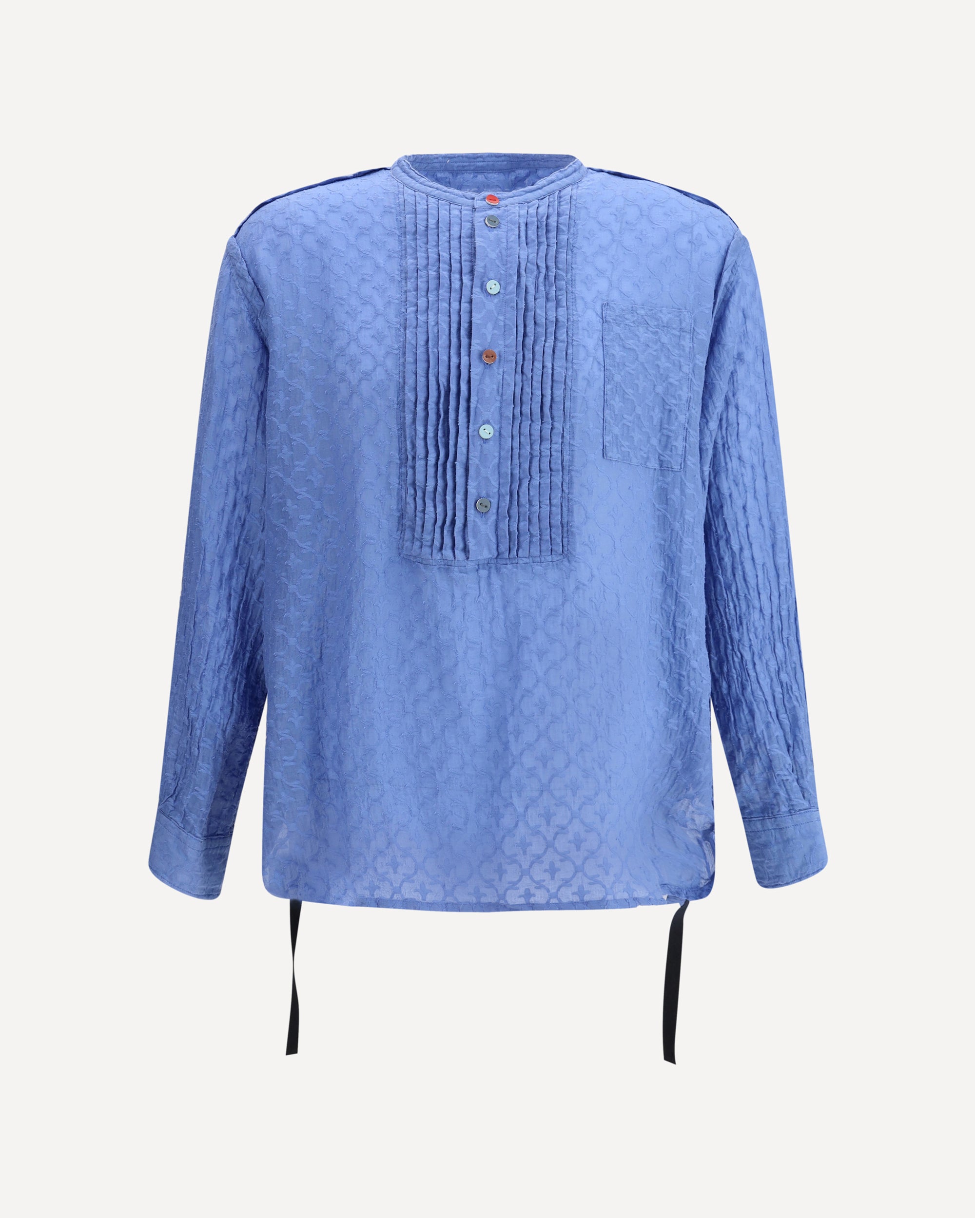 Undercover's cotton and silk Blouse combines elegance and originality with its sophisticated design and unique details. It features a crew neck and a half-bust closure with multicolored buttons, which add a lively touch to the garment. An applique welt pocket on the front and adjustable button cuffs complete the look. Ribbons inserted in the side panels allow the fabric to curl, creating a dynamic and creative effect. An eye-catching garment with its mix of elegance and experimentation.
