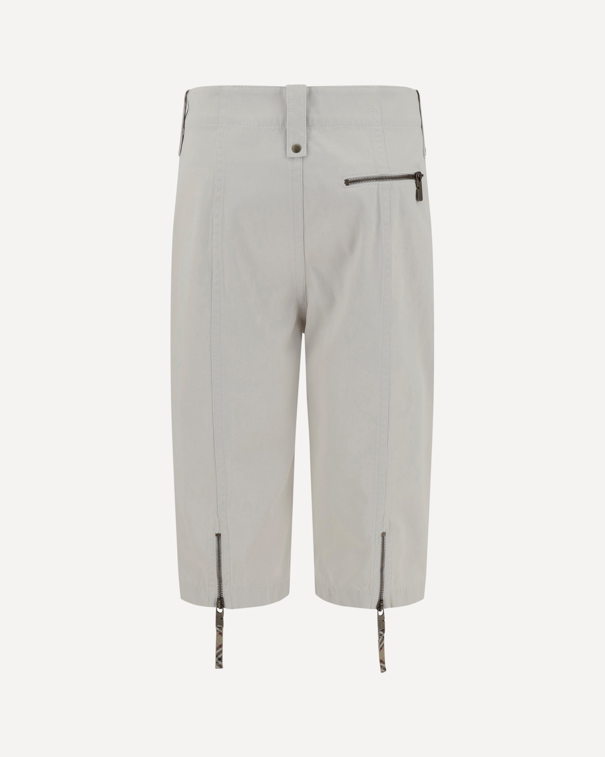 Burberry's cotton capri Pants are a versatile and practical garment with a sleek, modern design. Side welt pockets and zipper pockets on the front and back add functionality without sacrificing style. Zippers at the bottom give a dynamic, customizable touch, while the zipper and snap-button closure ensures a perfect fit. Belt loops at the waistband allow you to add extra style detail. These pants are ideal for a casual yet sophisticated look, perfect for any occasion.