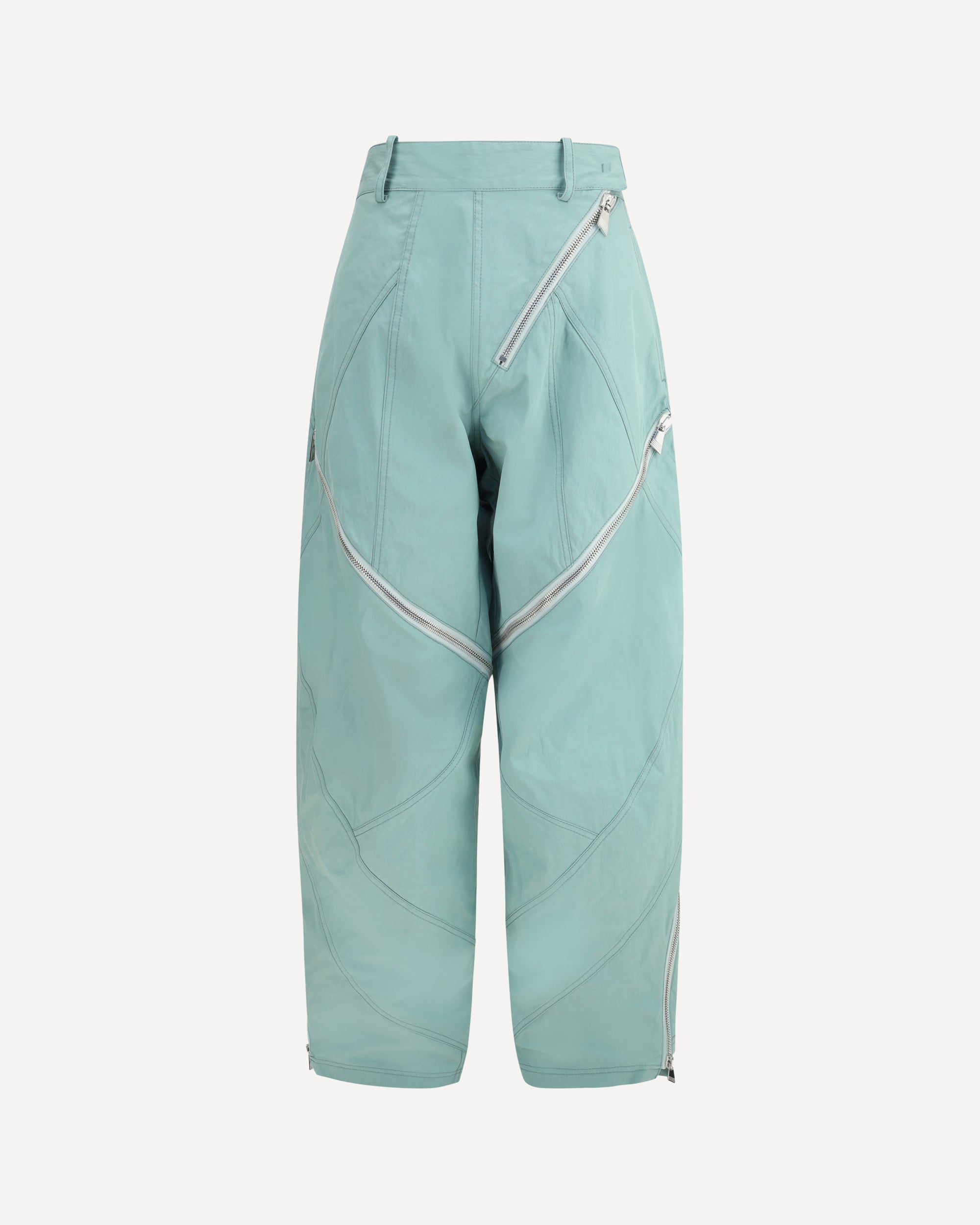 The Attico's signature cotton Pants combine comfort and style with a bold contemporary design. Featuring an asymmetrical front zipper closure, these pants feature two side welt pockets and belt loops on the waistband, offering a versatile and practical fit. Wide legs and a full-length zipper opening add a dynamic and modern touch to the garment, perfect for a casual yet sophisticated look .