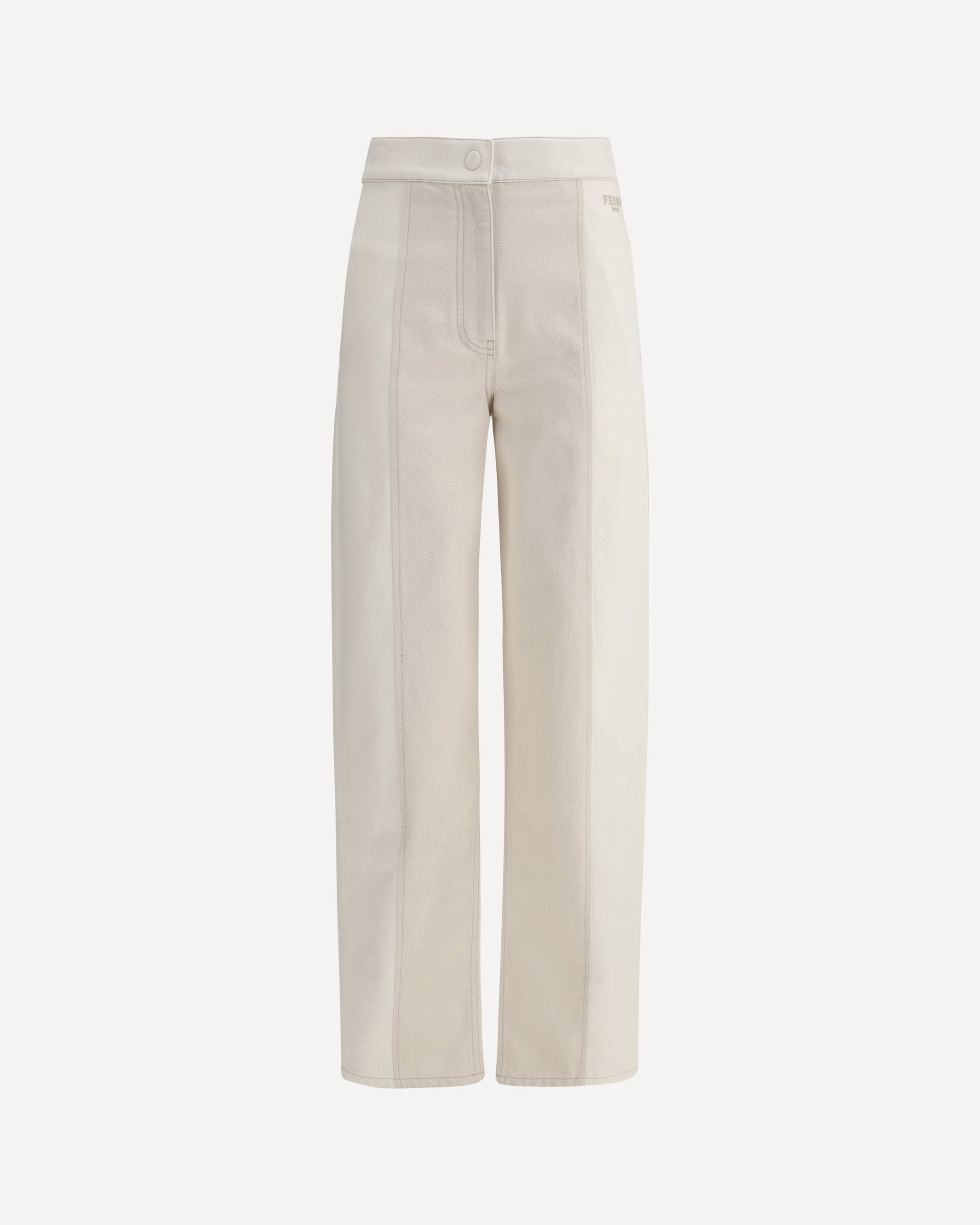 Fendi's Cotton Pants are a versatile and chic piece, ideal for a casual yet sophisticated look. Featuring a front zipper and button closure, they provide a comfortable and secure fit. The high waist defines the silhouette, while the straight leg creates an elegant and timeless silhouette. A distinctive detail is the iconic signature contrast stitched on the side, adding a discreet and recognizable touch of luxury. Made from high-quality cotton, these pants are perfect for a refined everyday look, easily paired with blouses, t-shirts or jackets for a versatile, modern outfit.
