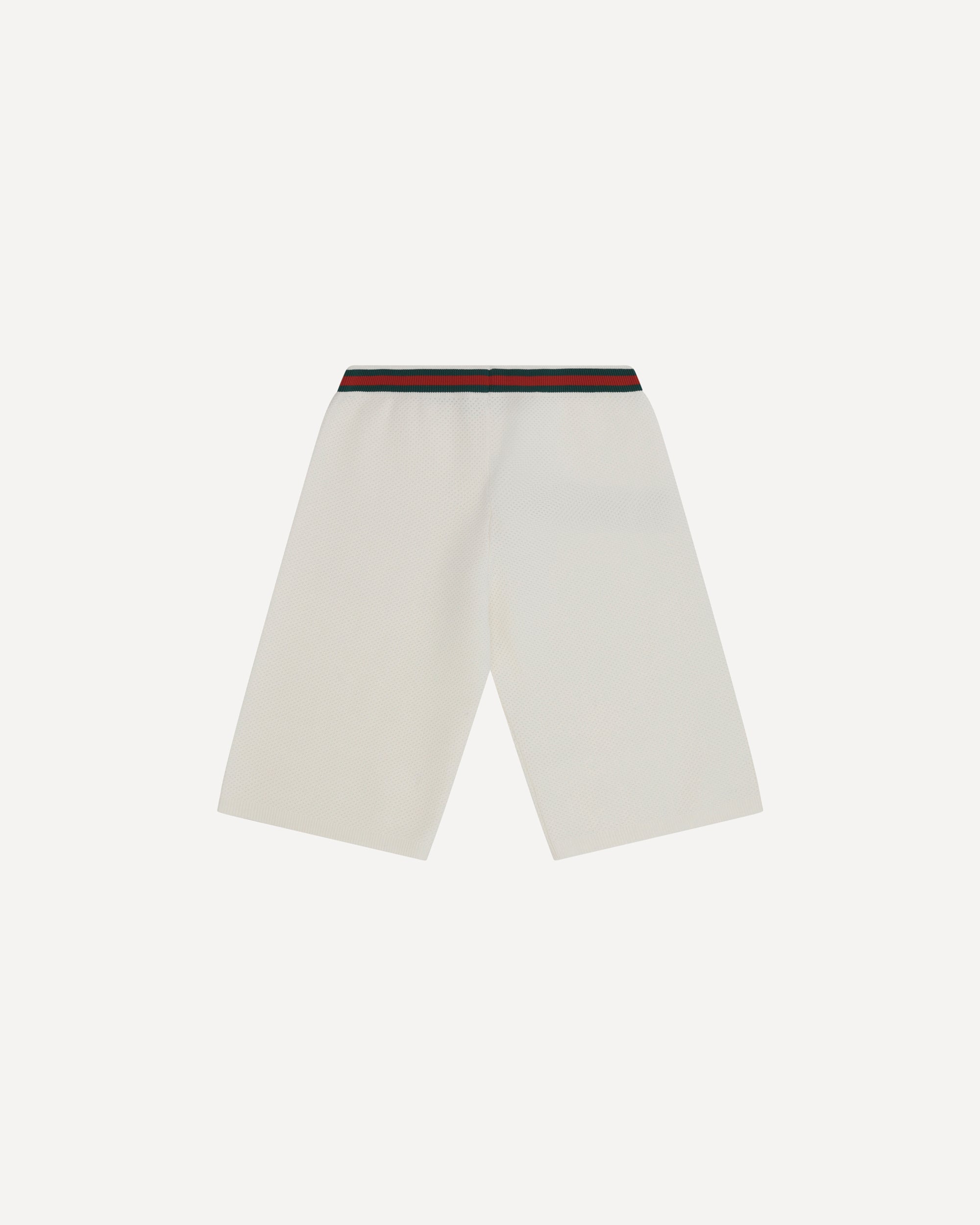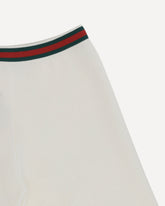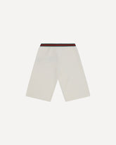 Gucci's cotton Shorts for Boy combine comfort with iconic style. The contrasting elastic waistband is embellished with the brand's iconic colored bands, adding a distinctive touch. On the front, the tone-on-tone embroidered monogram embellishes the design with understated elegance. Perfect for a casual yet refined look, these shorts embody the unmistakable Gucci aesthetic.
