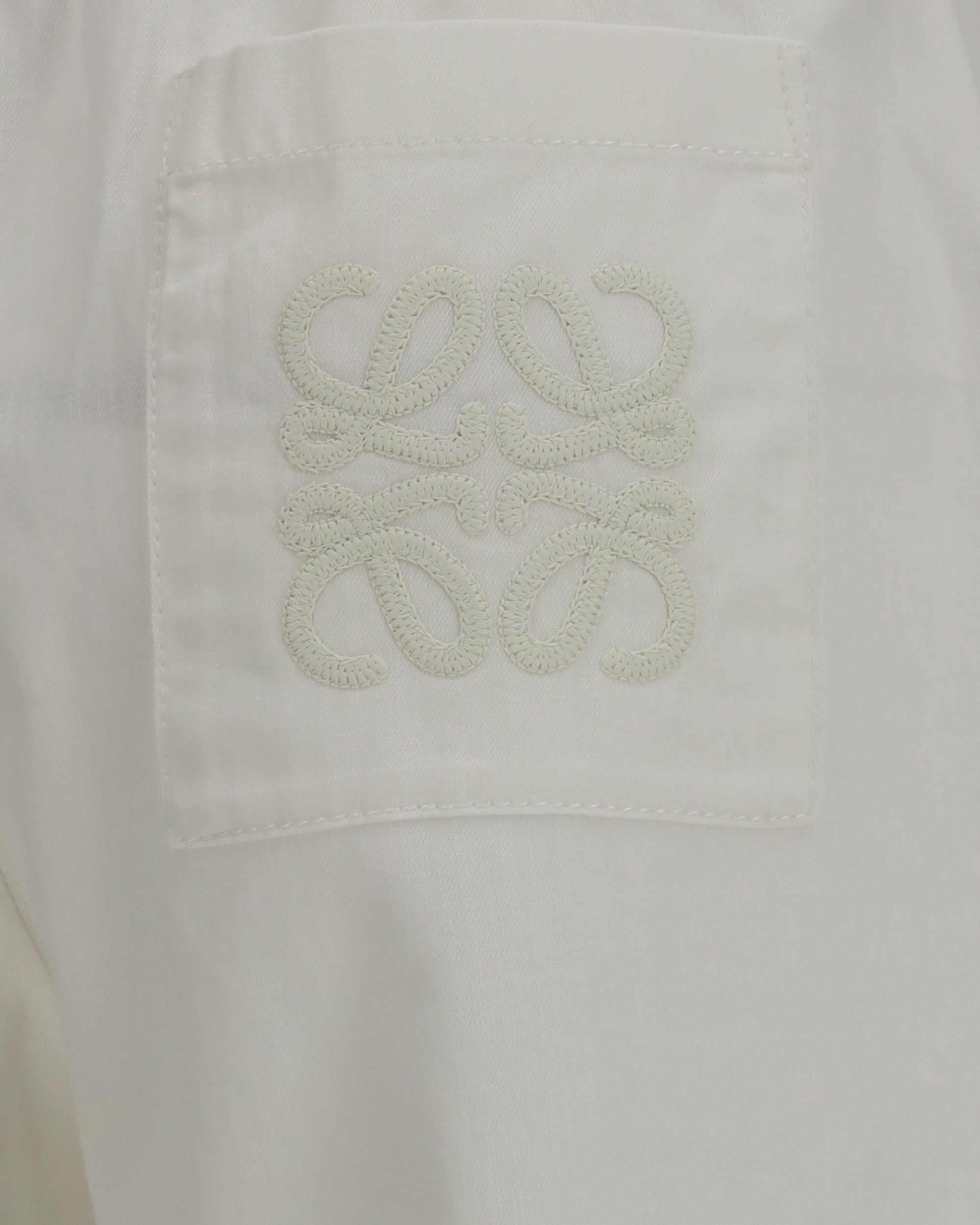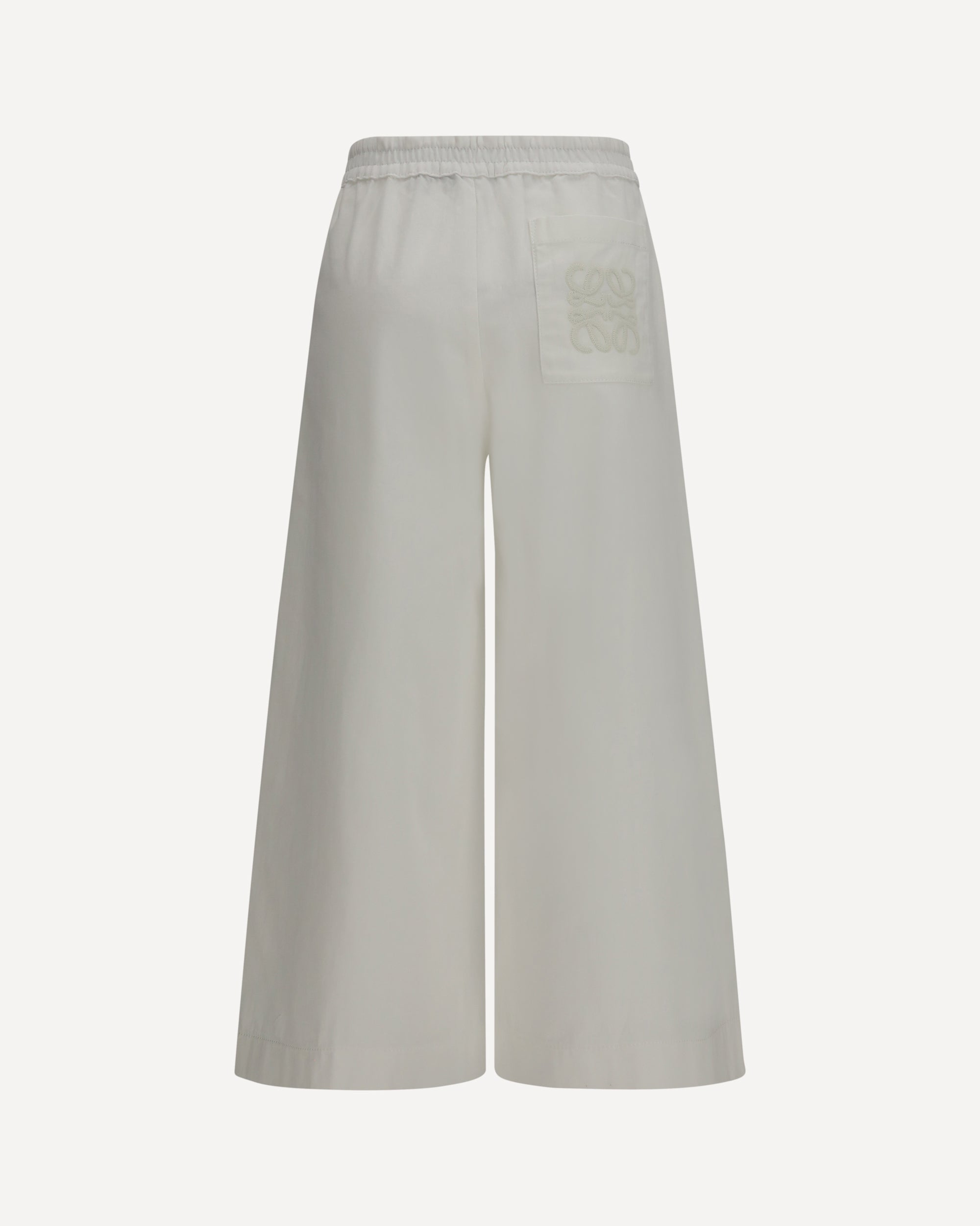 The cropped denim Pants by Loewe x Paula’s Ibiza stand out for their relaxed and contemporary design, perfect for refined casual looks. Crafted from lightweight cotton denim, they feature a soft fit with a cropped length that gives the piece a modern and effortless attitude. The partially elasticated waistband ensures comfort and practicality, while the concealed zip fastening keeps the design clean and minimal. The style is completed with slanted side pockets, a patch back pocket, and crochet Anagram embroidery on the back, a distinctive detail that reflects the Maison’s artisanal aesthetic.