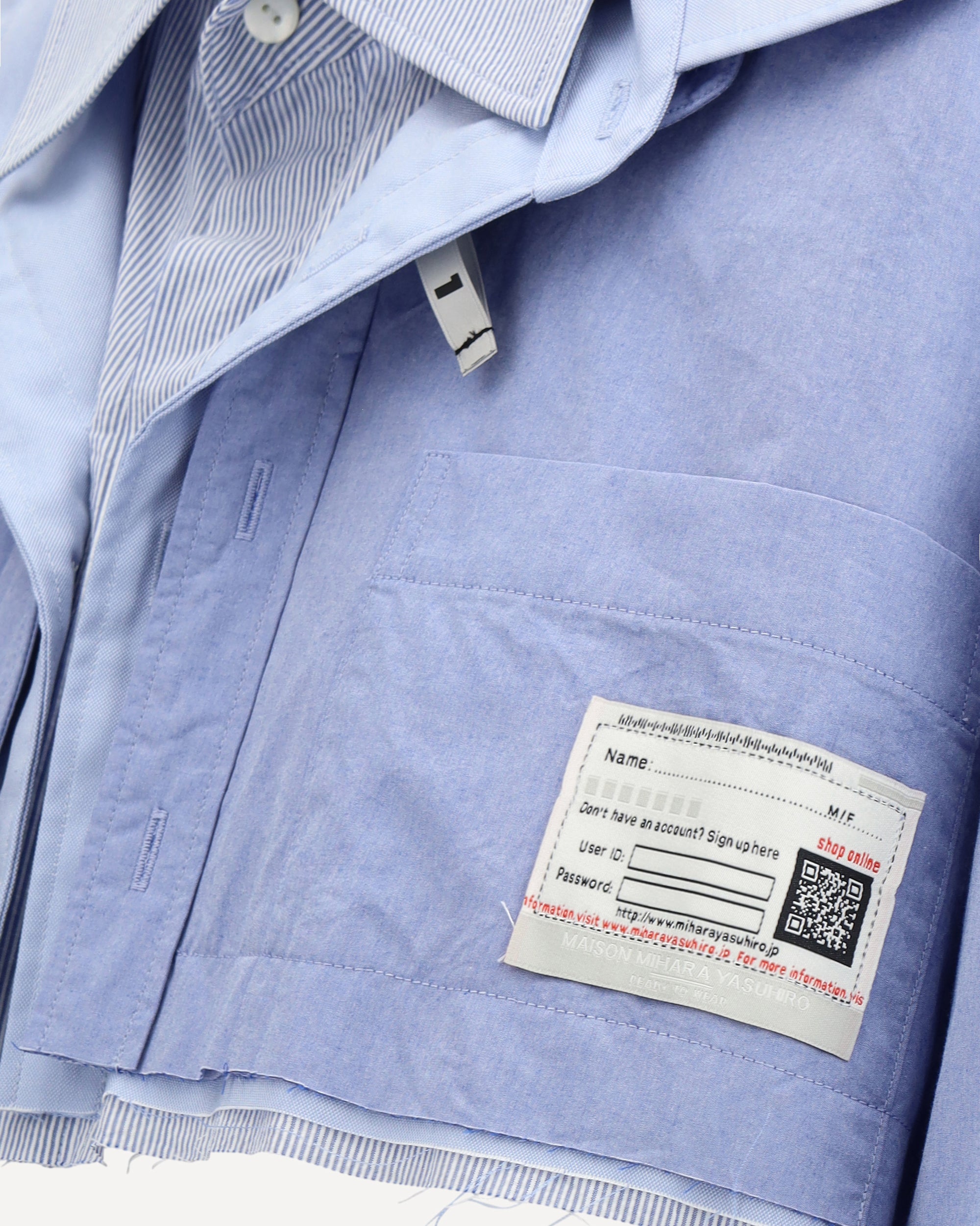 Maison Mihara's Shirt is a garment with an experimental and contemporary character. The cropped model with a layered design is combined with a classic collar and a front button closure. The asymmetrical, raw-cut hem adds a gritty touch, while the patch pocket on the front is embellished with a logo patch that signs the brand's unmistakable style.