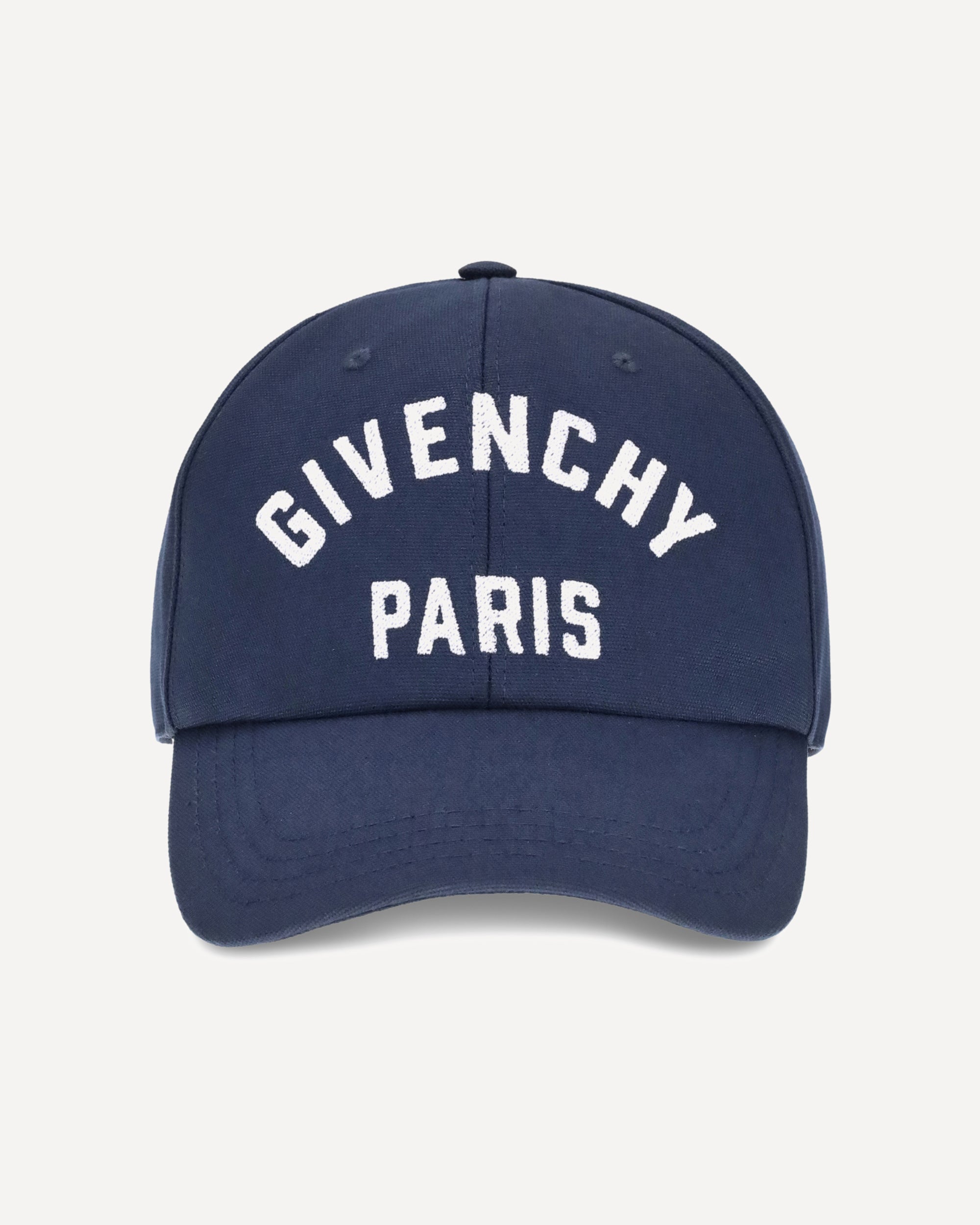 Givenchy's Logo Baseball Hat is a casual accessory with a strong character. Featuring a curved visor, it is embellished with the GIVENCHY Paris signature embroidered on the front. At the back, an adjustable tab with an engraved metal buckle adds a refined and functional touch.