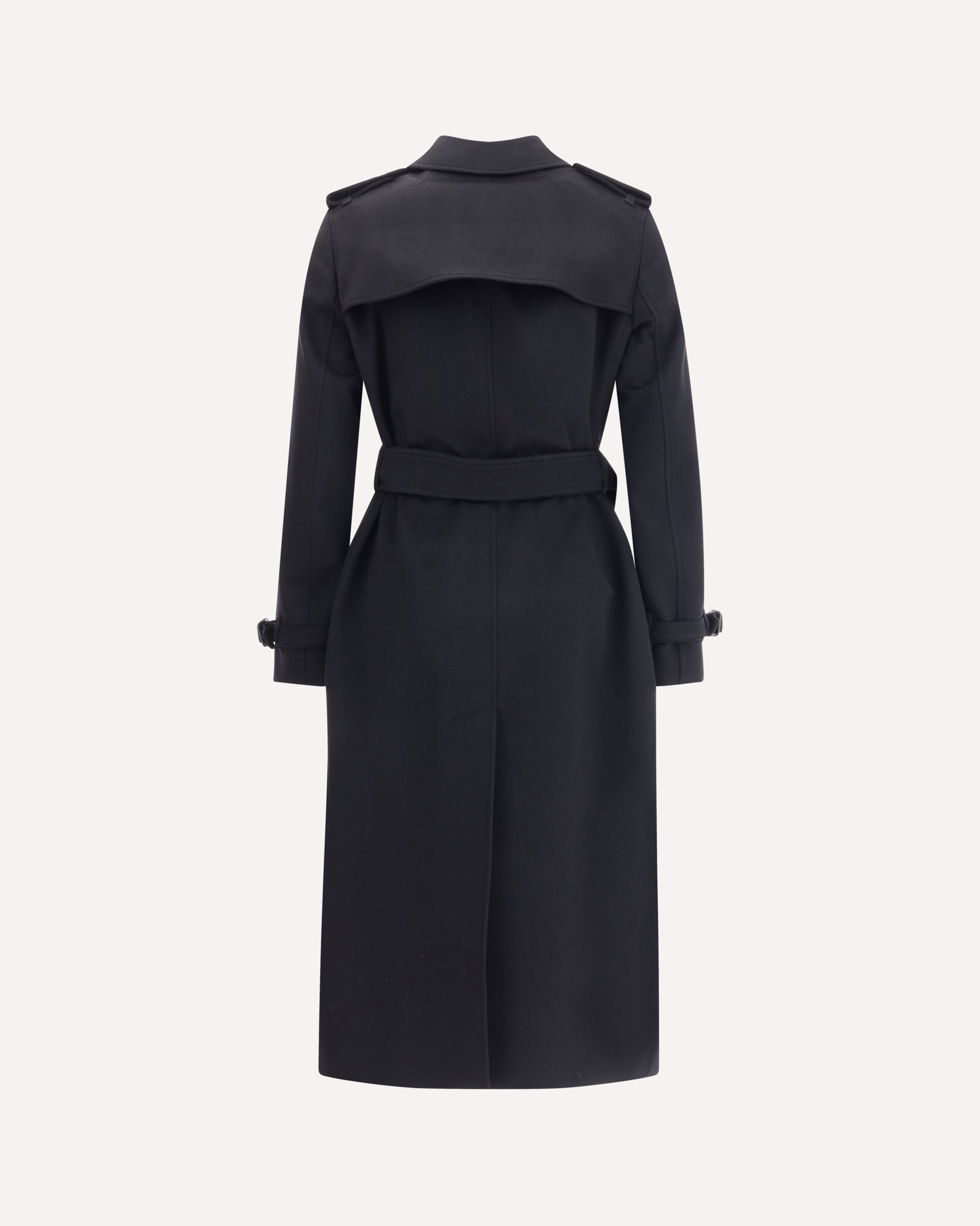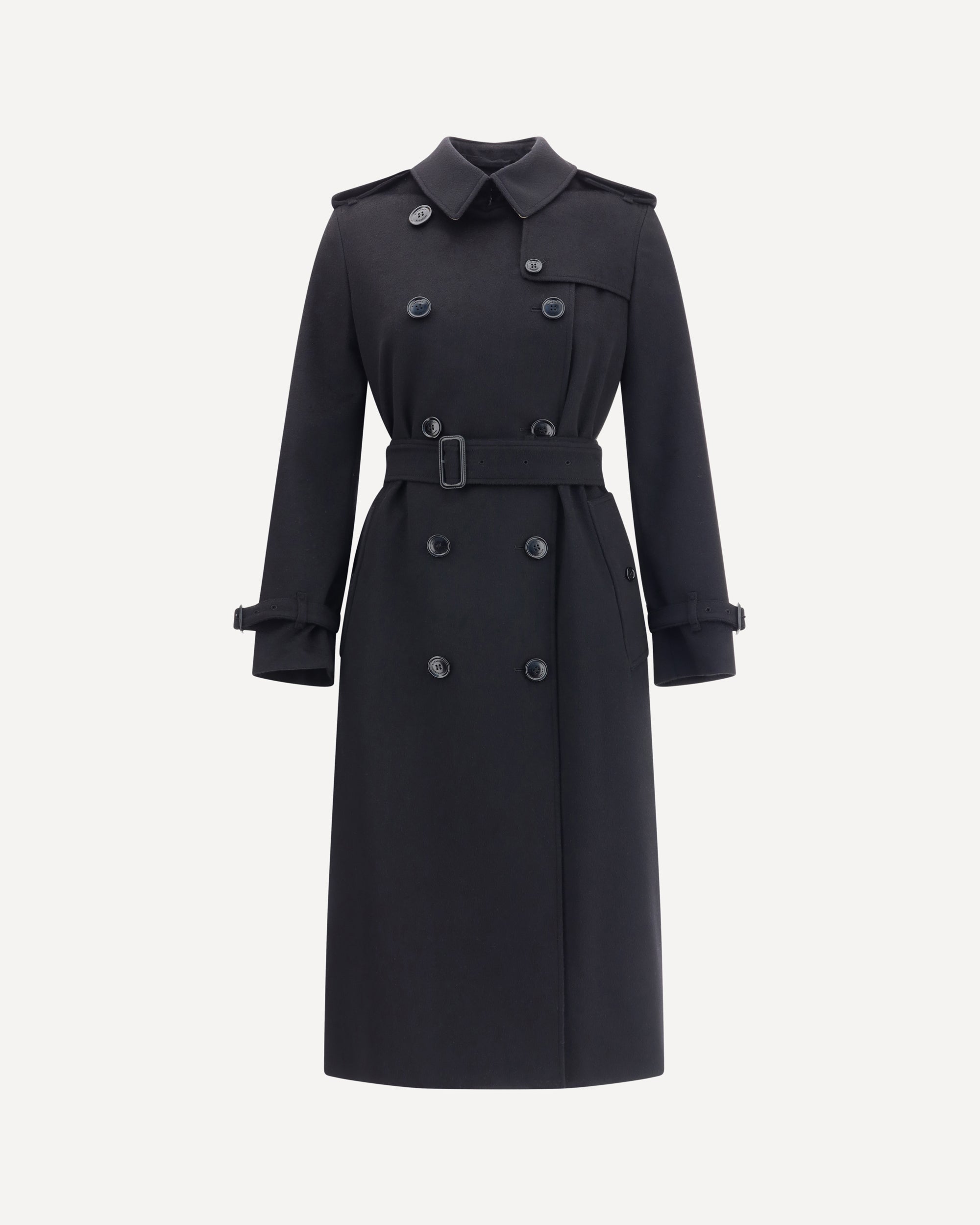 Kensington Coat by Burberry is a timeless classic with impeccable style. It features a double-breasted button closure, hook-and-eye collar, epaulettes and waist belt. Buttoned welt pockets, strappy cuffs and a buttoned back vent complete the structured design. The Burberry Check undercollar adds an iconic and recognizable touch.