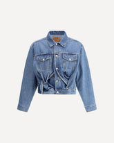 Magliano's Denim Level Jacket is a bold and sophisticated garment that combines the classic with unique details. The classic collar and front button closure offer a traditional design, while the two front patch pockets with flaps and buttons add functionality and style. Cut-out details and knots on the front lend an original and modern touch, making this jacket a distinctive and trendy piece.