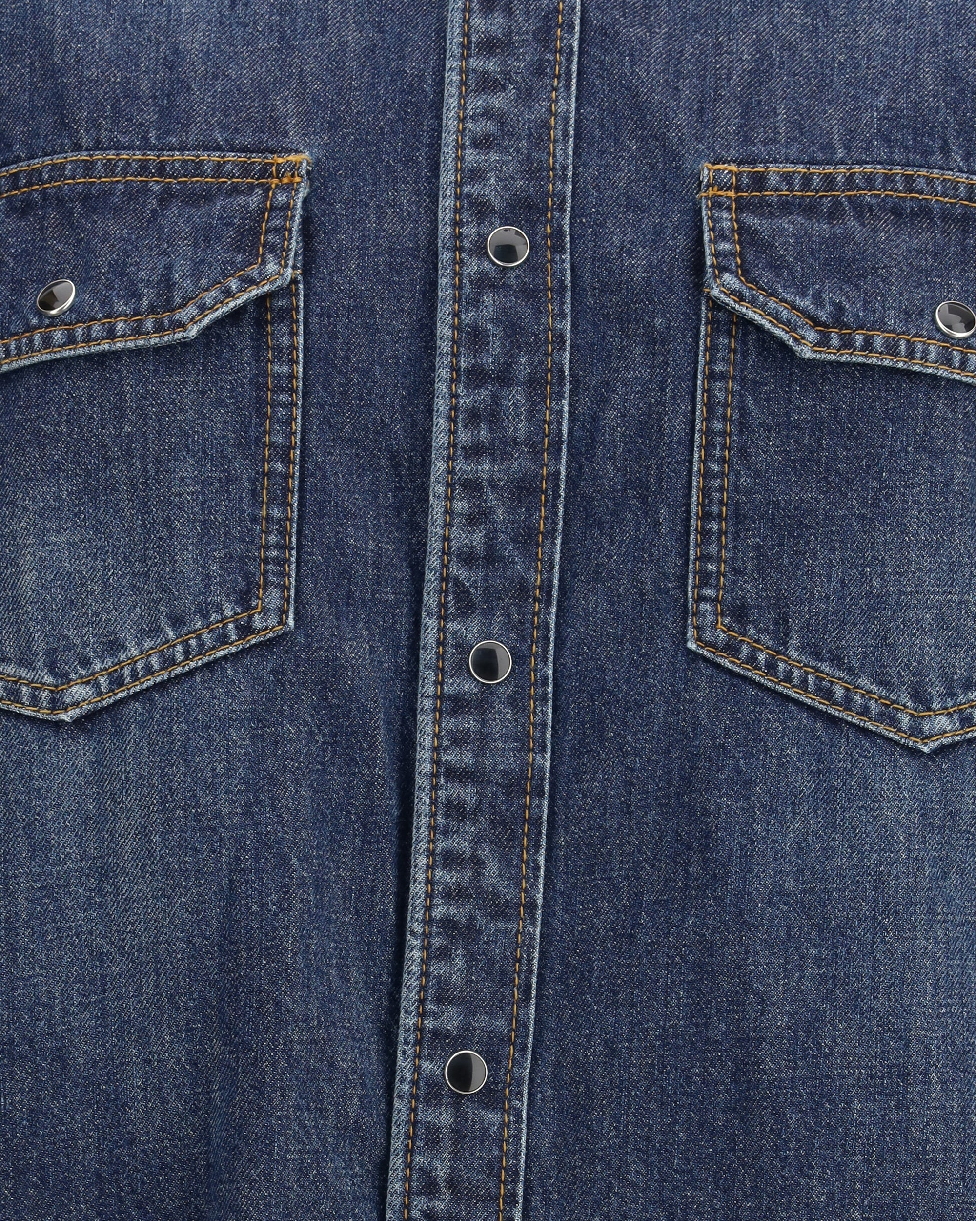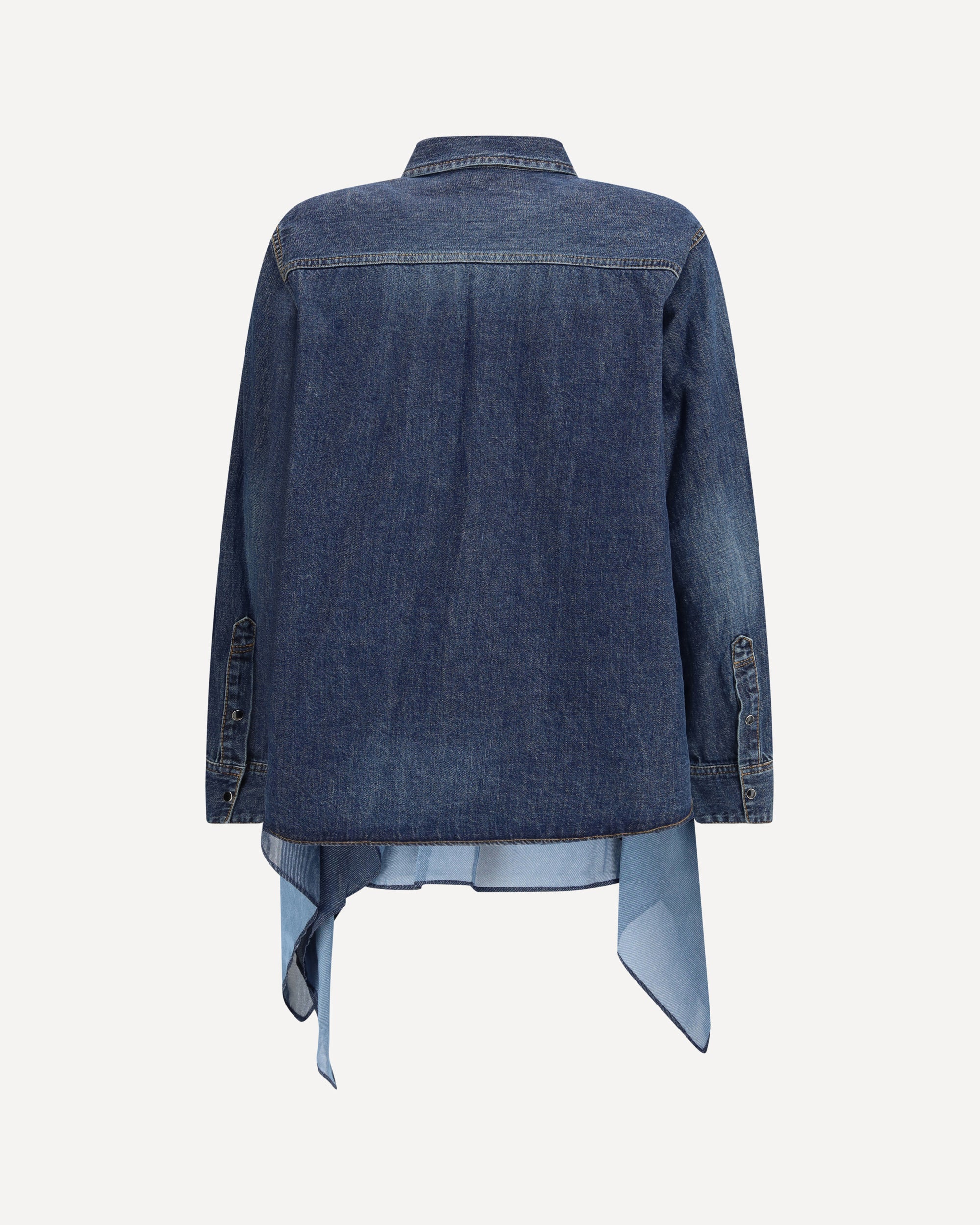 The denim and satin Shirt by Sacai reimagines a classic staple through the brand’s signature hybrid approach. Dark-wash denim is layered over smooth satin, creating a refined play of textures. A polo collar, angled chest pockets, and snap-button fastening complete the design, balancing functionality with contemporary elegance.