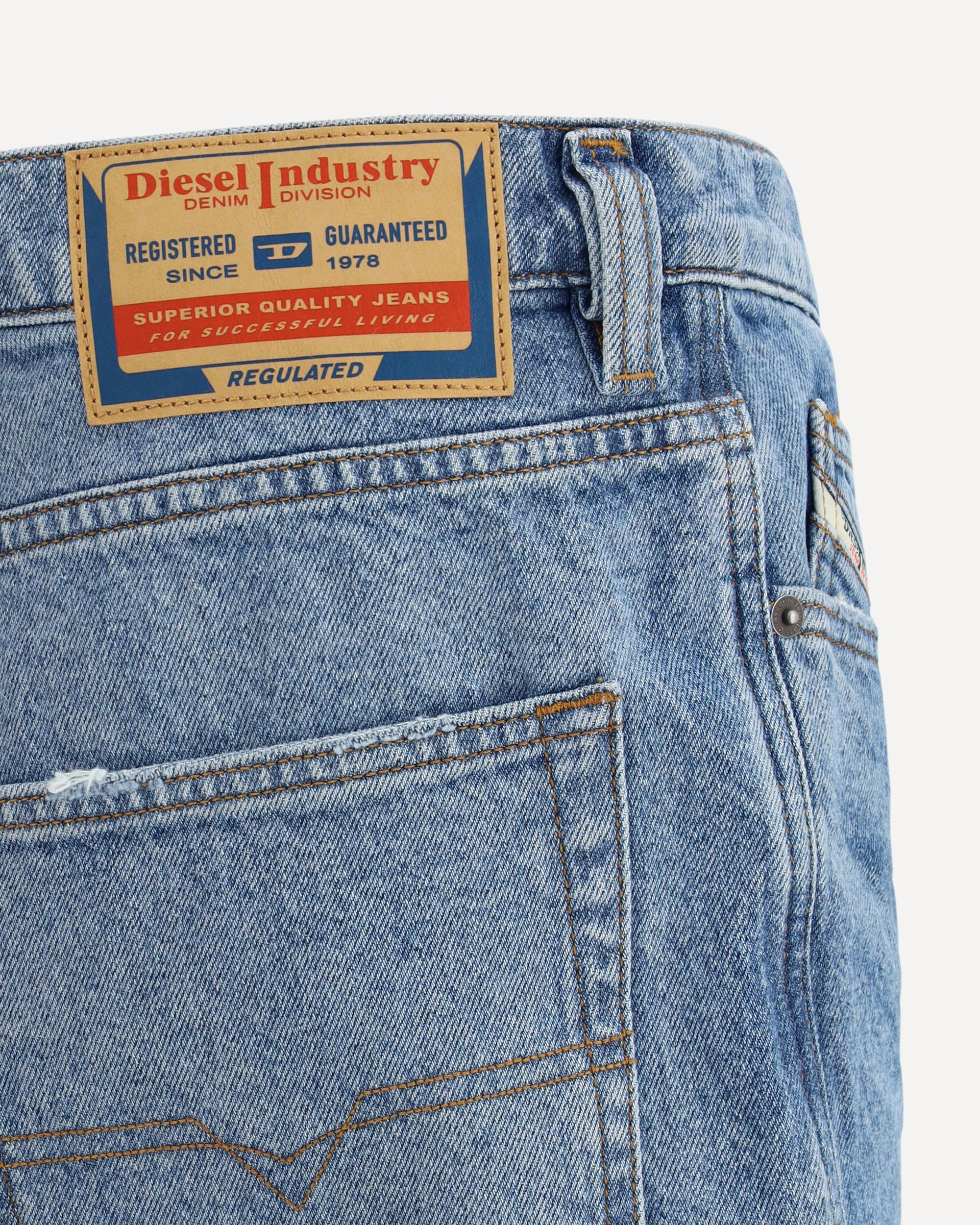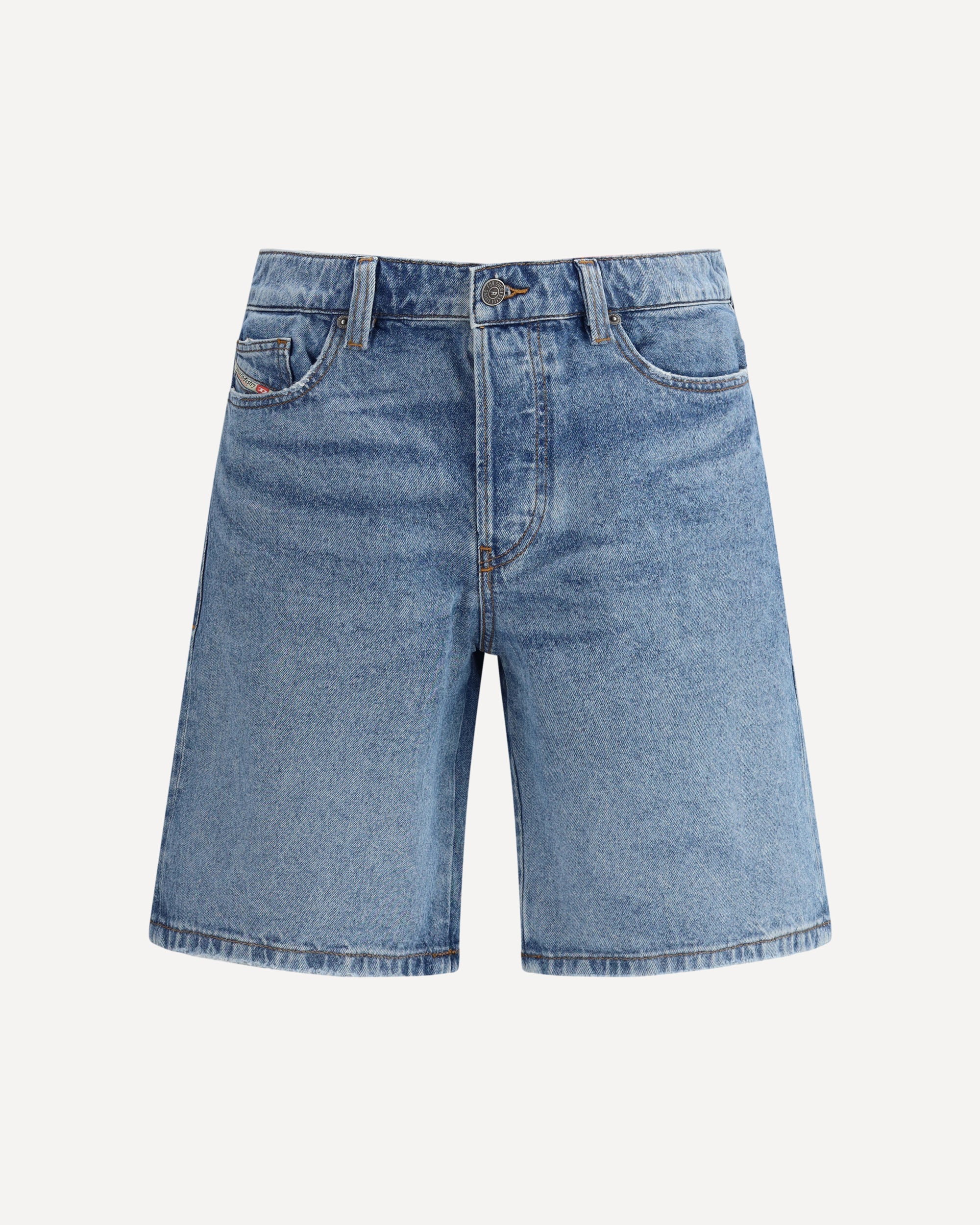 Diesel's cotton Shorts feature a classic denim design with a punchy character. The straight five-pocket style offers practicality and style, with a front button closure and belt loops on the waistband. On the back stands out the iconic leather patch with the brand's signature pressure print, adding a distinctive touch. Ideal for casual and urban looks.