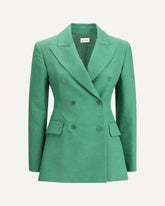 The P.A.R.O.S.H. Double-Breasted Blazer features an elegant peak lapel and a double-breasted front button closure, which enhance its classic and sophisticated style. The two welt pockets on the front, with flap, add a touch of practicality and refinement. The vent on the back ensures greater freedom of movement, keeping the blazer impeccable in terms of both shape and comfort. This garment represents a perfect fusion between tradition and modernity, ideal for a professional and chic look.