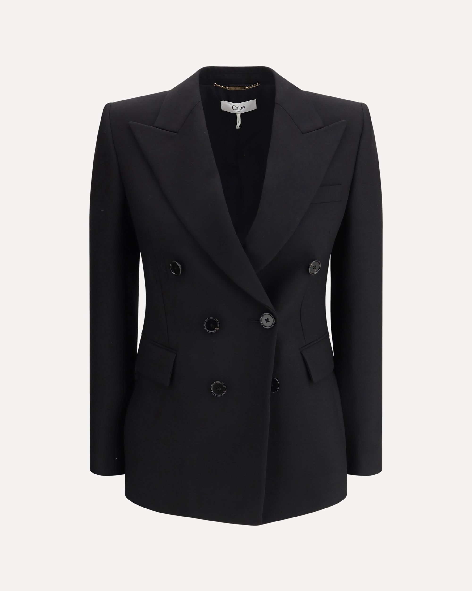 Chloé's wool double-breasted Blazer is an iconic and sophisticated piece, perfect for a timelessly elegant look. Featuring a peaked lapel, the blazer adds a touch of sophistication and structure to the design. The double-breasted button closure gives the garment a defined silhouette and an effortlessly classy feel. The two welt side flap pockets offer a practical and stylish touch while keeping the look clean and uncluttered.Padded epaulets complete this garment.