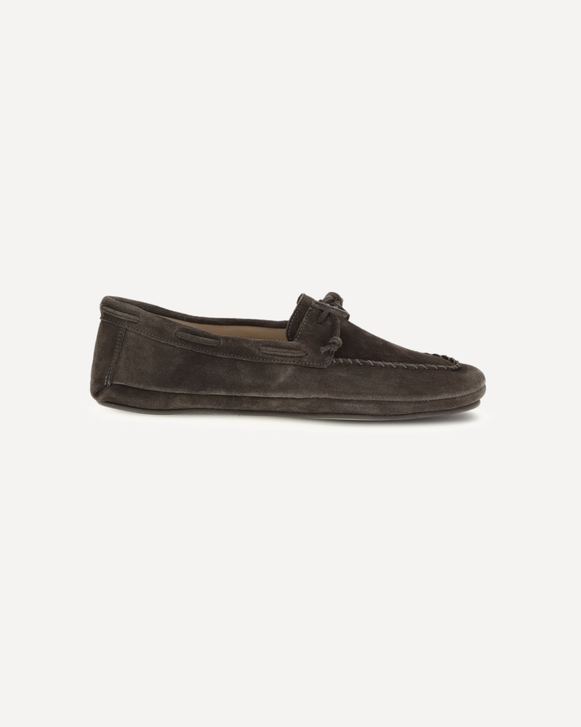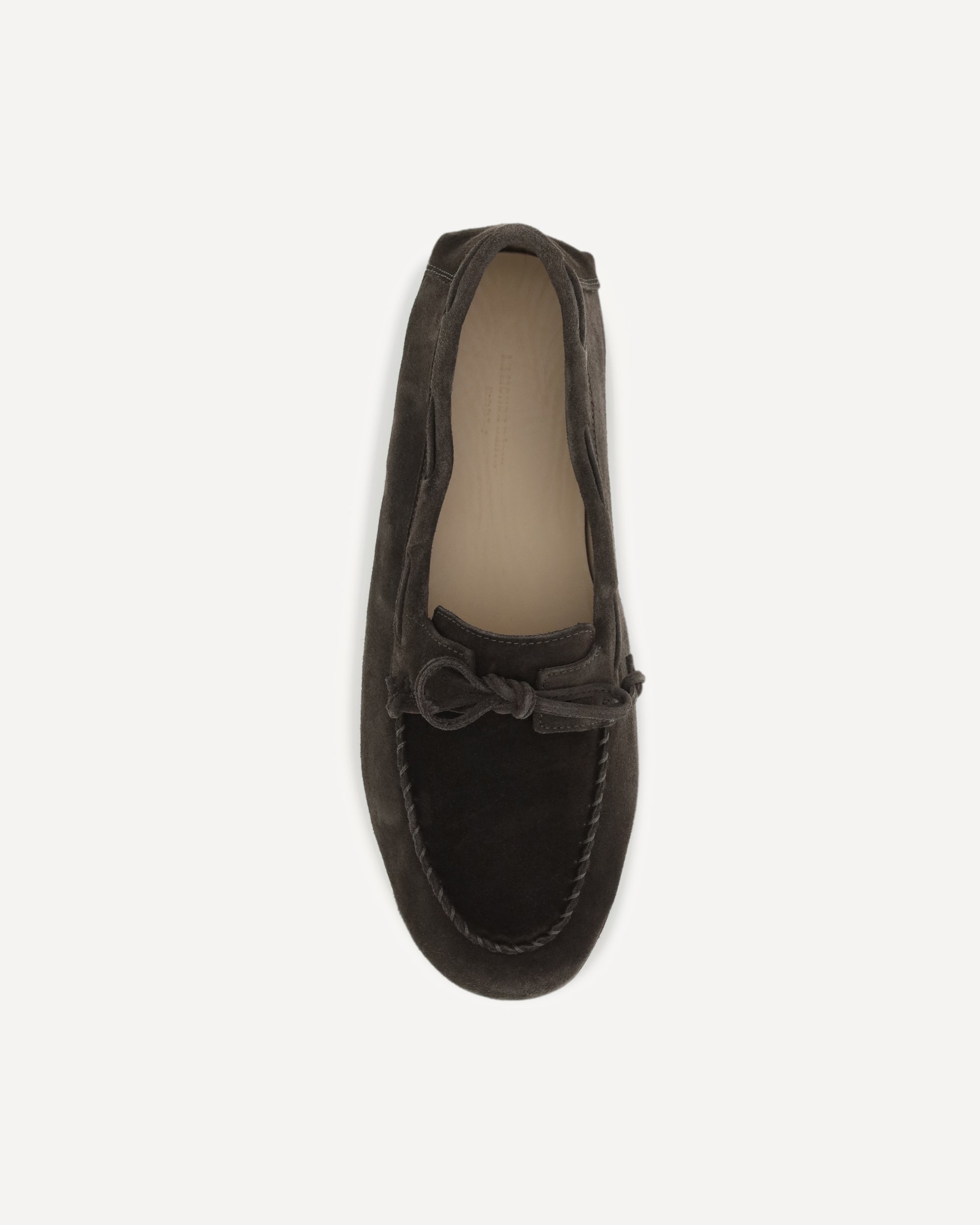 The Driver loafers by Le Mond Beryl are handcrafted from dove gray suede leather, which is water-resistant to ensure durability and practicality. The woven details add a touch of sophistication, while the padded calfskin insole ensures all-day comfort. The rubber sole completes the design, offering stability and grip. An elegant and functional model, ideal for those seeking the perfect balance between style and comfort.