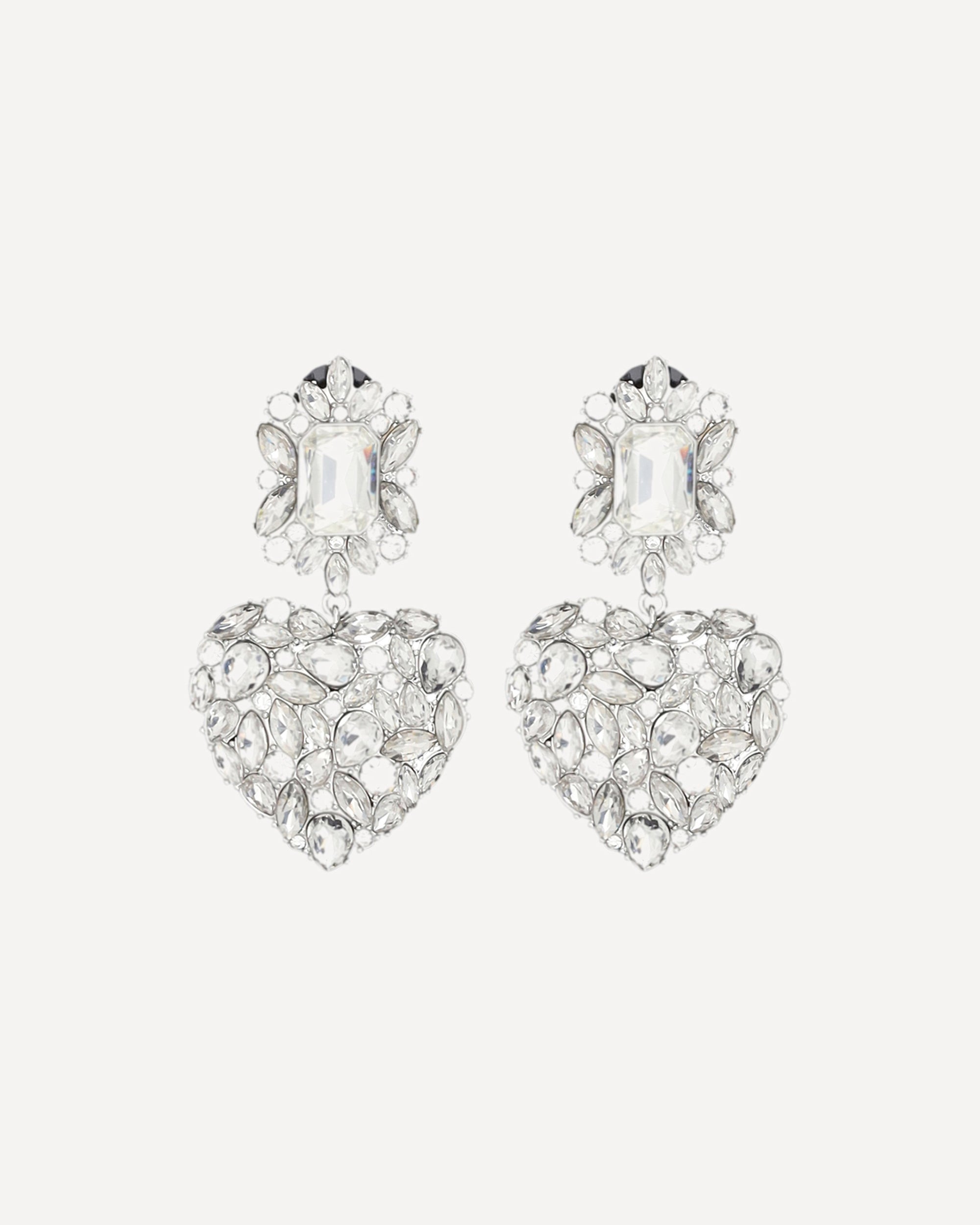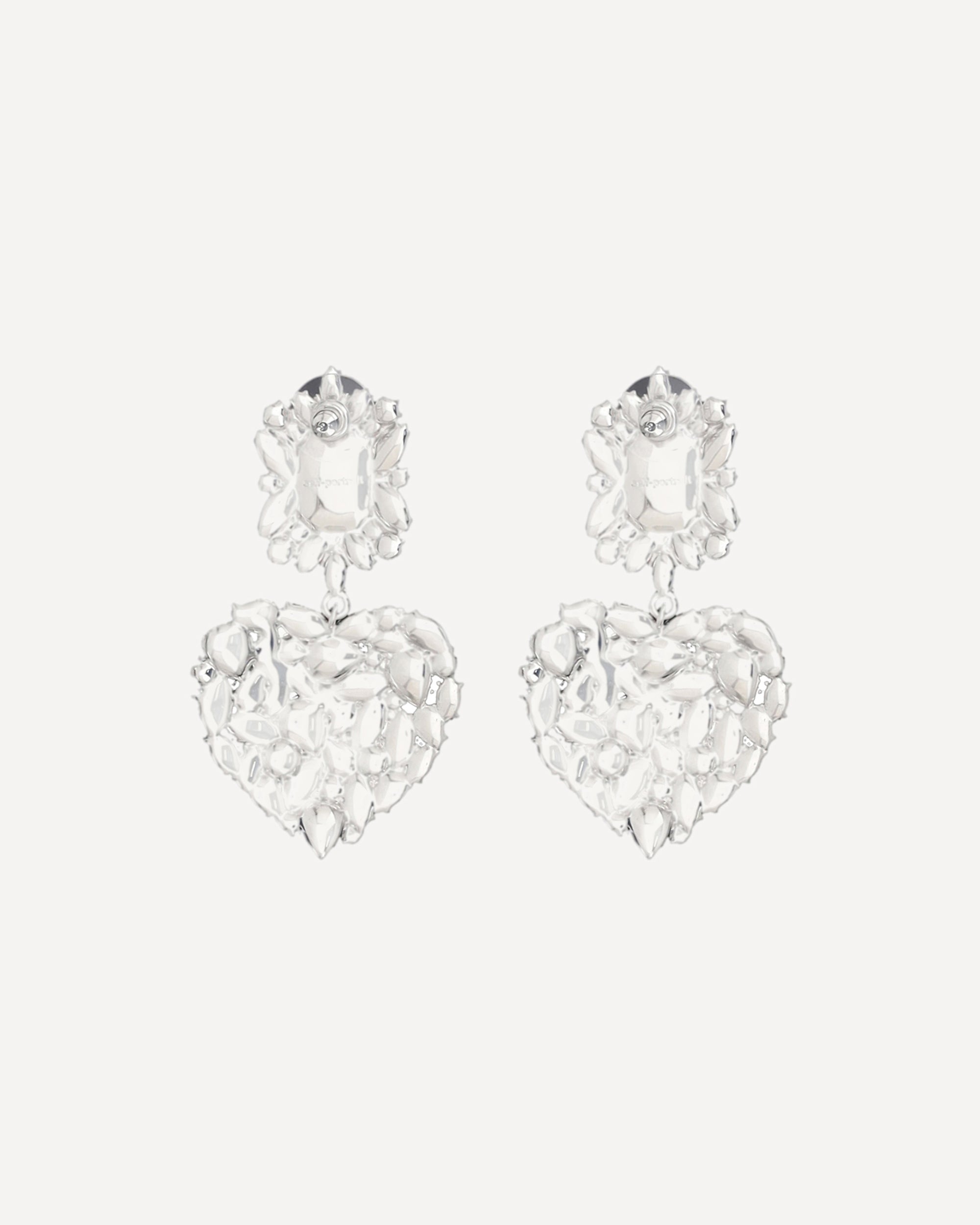 Self-Portrait's Heart Shaped Dangle Earrings are an elegant and romantic accessory, perfect for adding a touch of glamour to any look. The heart shape is embellished with shiny beads applied across the surface, creating a sparkling and sophisticated effect. The classic closure ensures a secure and comfortable fit.