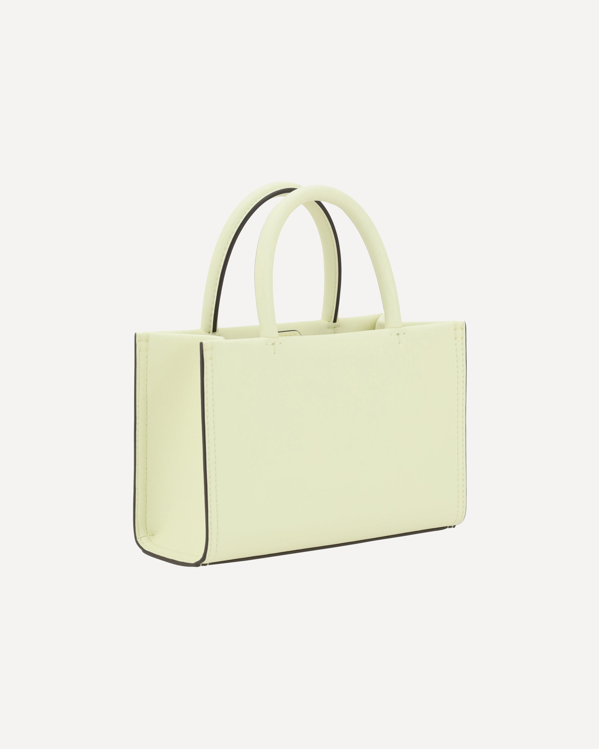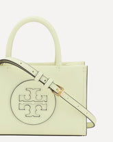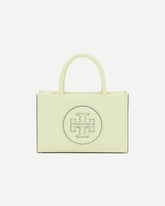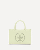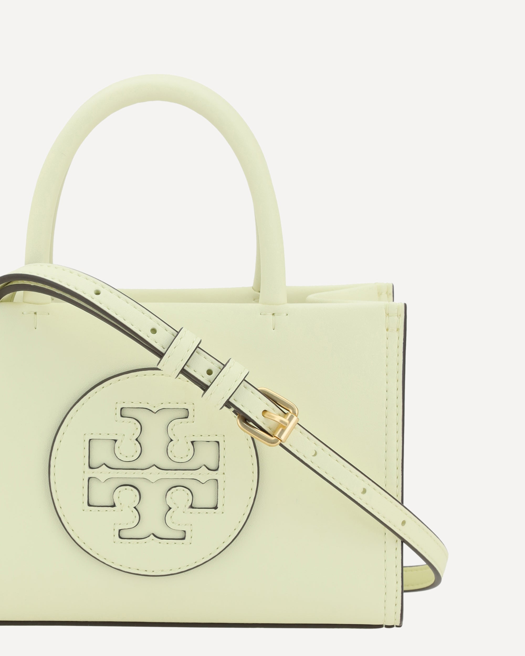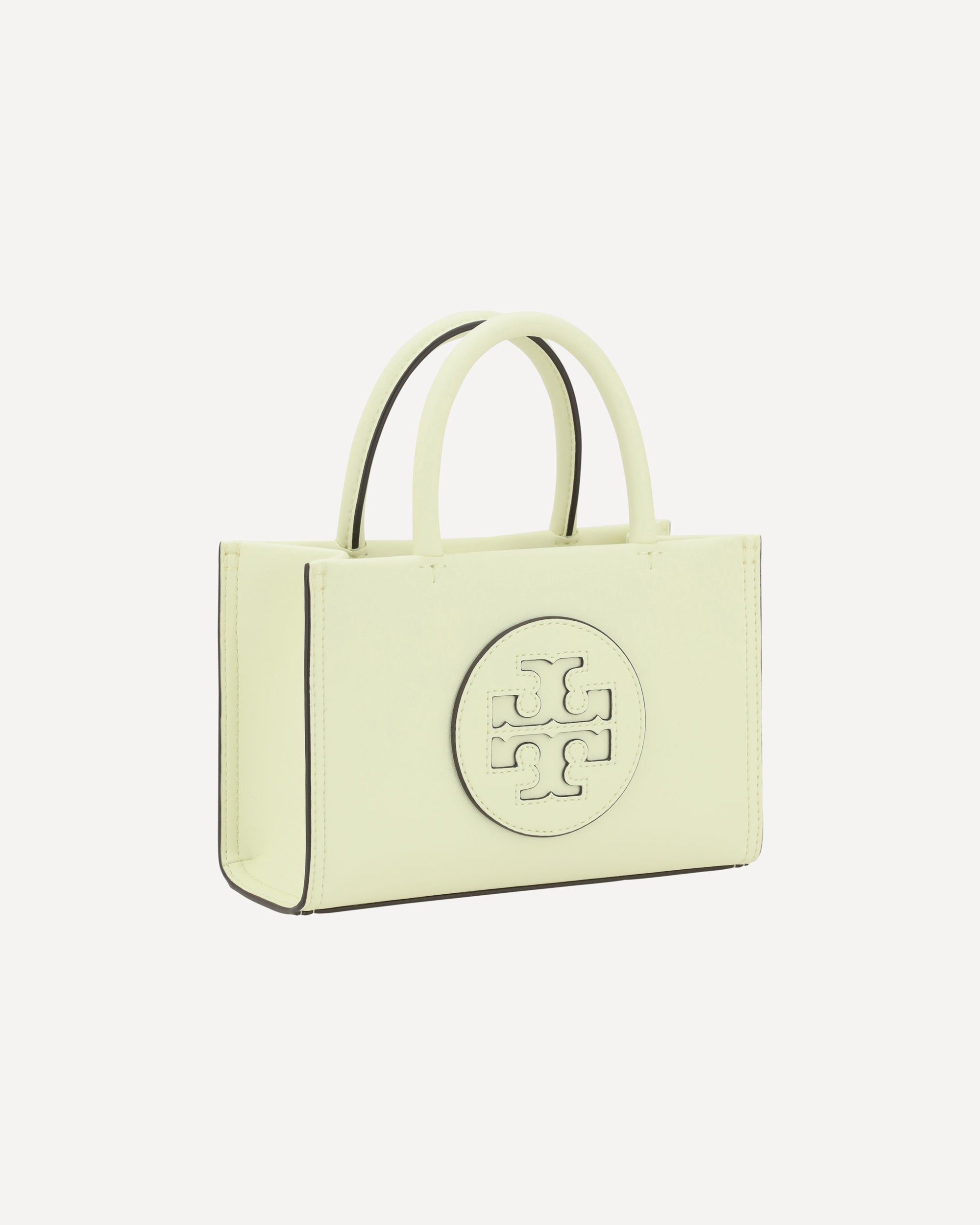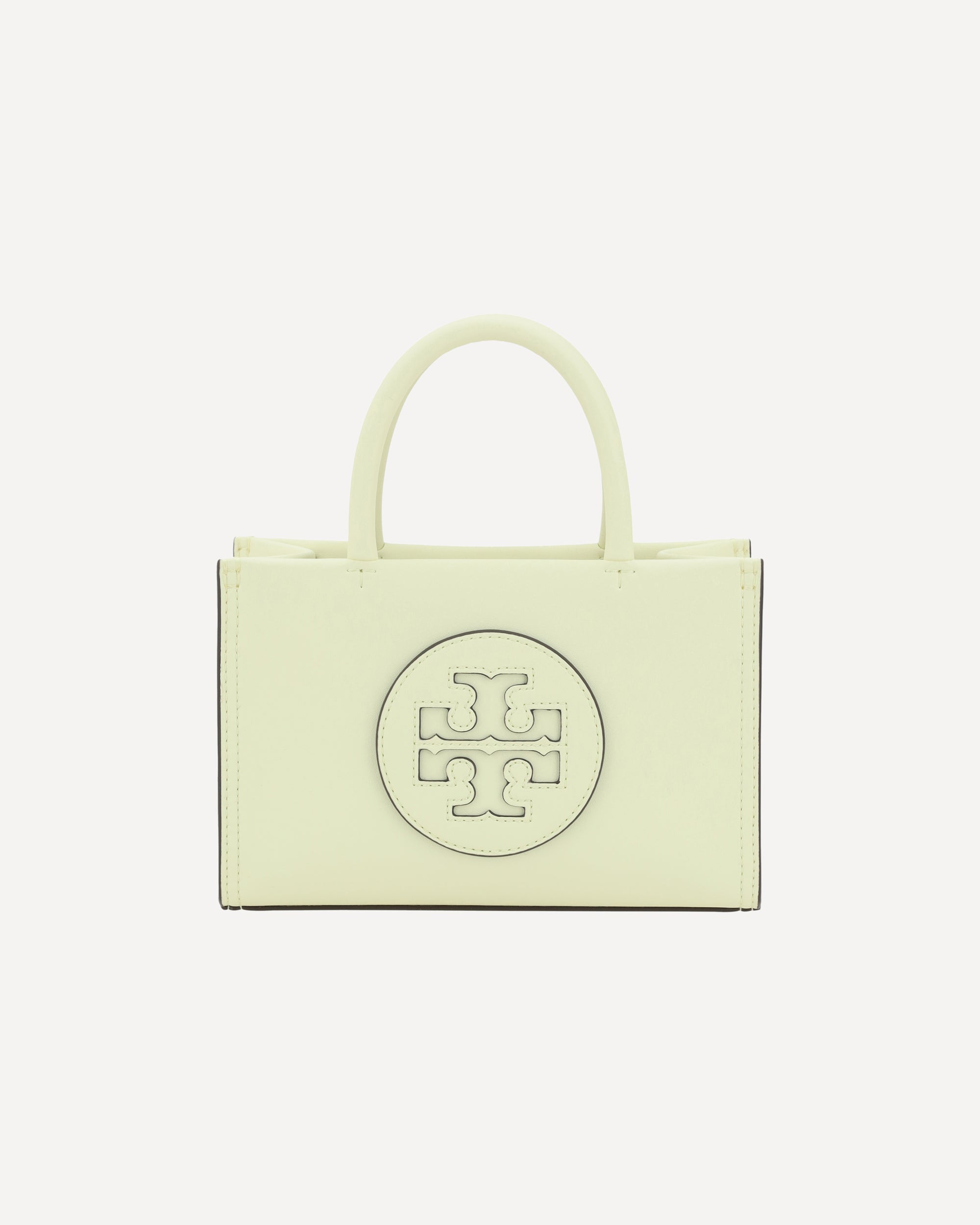 Ella Mini Handbag by Tory Burch features a top zipper closure for optimal security. The brand's iconic logo is engraved on the front, while tone-on-tone topstitching adds a touch of understated elegance. Matching double stiff handles at the top provide a comfortable grip, while the removable and adjustable flat shoulder strap offers the option of shoulder or hand carry. Inside, a flat pocket provides additional organization. The faux leather design lends a sophisticated and sustainable look, making this bag a versatile and chic accessory.