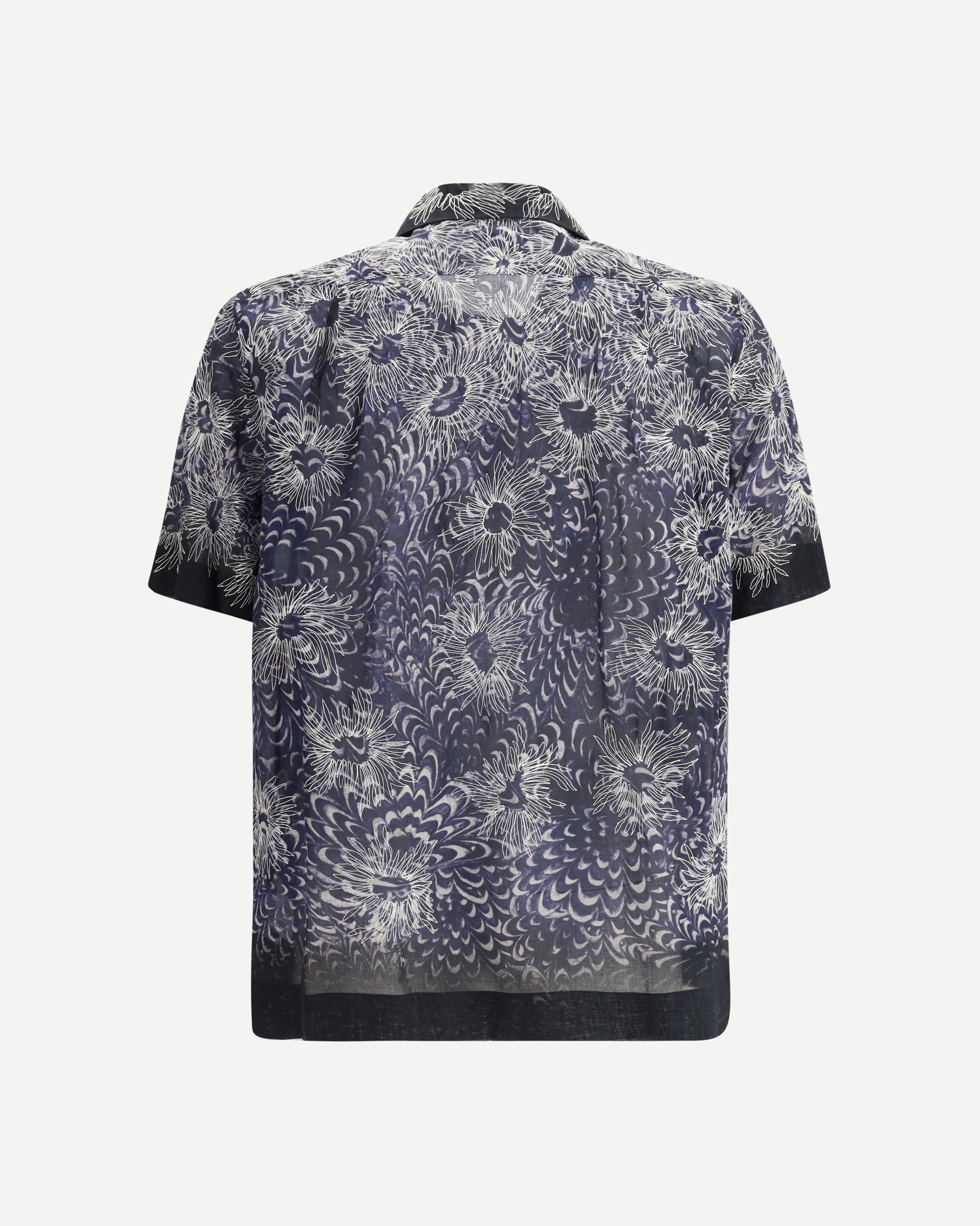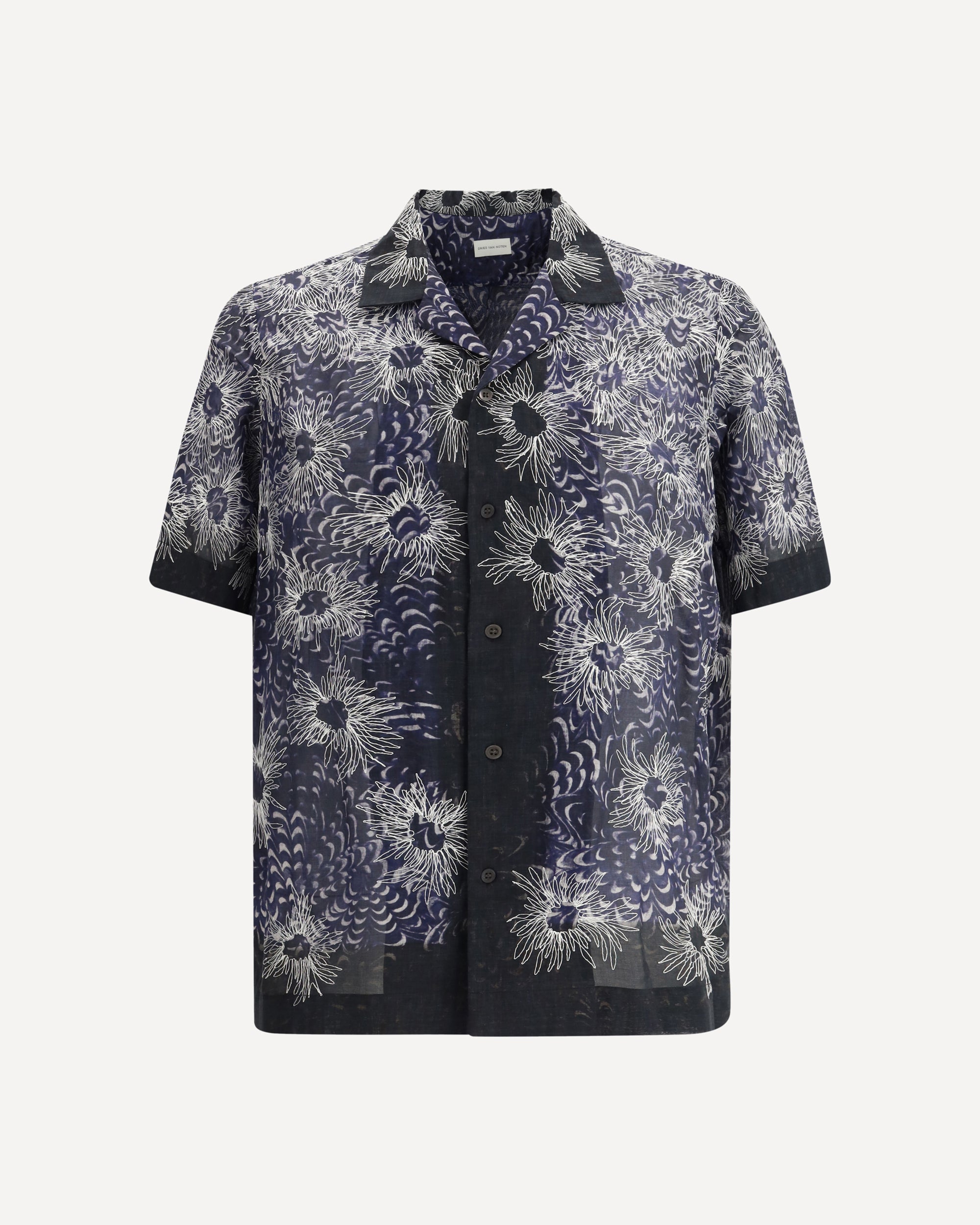 Dries Van Noten's Cotton Shirt is a short-sleeved design with a button-front closure. It features a bowling-style collar, which lends a casual and elegant touch to the garment. All-over embroidered silver embellishments enrich the design, adding a sophisticated and bright element to the shirt.